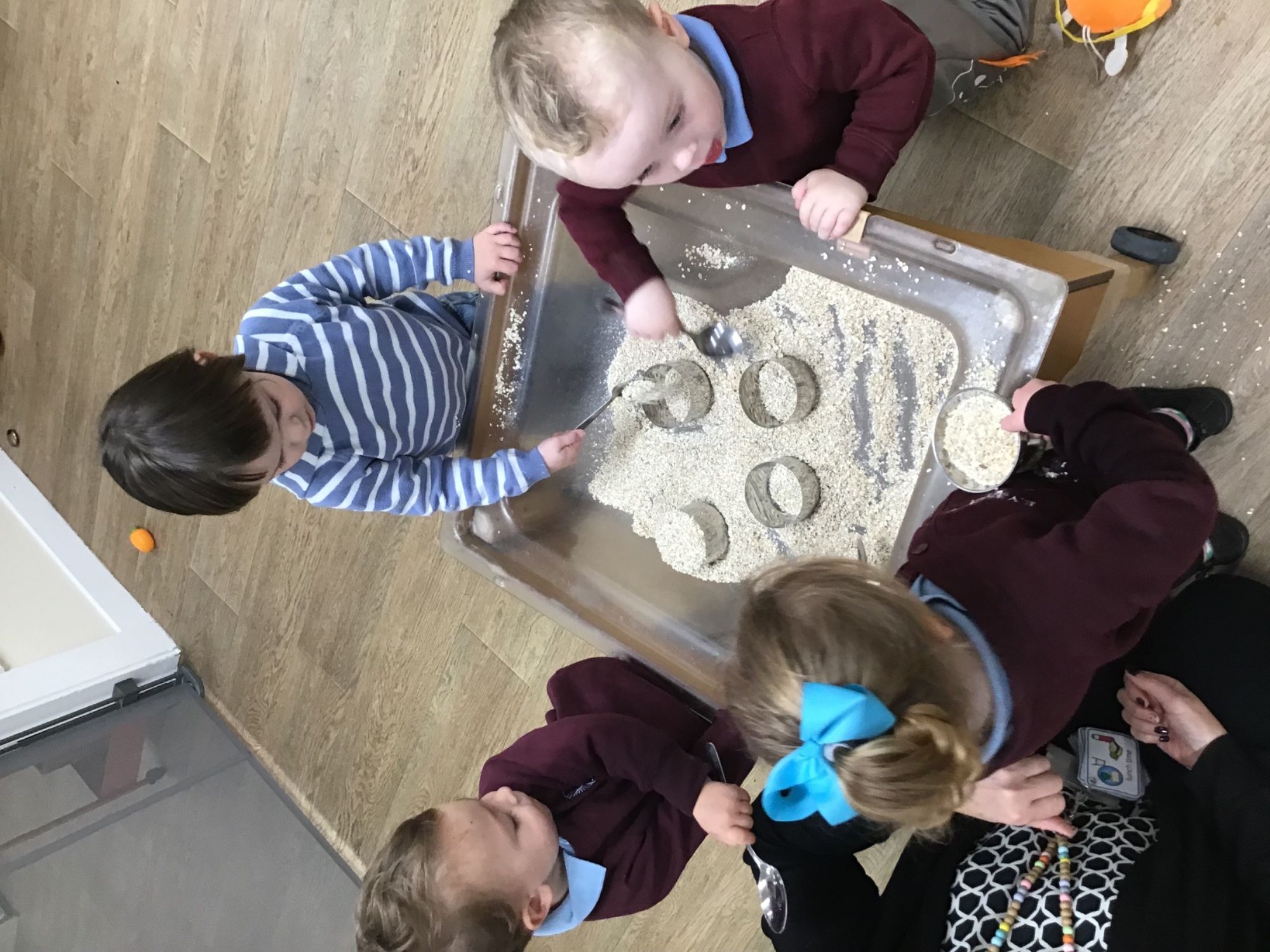 We have continued to think about 'Ourselves' and our senses this week. We have tasted and smelled the toast, used our eyes to find lots of things in our garden, touched rough tree bark, cold sand and soft flowers and listened to the aeroplanes and our friends chatting!. We learnt a song about our five senses called 'I use my eyes to see'. I wonder how many Butterflies can remember it and sing it for you?