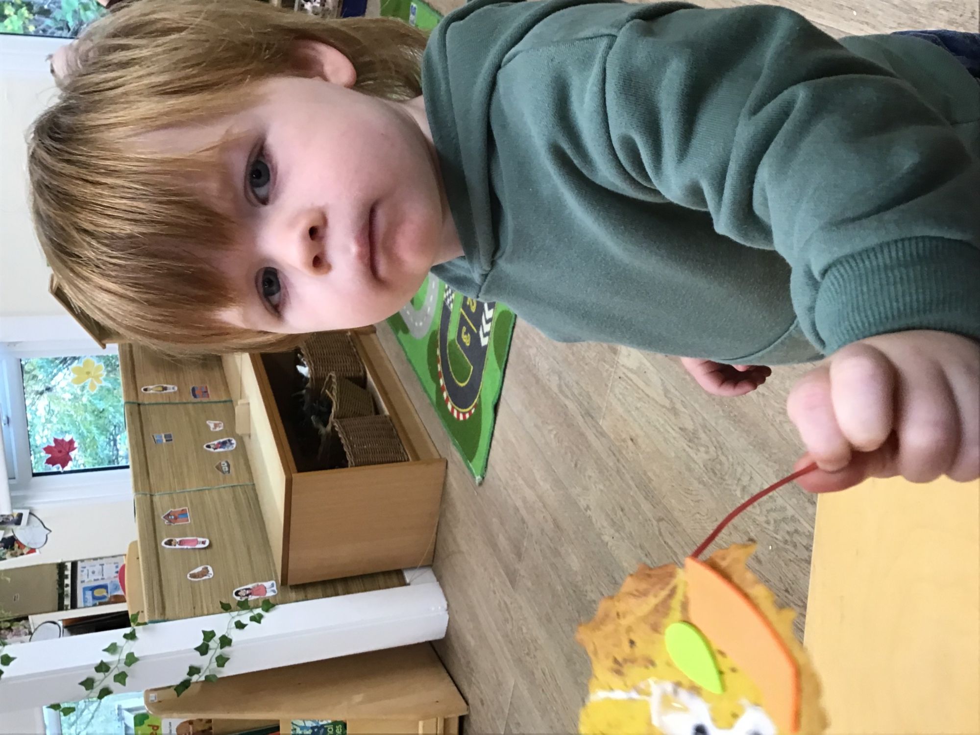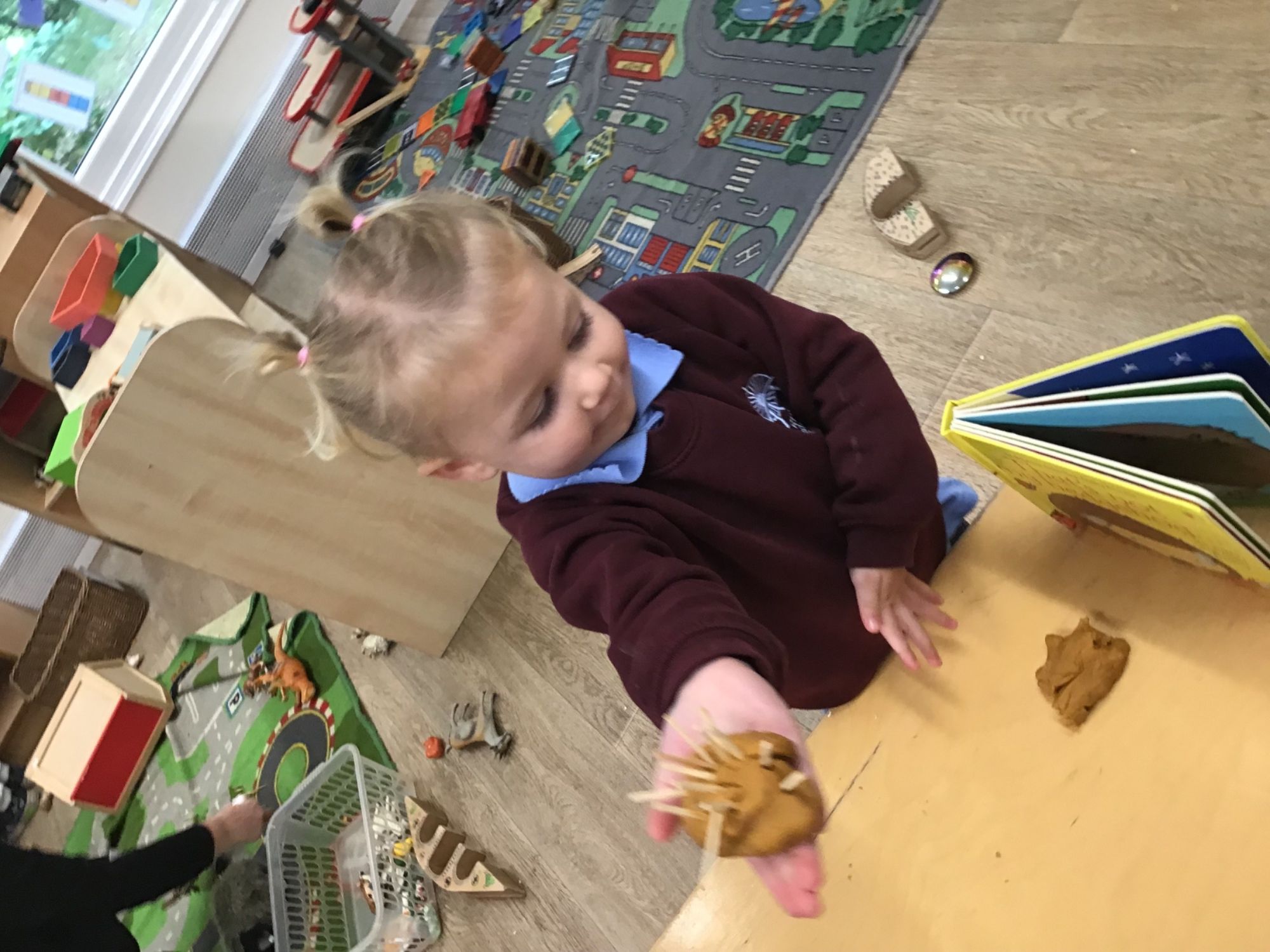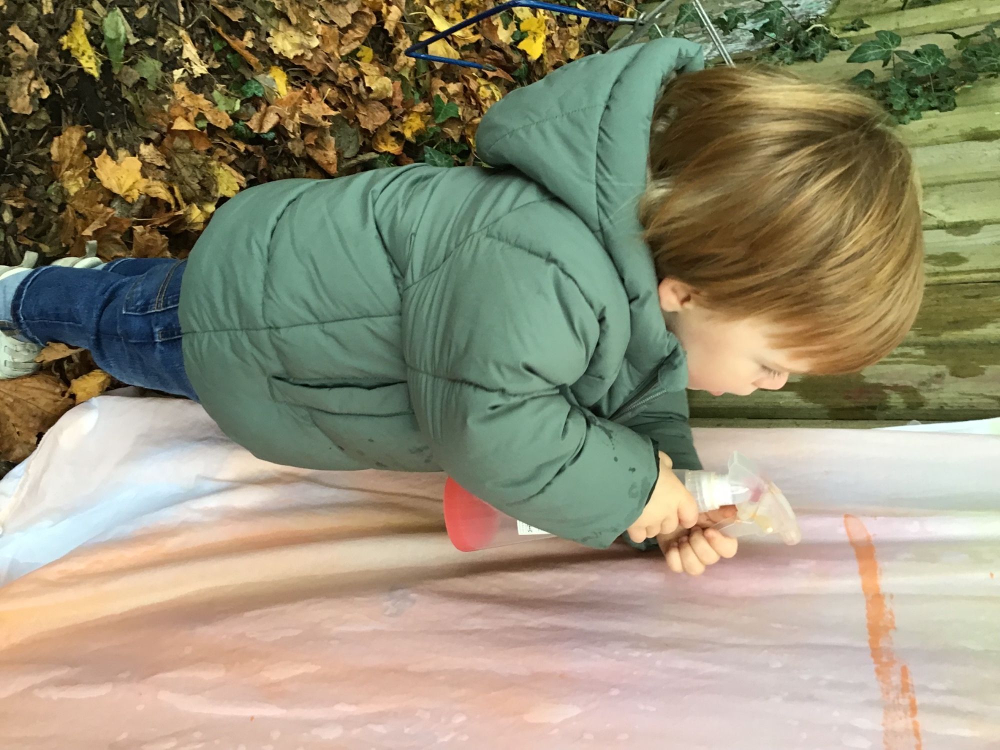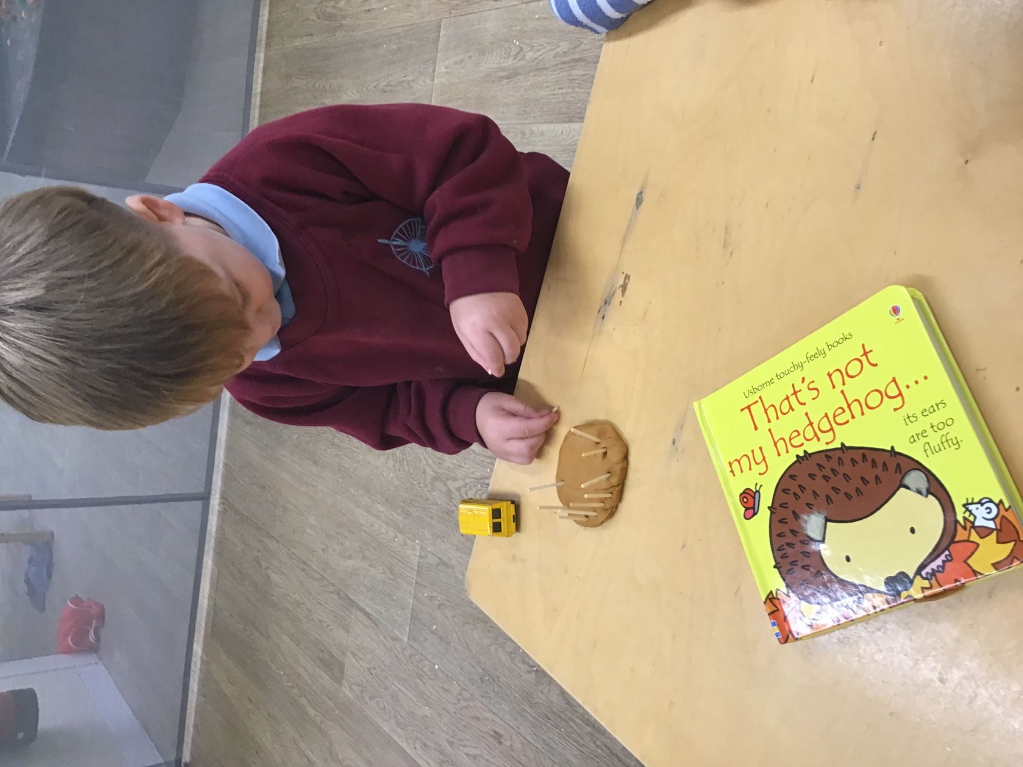 We enjoyed the story 'The dark,dark night' about Ned the Hedgehog looking for a home and he found a place to sleep in a big pile of leaves.We have painted, explored and used our imagination this week in Butterfly group.