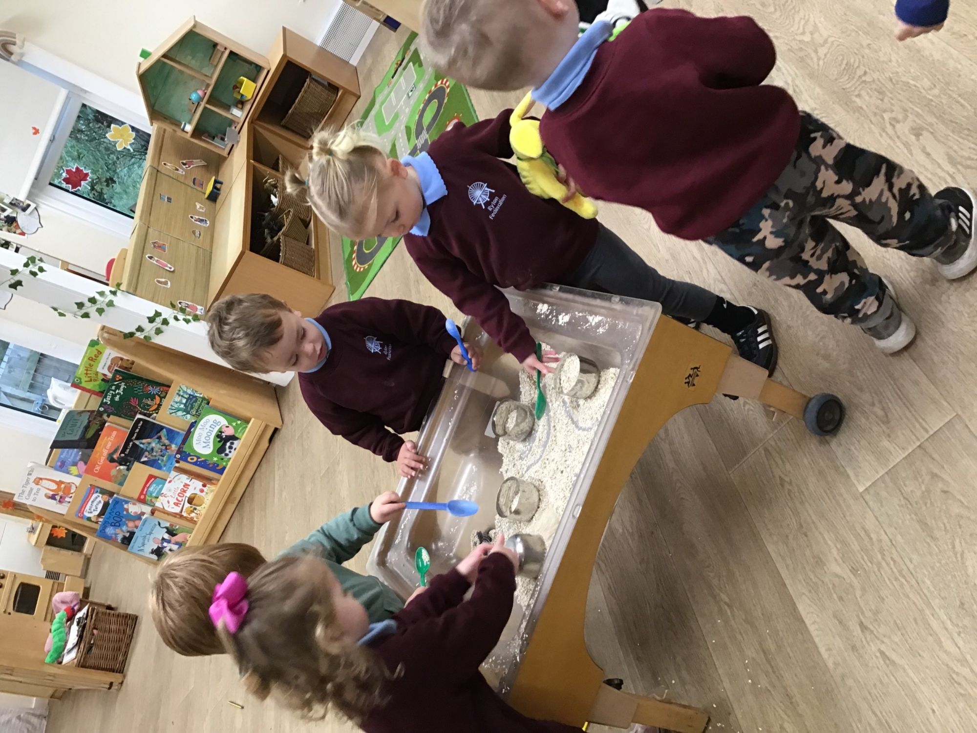 Our story this week was 'We're going on a pumpkin hunt'. We sat on Nursery hill to listen to the story then we went in search of pumpkins! We found 5! We counted them and then put them in order of size.