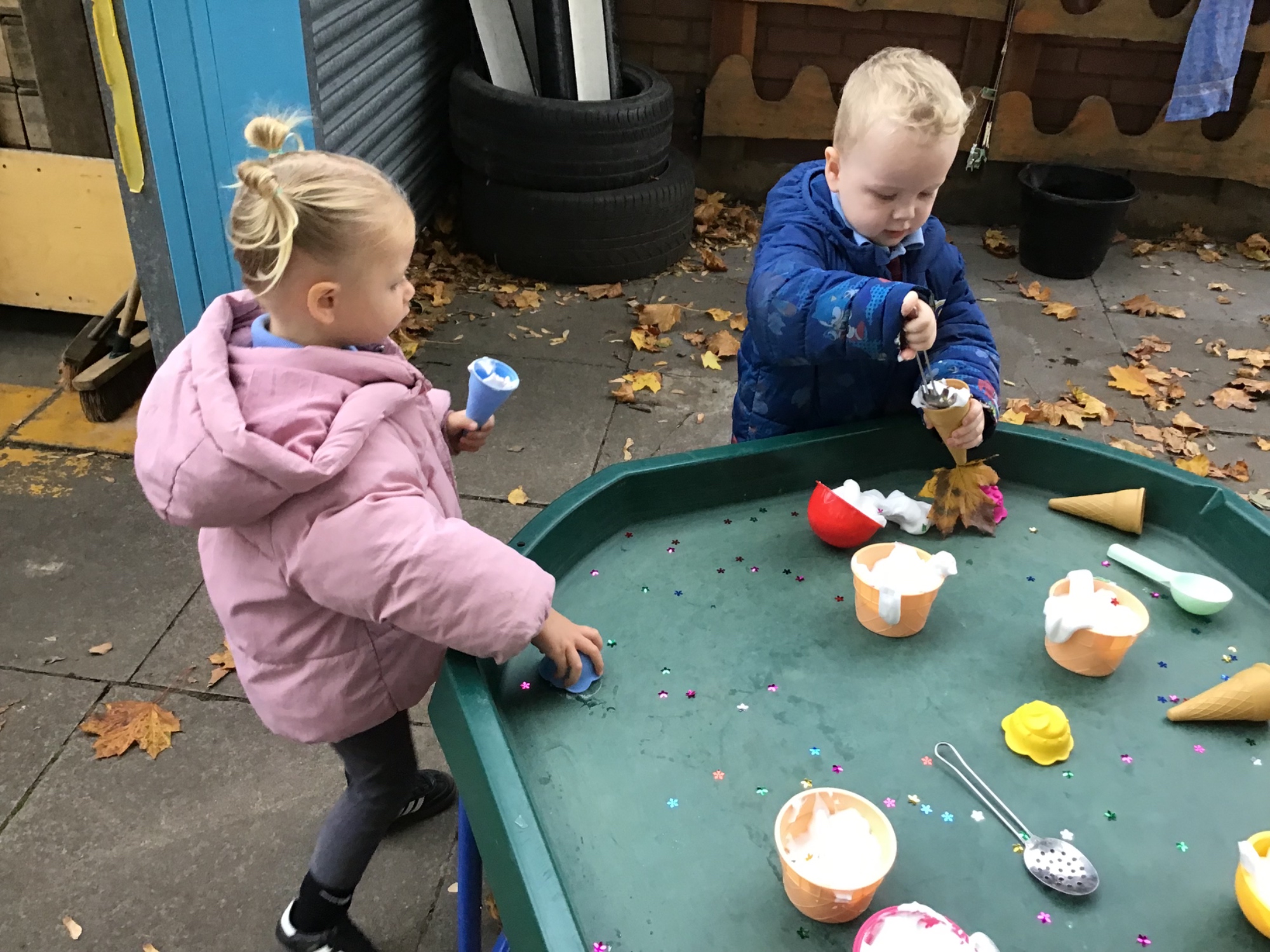 All things Autumn colours this week. We went on a leaf hunt and found lots of different coloured leaves, we listened to the story Leaf Man and then made our very own Leaf Man! We read the book 'That's not my Hedgehog ' and made spikey hedgehogs with play dough. We even made Leaf soup in the mud kitchen, as well as spray painted, climbed, sorted,filled containers and shared books this week in Butterfly Group.