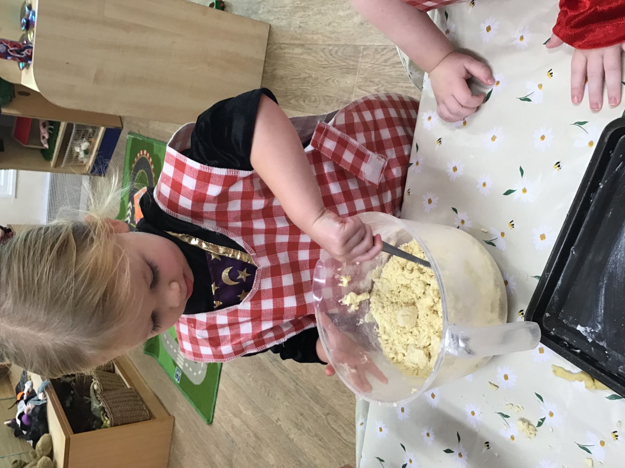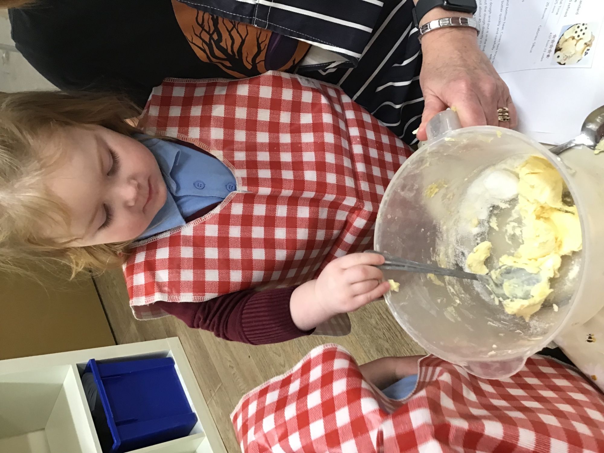 We weighed, mixed, poured,rolled, flatten and cut out the dough, then baked them in the oven. We are such good bakers!
