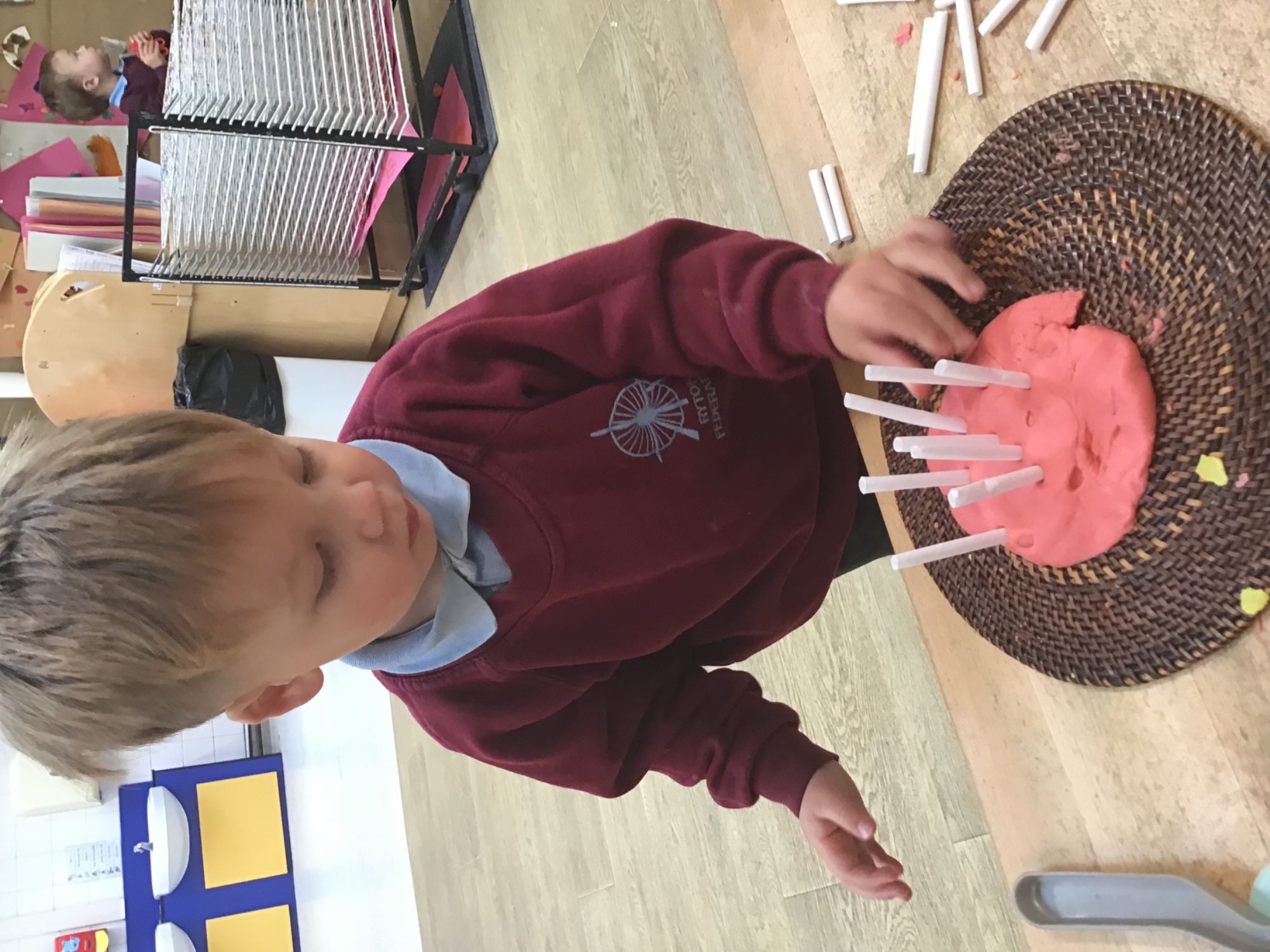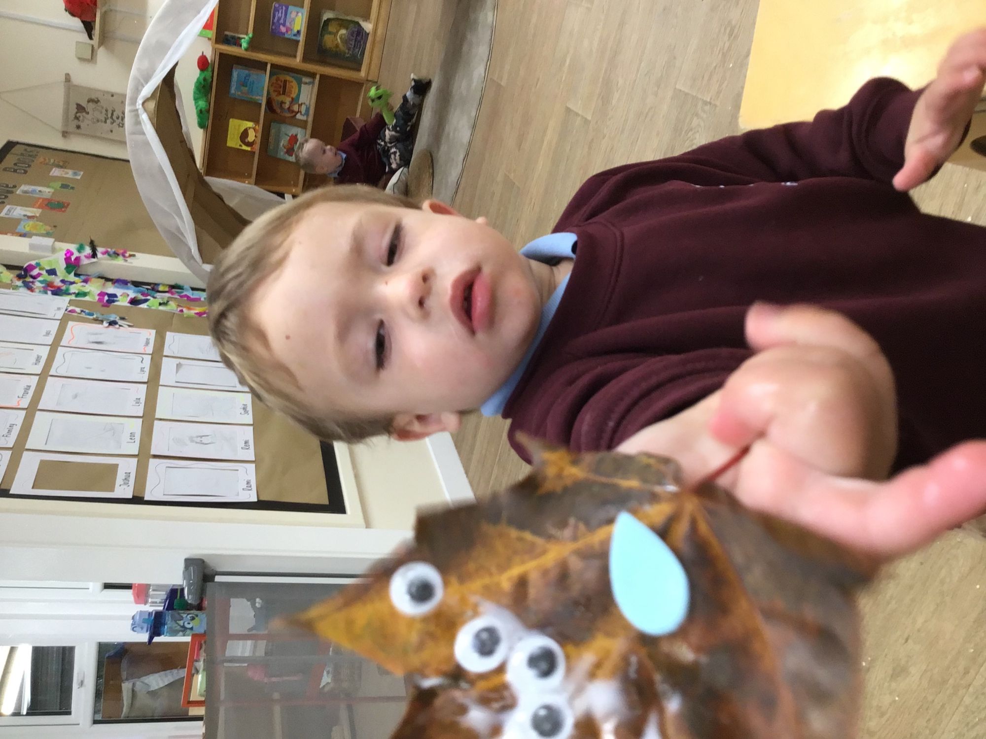 We enjoyed the story 'The dark,dark night' about Ned the Hedgehog looking for a home and he found a place to sleep in a big pile of leaves.We have painted, explored and used our imagination this week in Butterfly group.