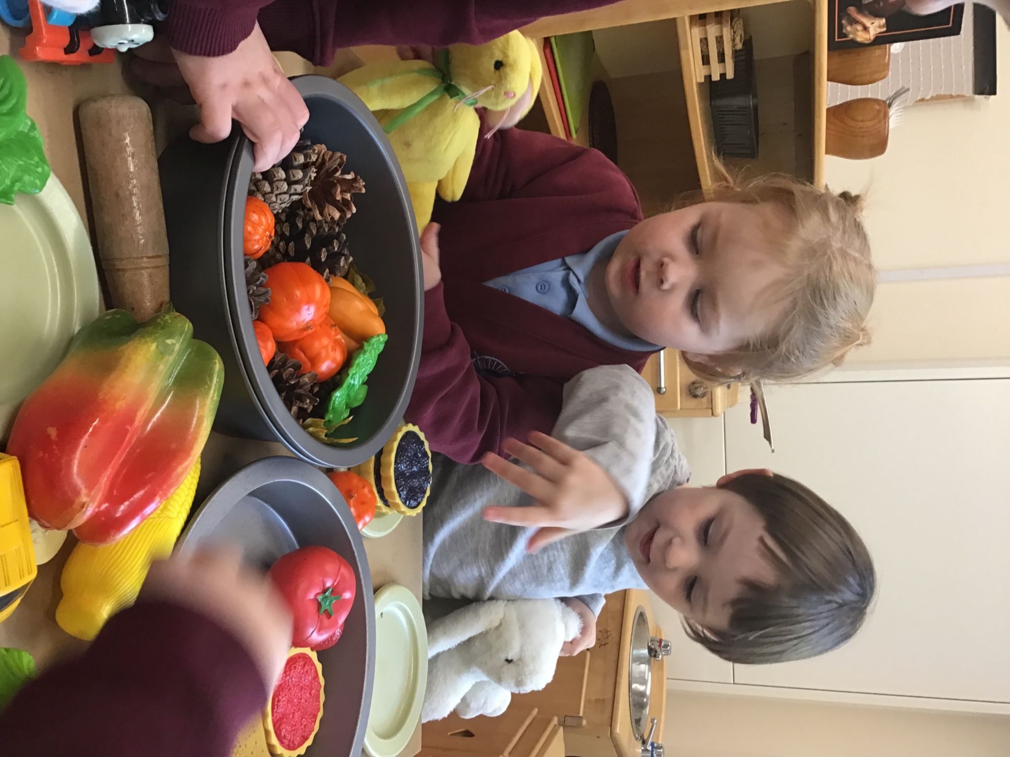 This week we have enjoyed playing in our Home Corner feeding the Teddies, making playdough faces and building with blocks and magnetic tiles. We have continues to name colours and talk about 'Ourselves', naming our facial features and singing 'Head ,Shoulders, Knees and toes' at snack time.