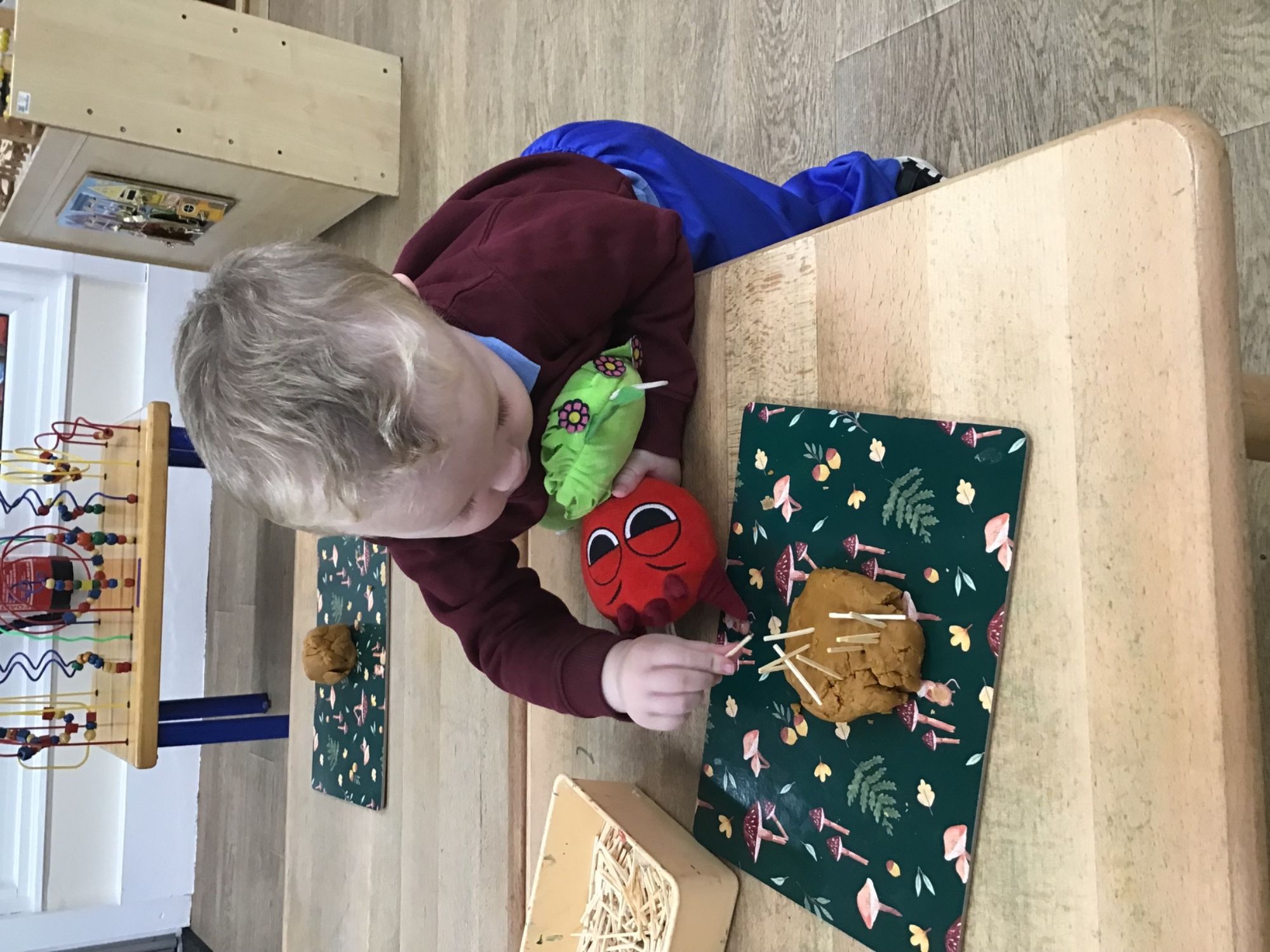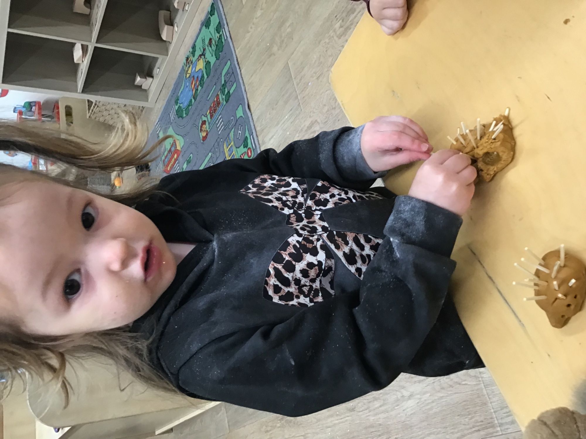 All things Autumn colours this week. We went on a leaf hunt and found lots of different coloured leaves, we listened to the story Leaf Man and then made our very own Leaf Man! We read the book 'That's not my Hedgehog ' and made spikey hedgehogs with play dough. We even made Leaf soup in the mud kitchen, as well as spray painted, climbed, sorted,filled containers and shared books this week in Butterfly Group.