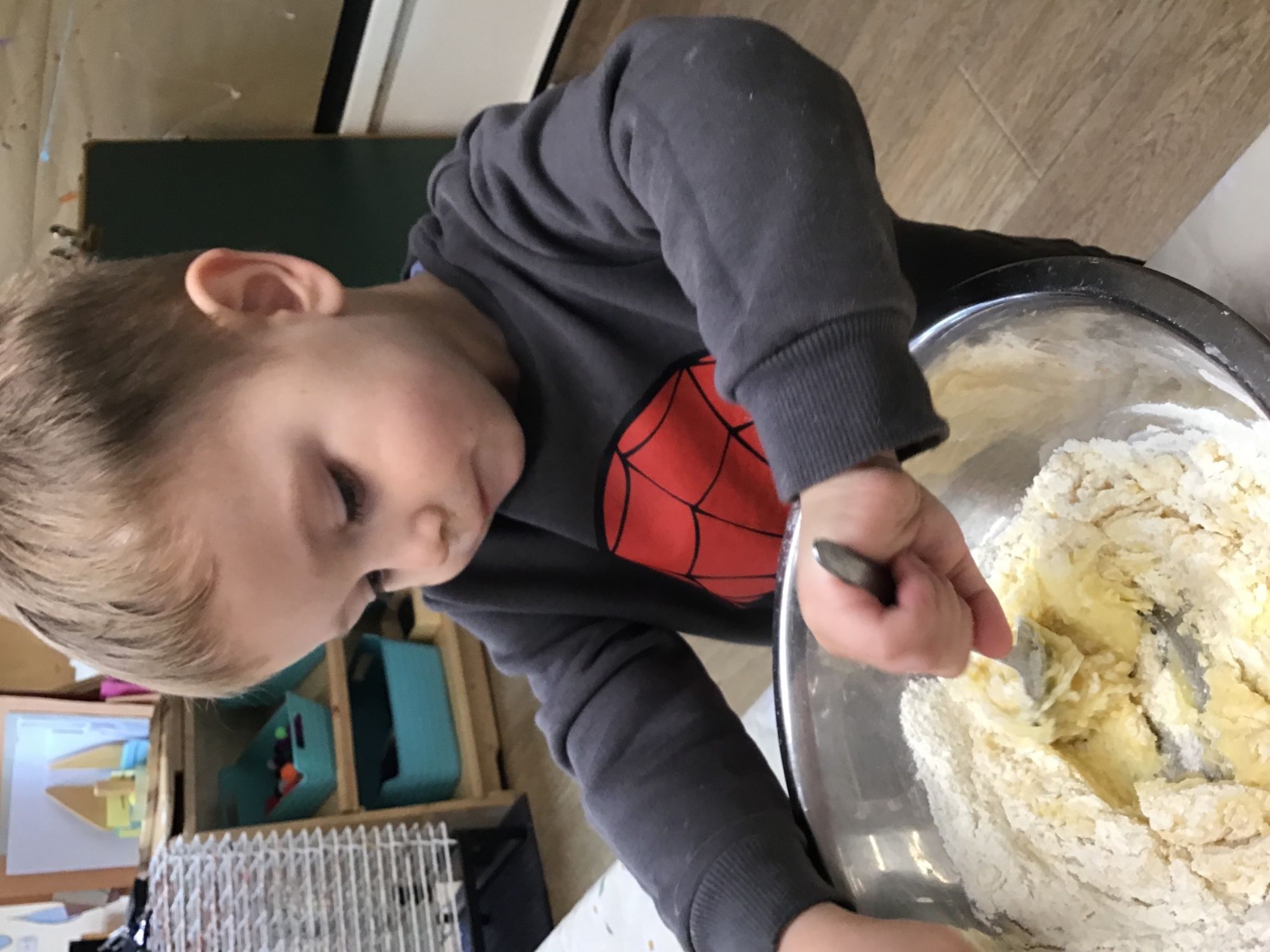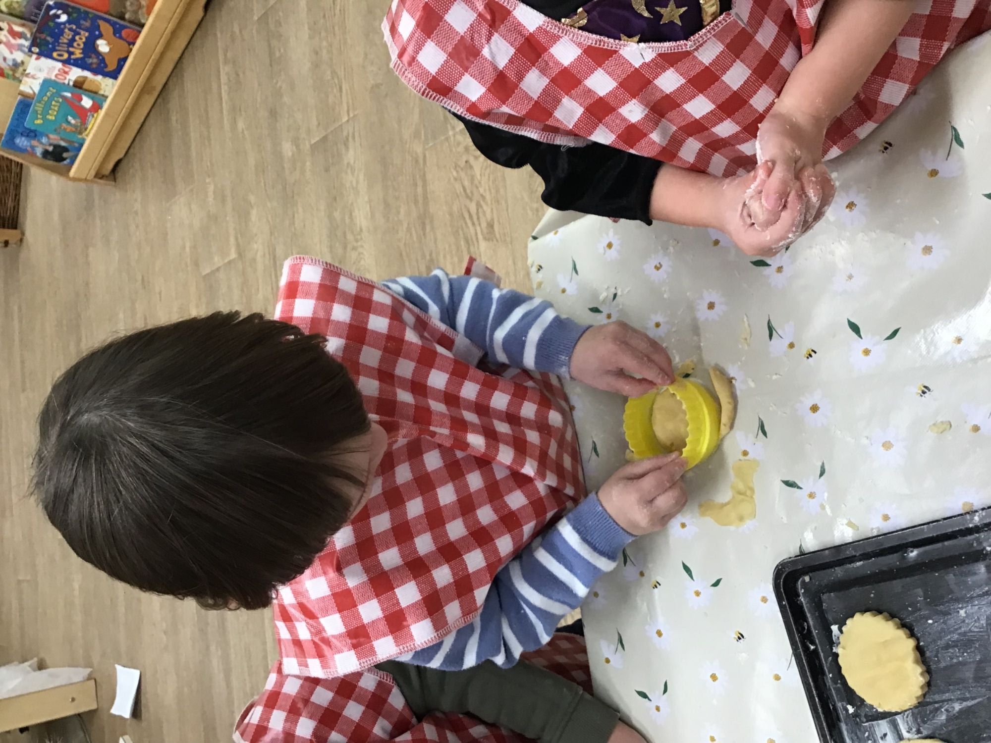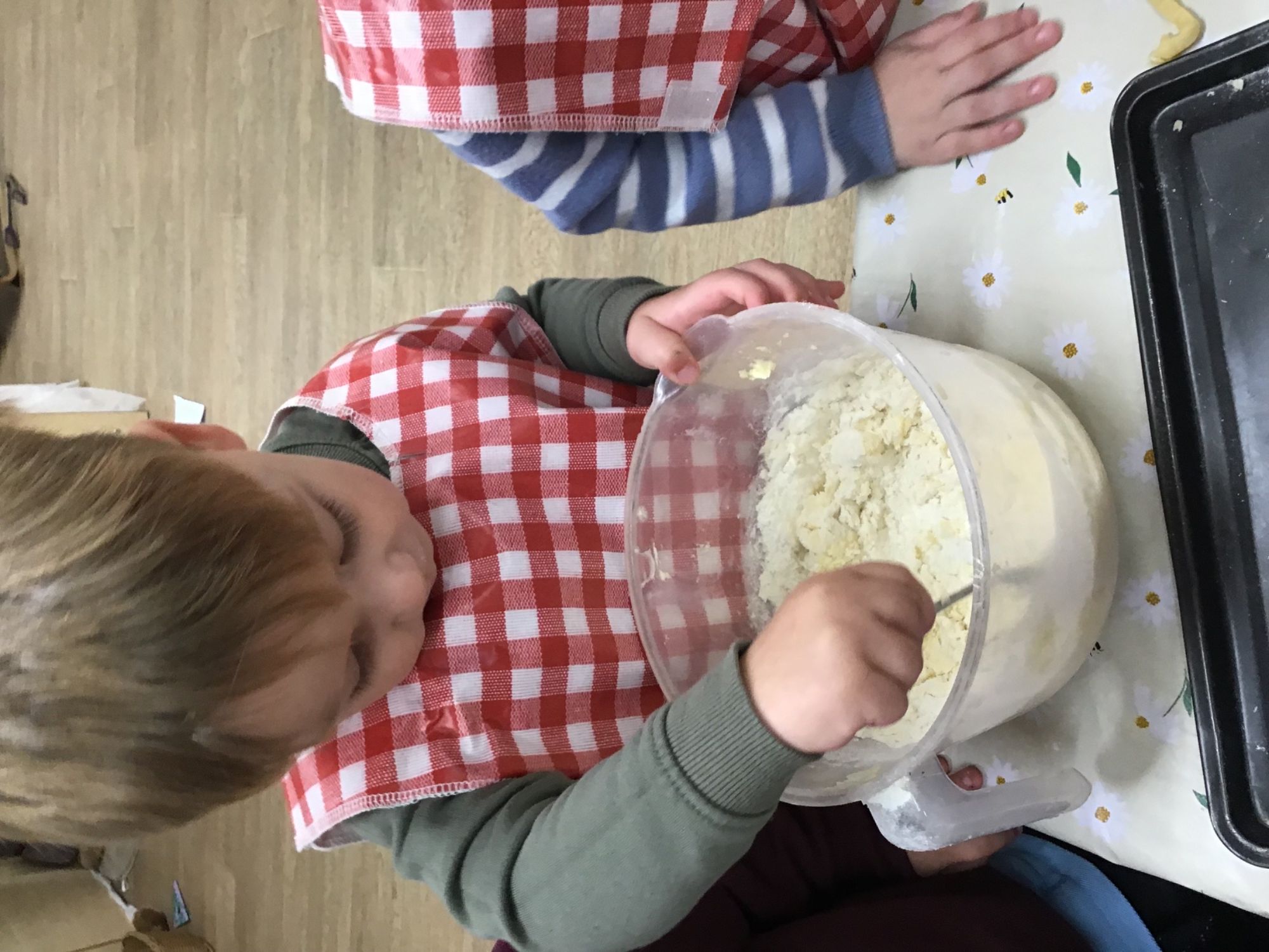 We weighed, mixed, poured,rolled, flatten and cut out the dough, then baked them in the oven. We are such good bakers!