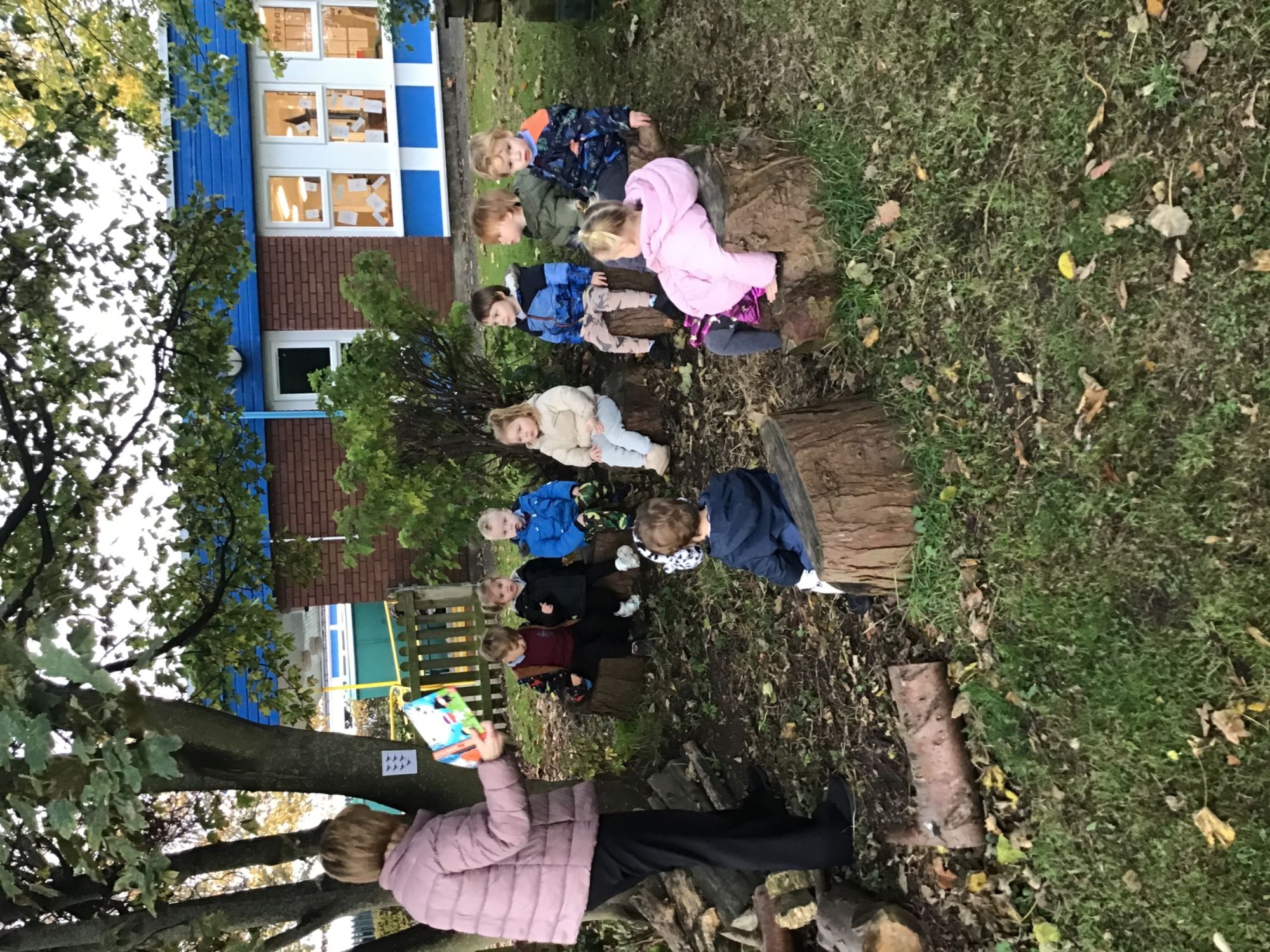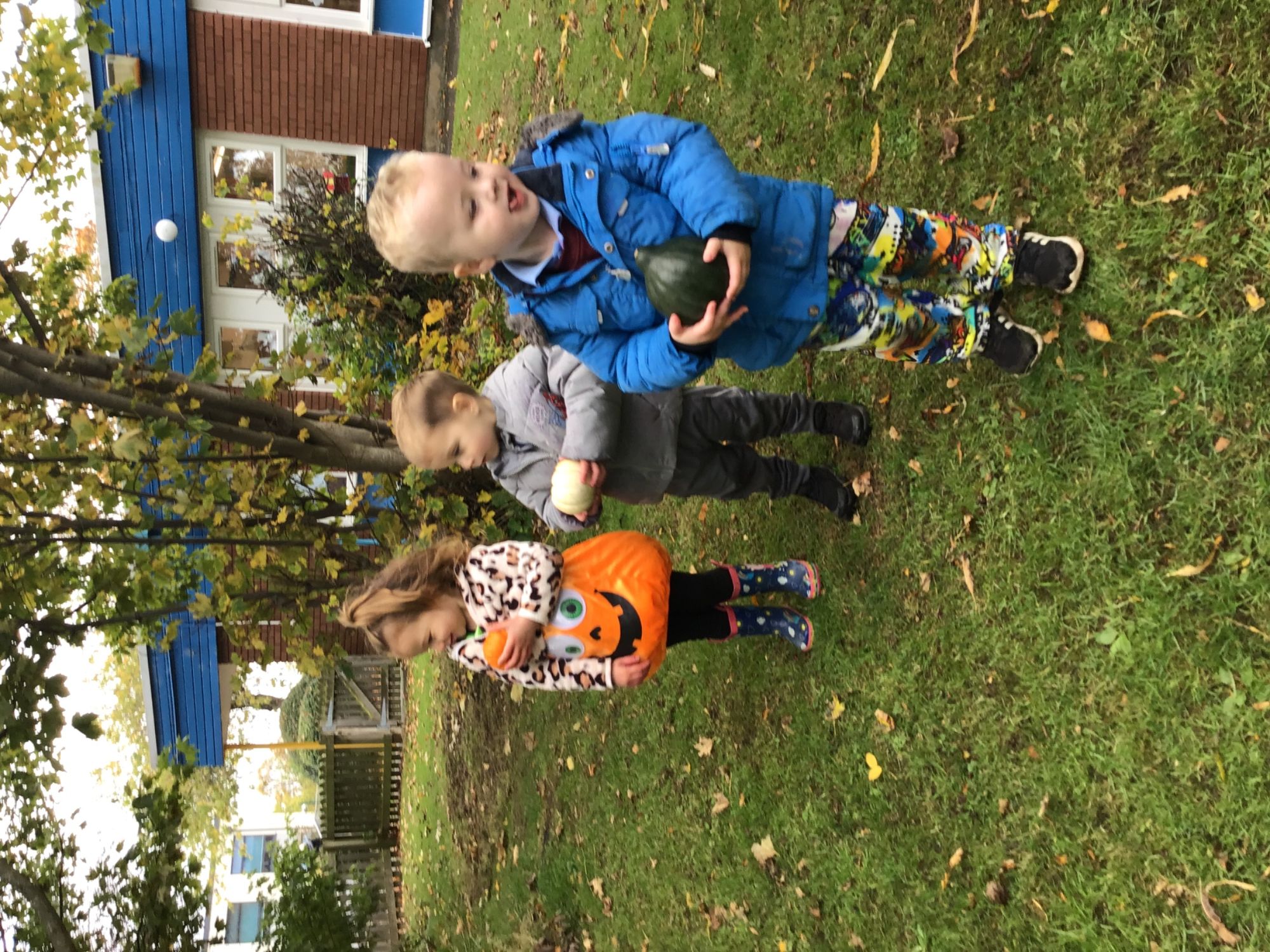 Our story this week was 'We're going on a pumpkin hunt'. We sat on Nursery hill to listen to the story then we went in search of pumpkins! We found 5! We counted them and then put them in order of size.
