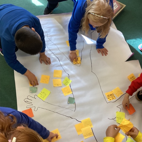 In history, children have been learning about how children's lives have changed since Tudor times. They have learnt how Lord Shaftesbury tried to improve the lives of working children. We also discussed how children's leisure has changed and if there are similarities by sorting statements into a huge Venn diagram in the hall.