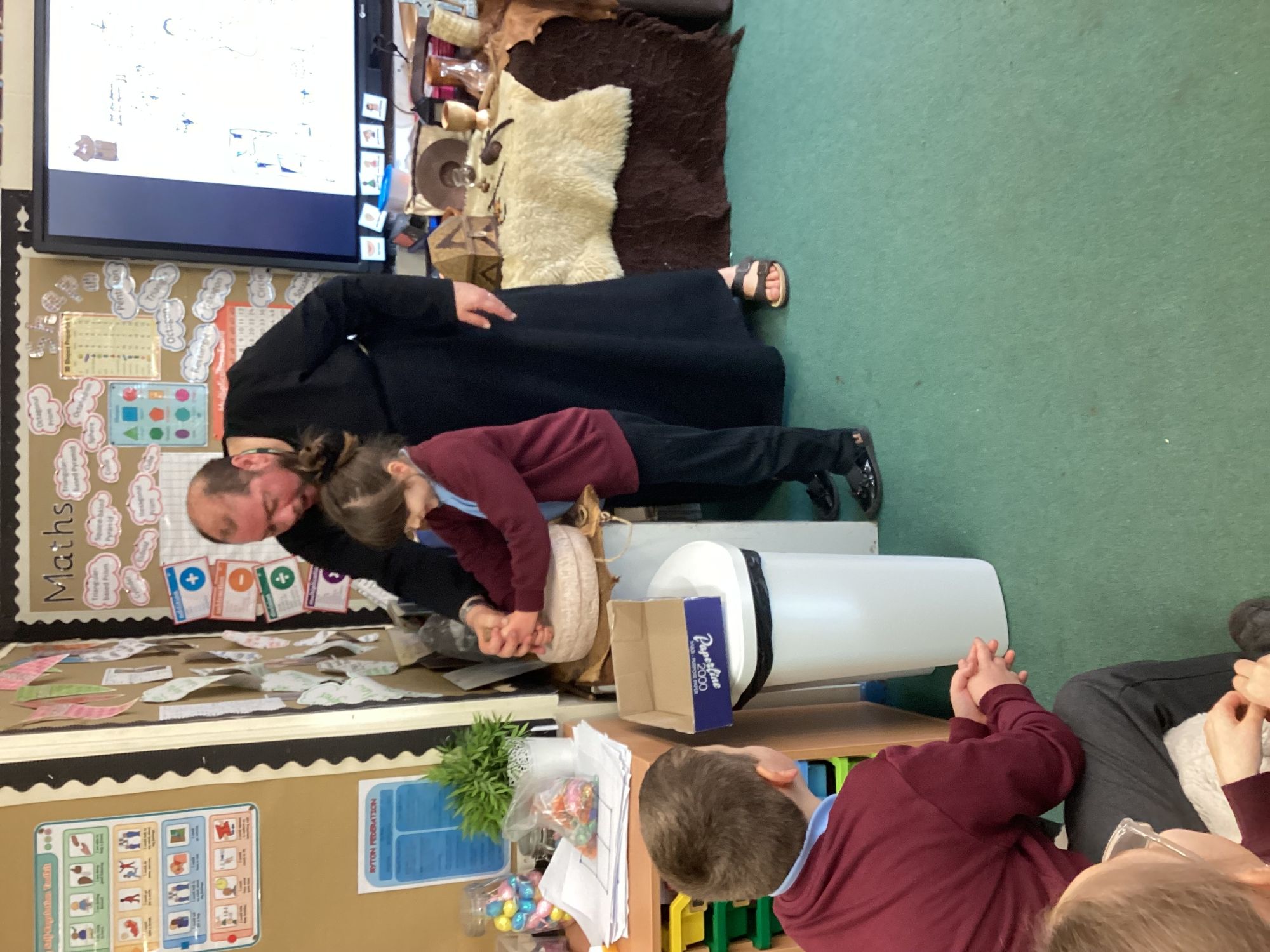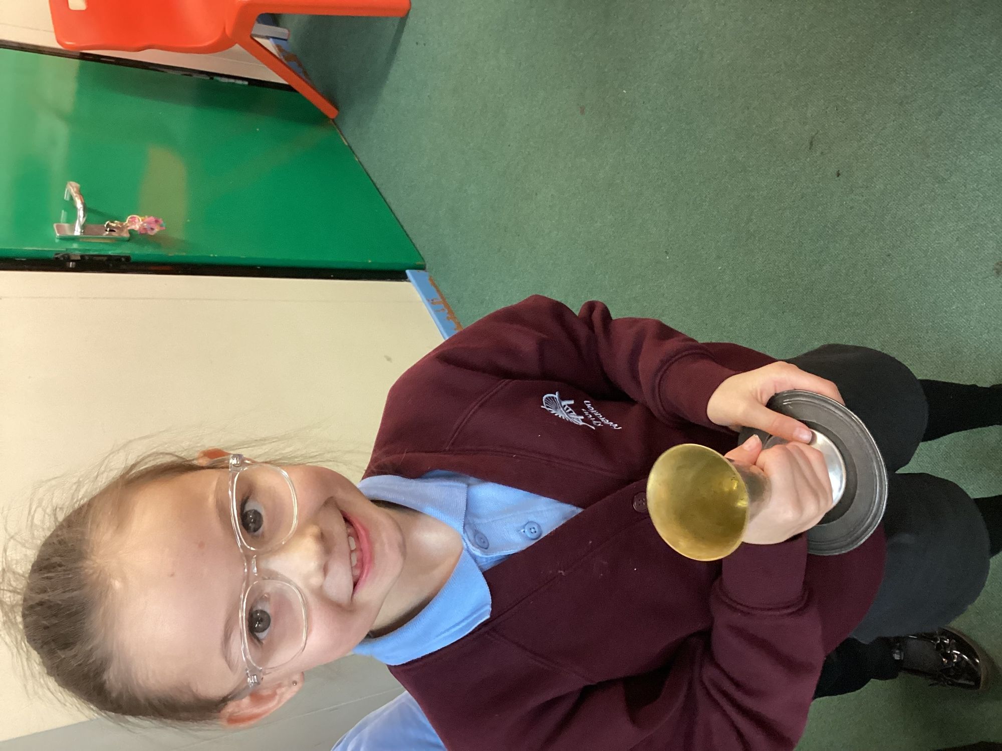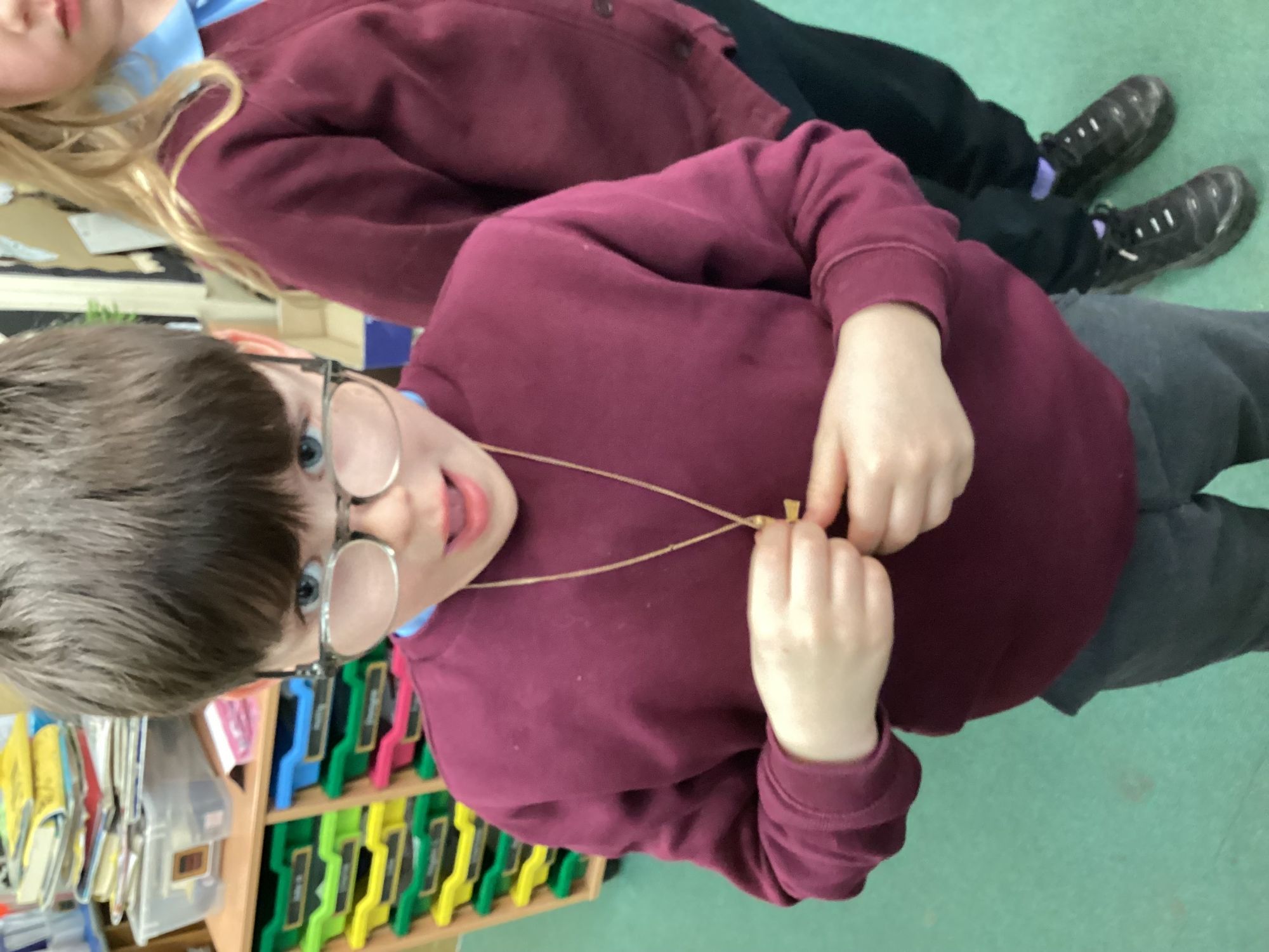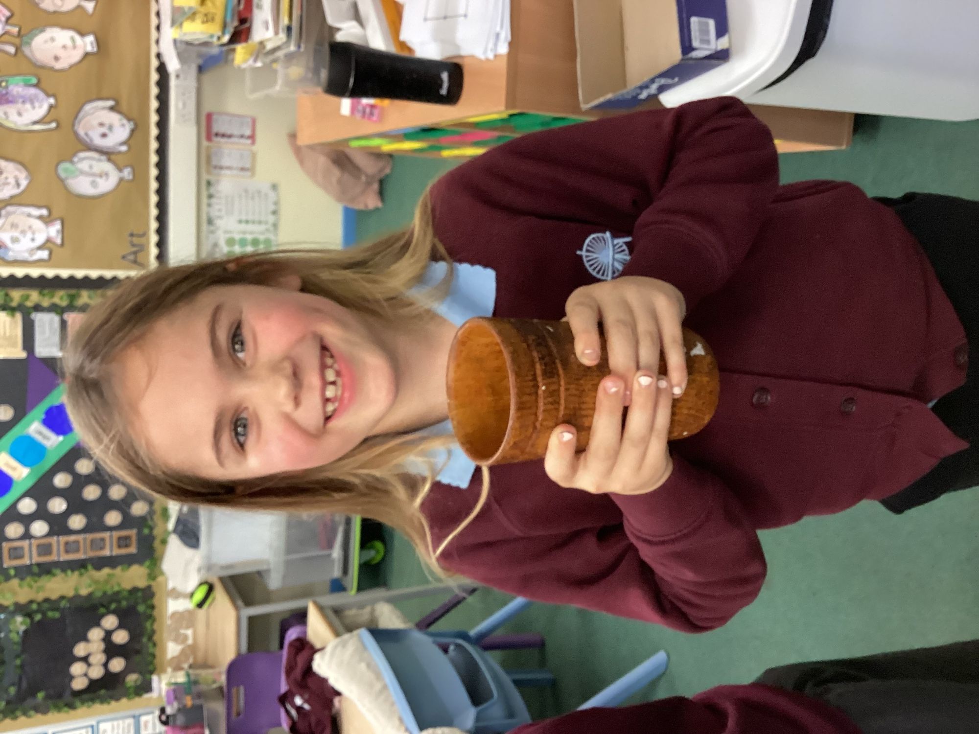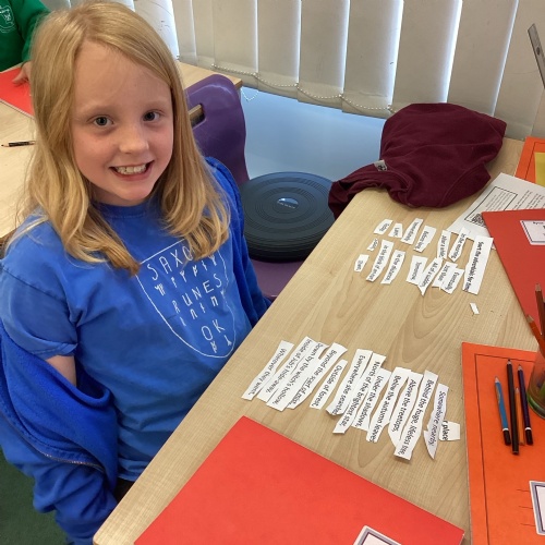 -Saxon monastery. We learnt how monks communicate when observing the strict rules of silence using the ancient hand gestures and had a go. We found out what jobs monks did for their community and had hands-on with some replica Anglo-Saxon objects. We learnt how to create beautiful handwriting using real quill pens and ink. Finally, we learnt how Anglo-Saxons had fun playing a game from times gone by.