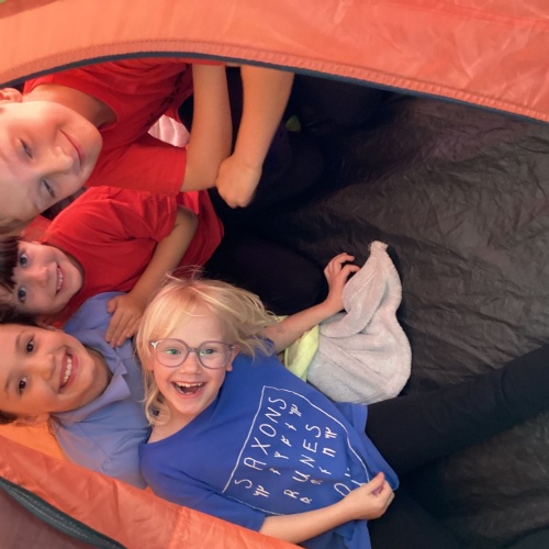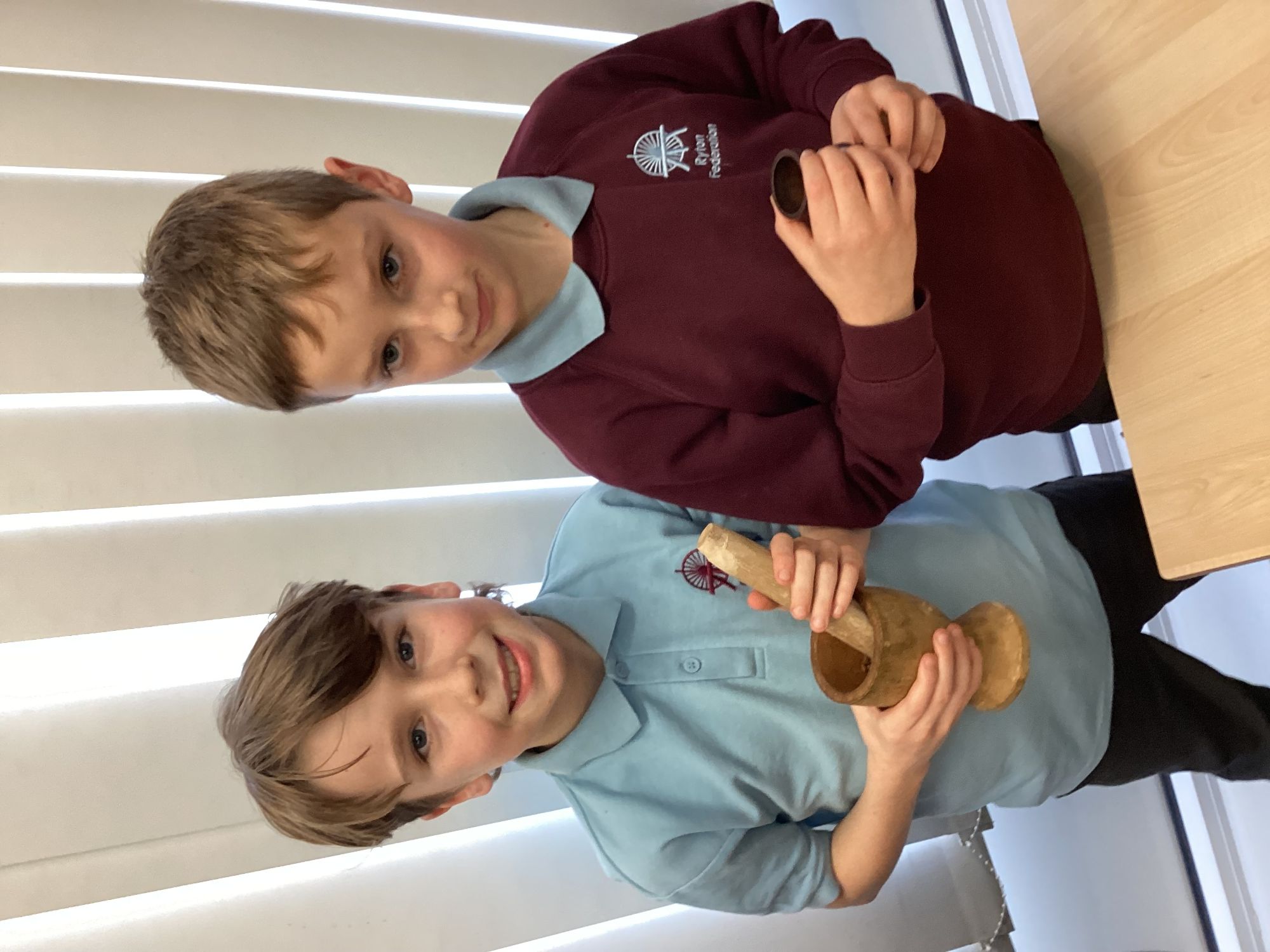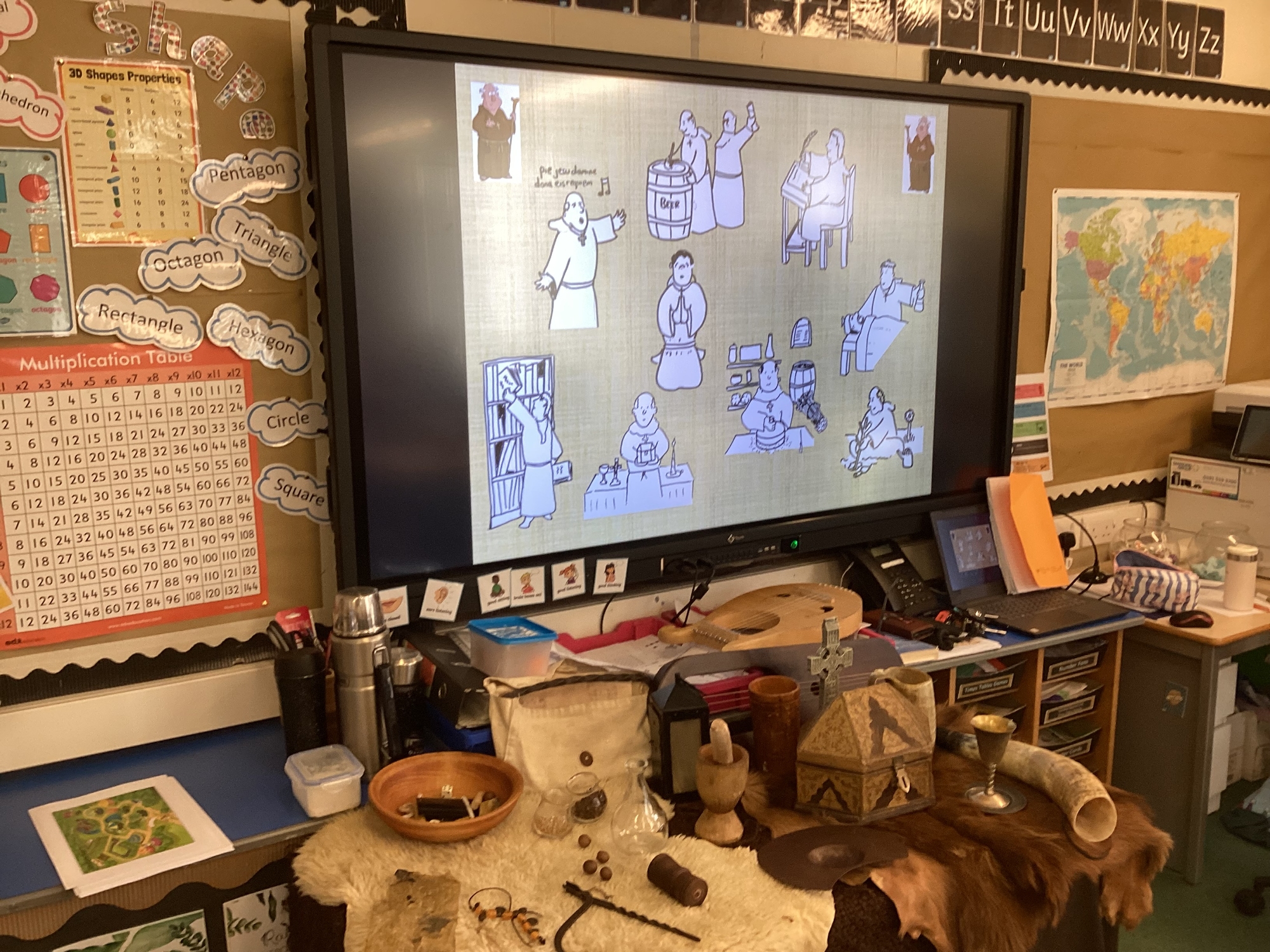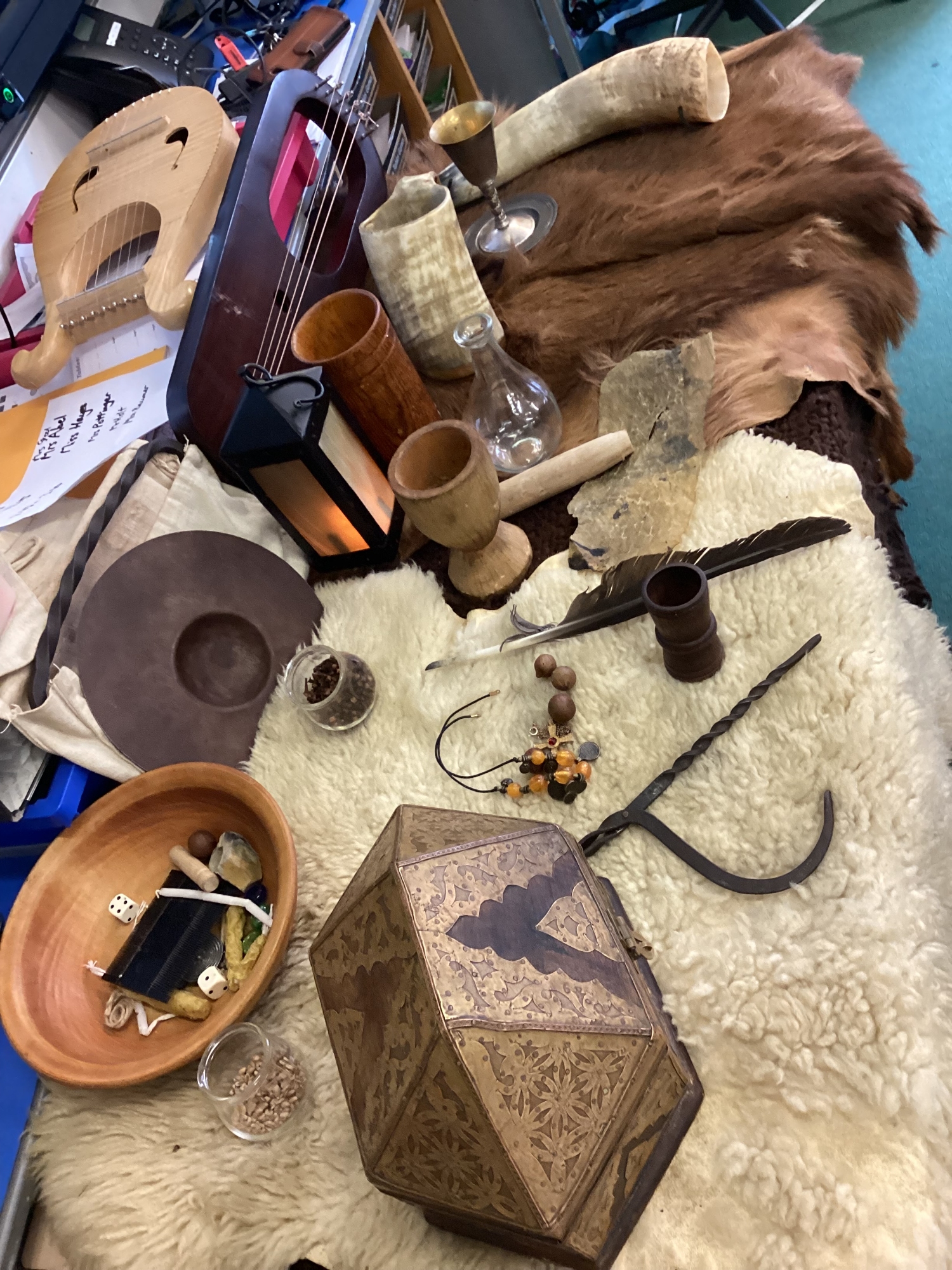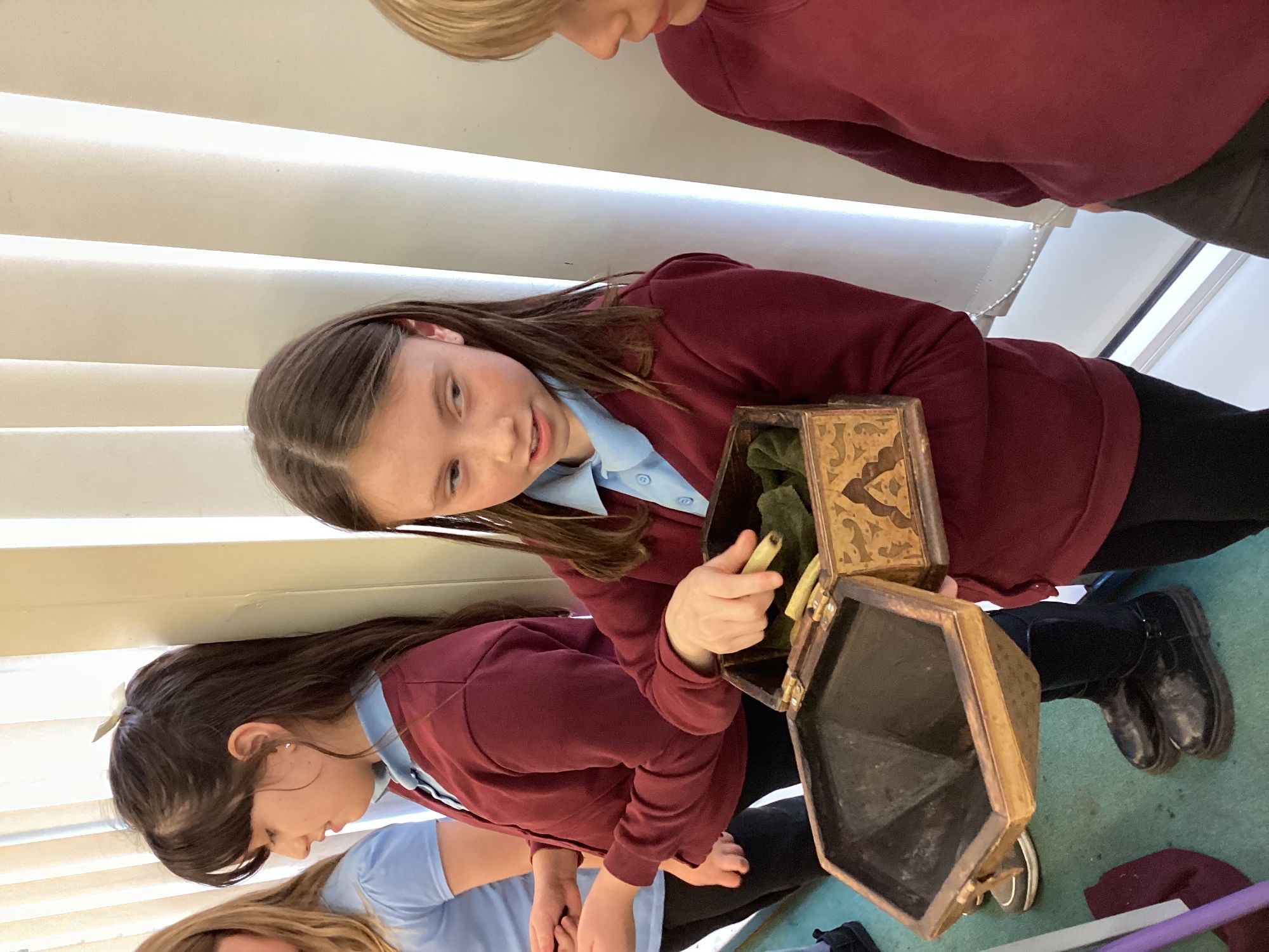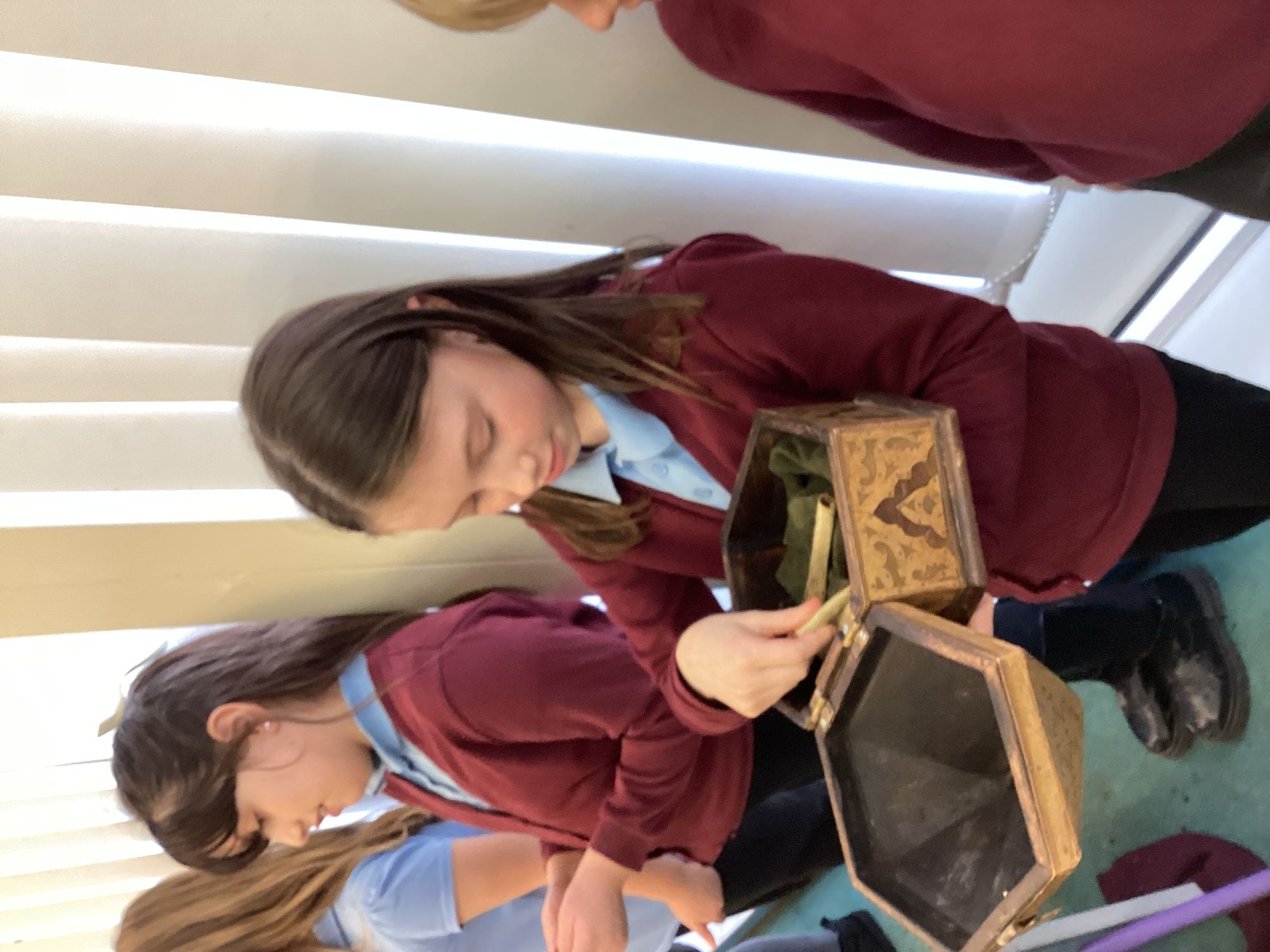 -Saxon monastery. We learnt how monks communicate when observing the strict rules of silence using the ancient hand gestures and had a go. We found out what jobs monks did for their community and had hands-on with some replica Anglo-Saxon objects. We learnt how to create beautiful handwriting using real quill pens and ink. Finally, we learnt how Anglo-Saxons had fun playing a game from times gone by.