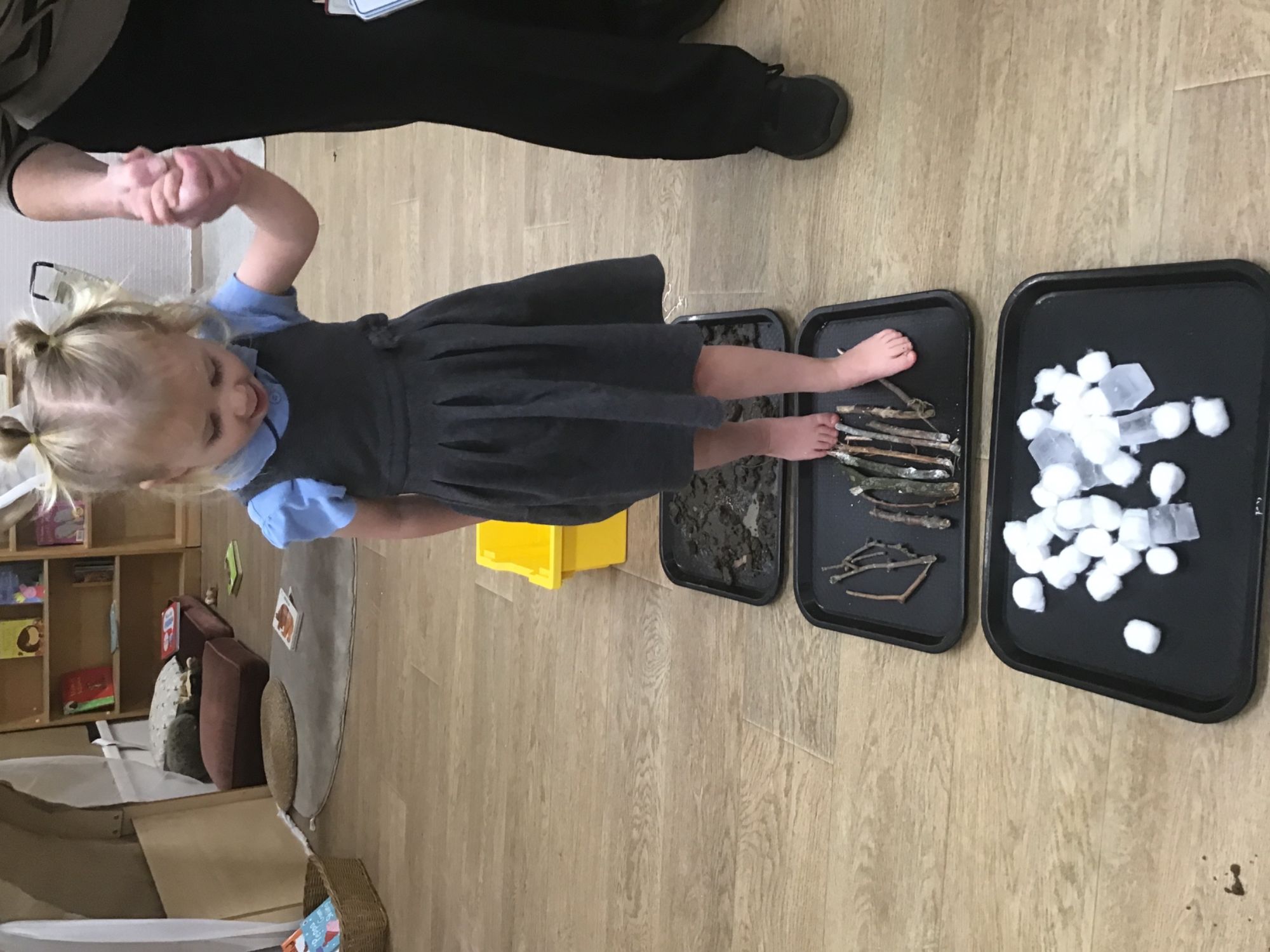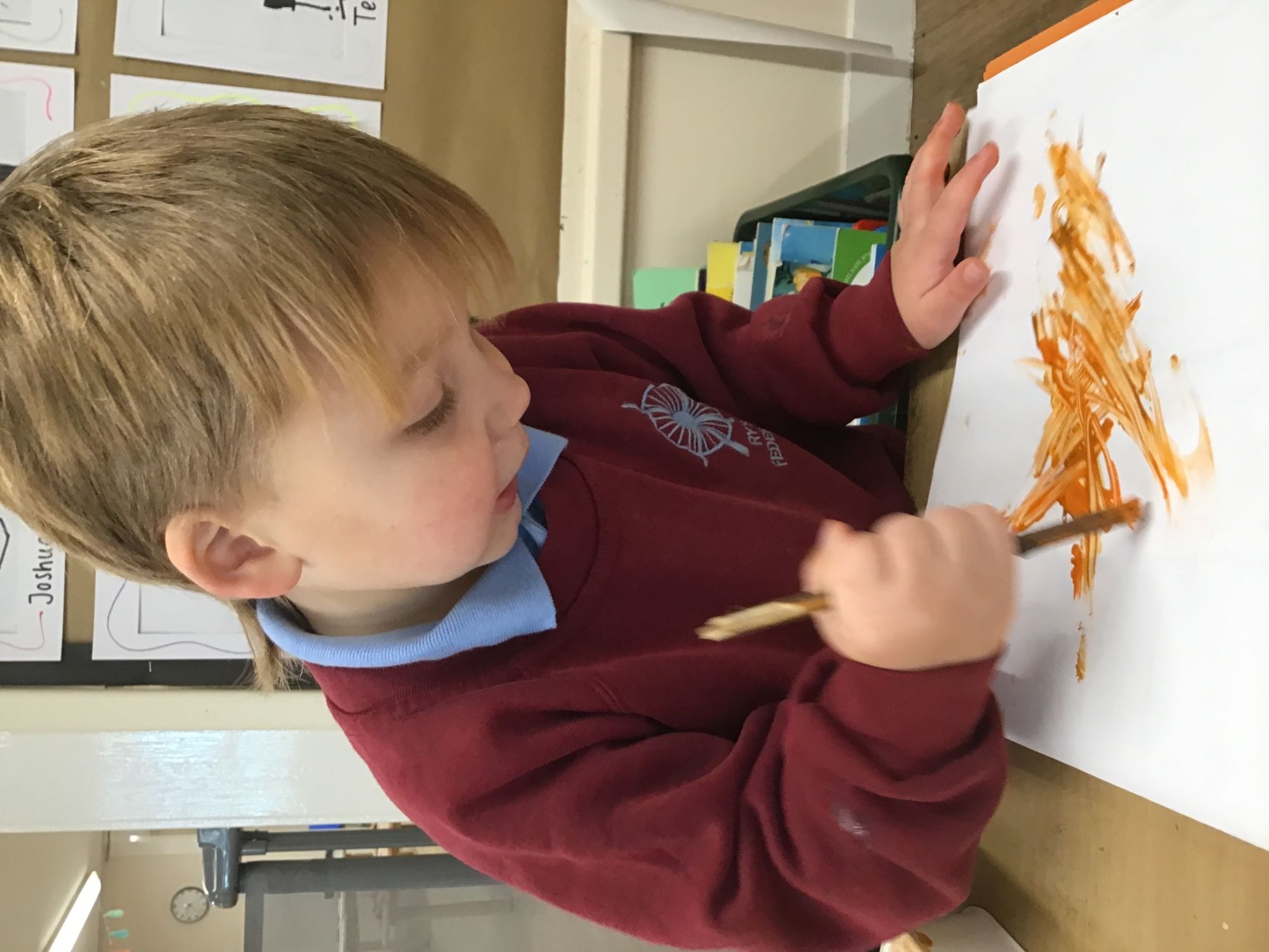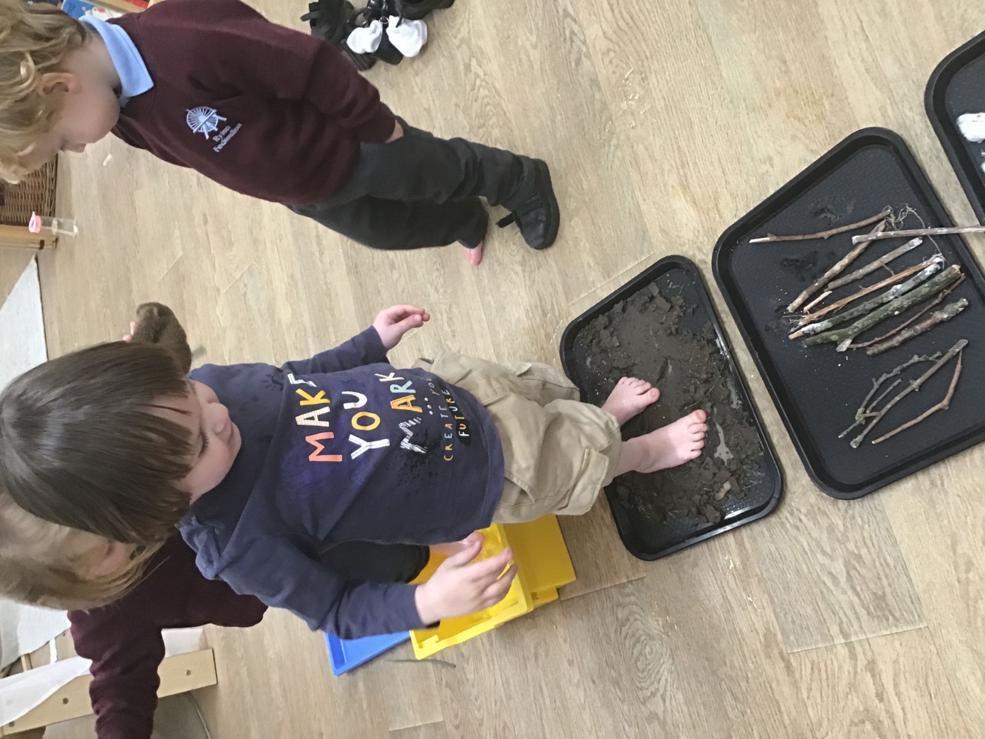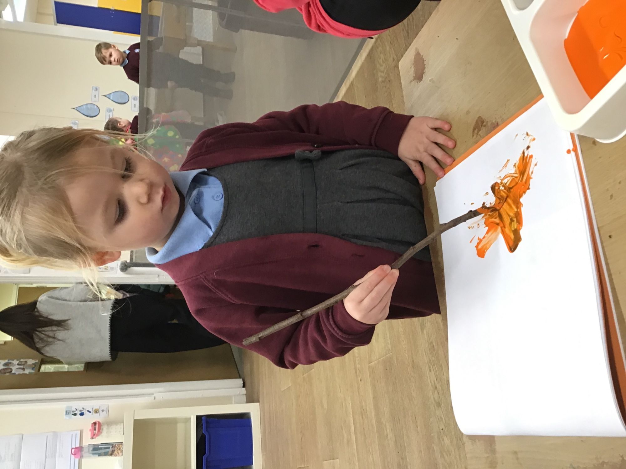 We all found a stick on Nursery Hill, some found long sticks, some found short sticks.we took them indoors and we did lots of mark making with them.