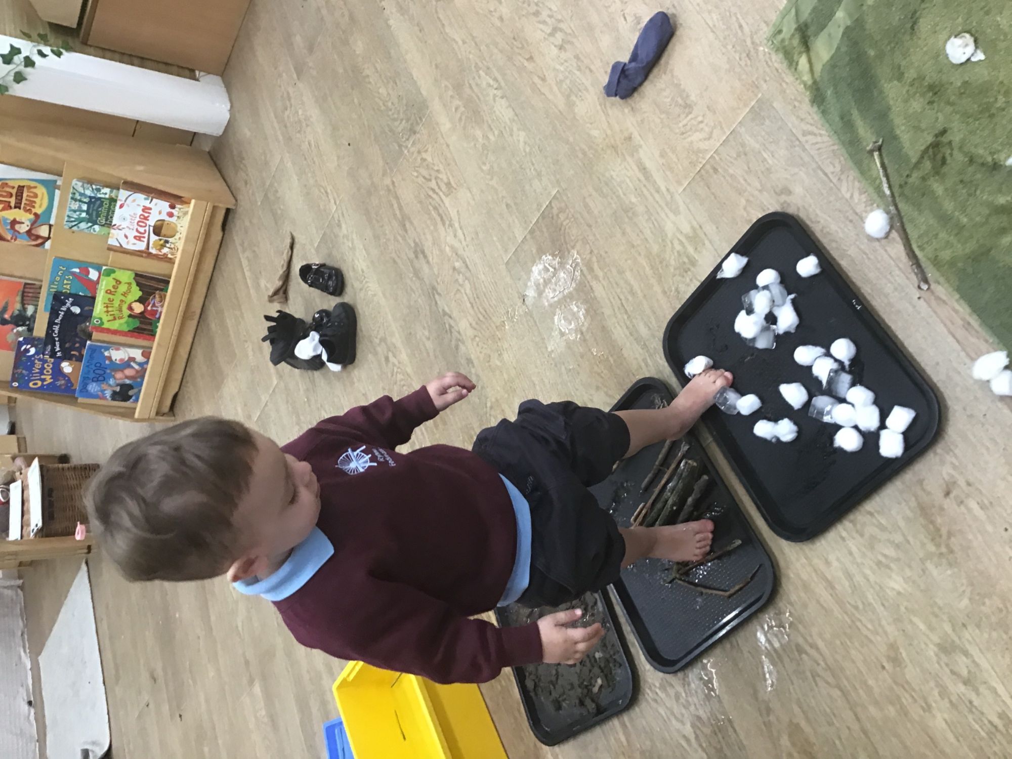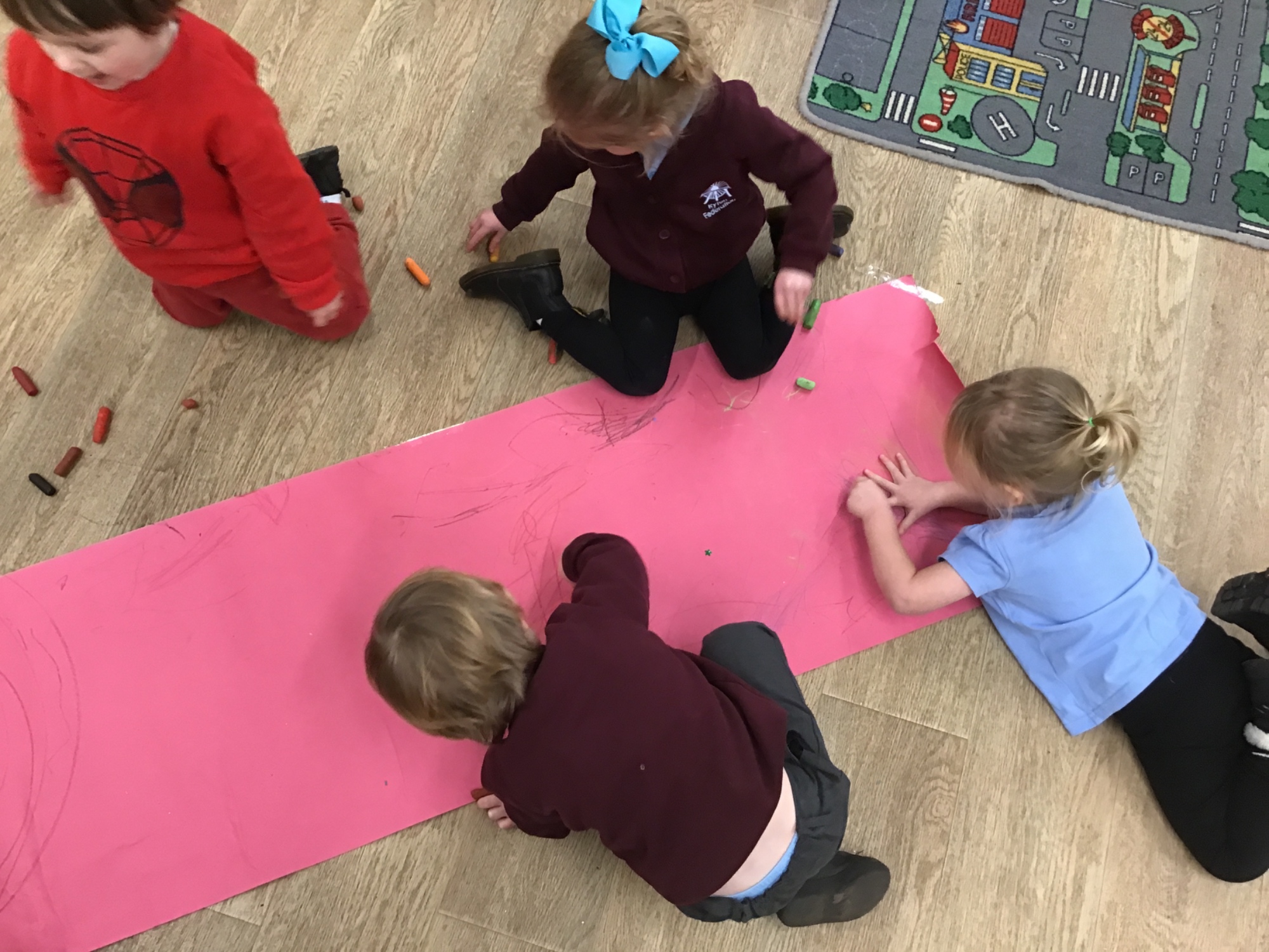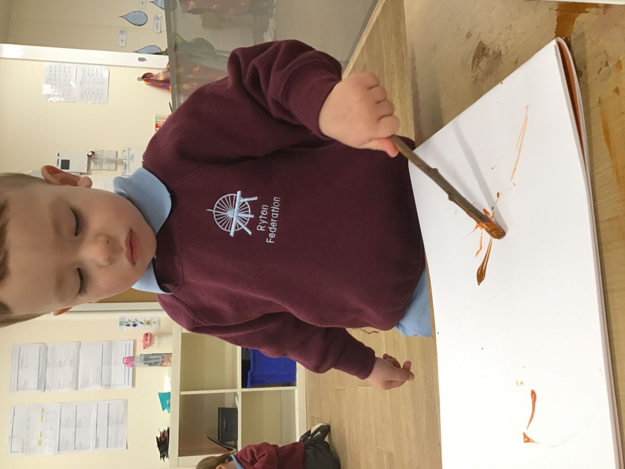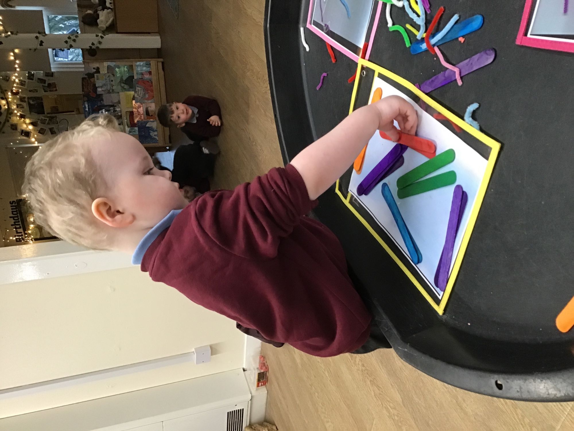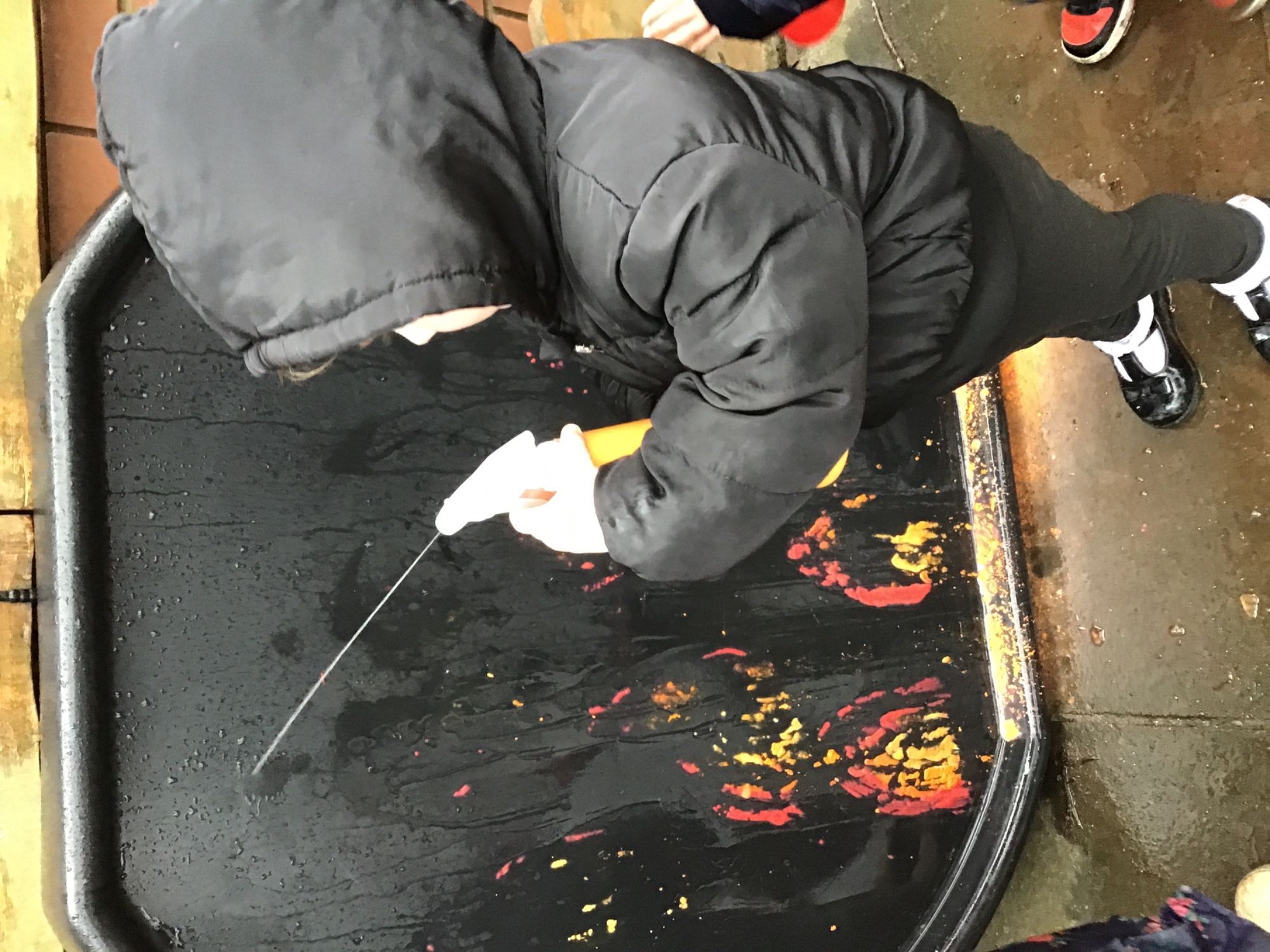 We all found a stick on Nursery Hill, some found long sticks, some found short sticks.we took them indoors and we did lots of mark making with them.
