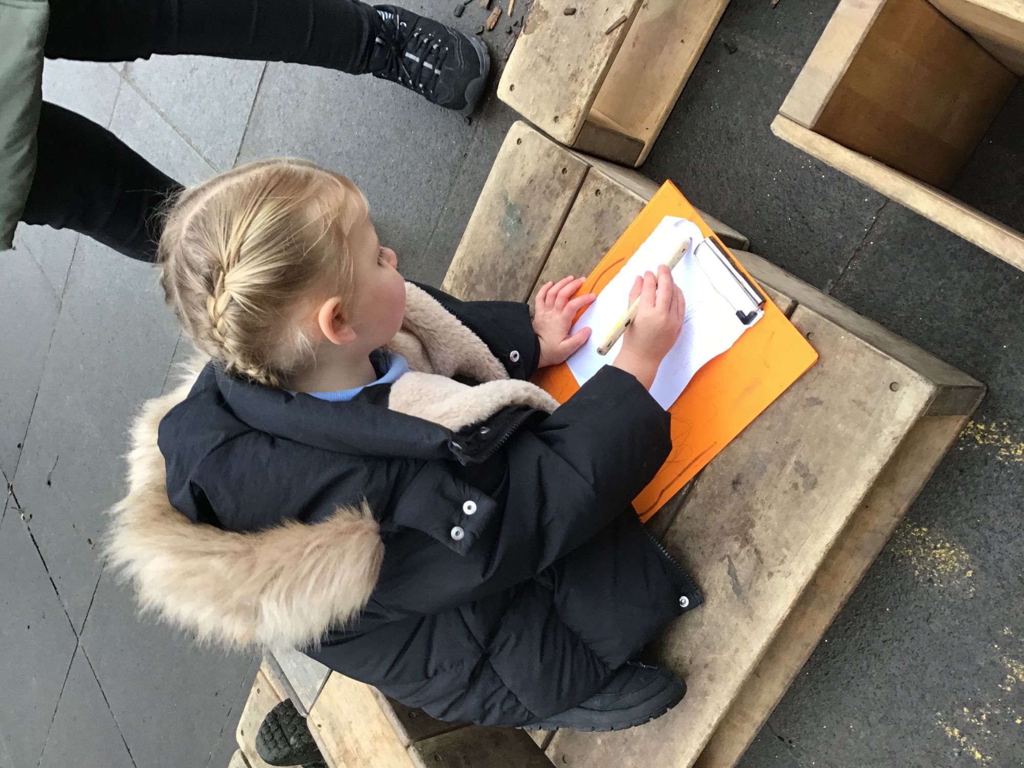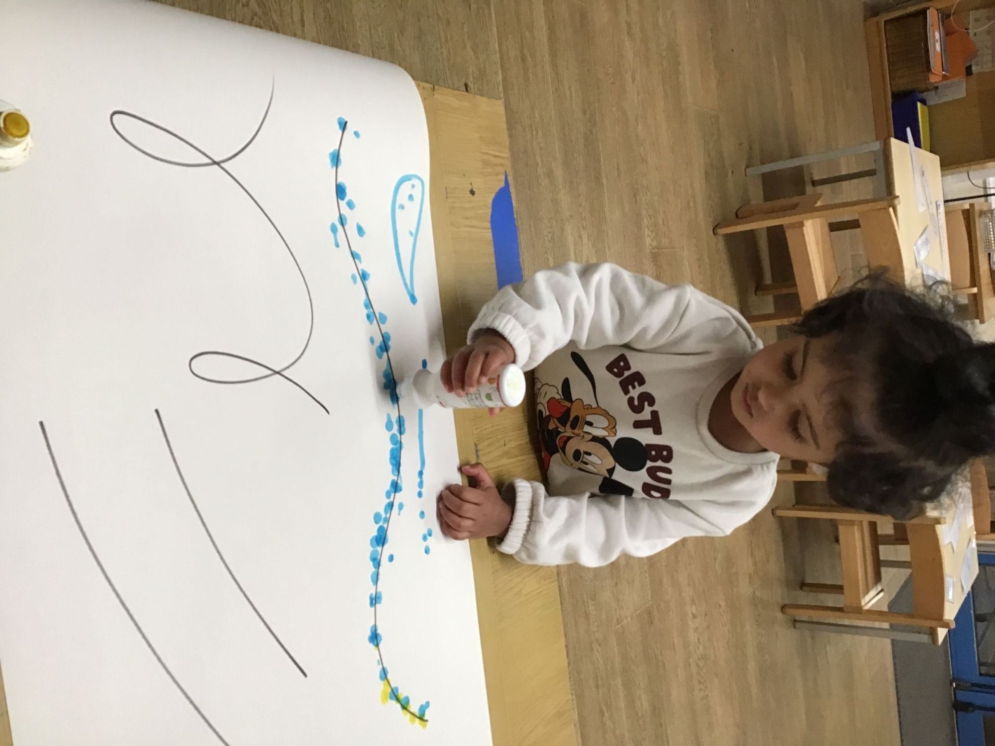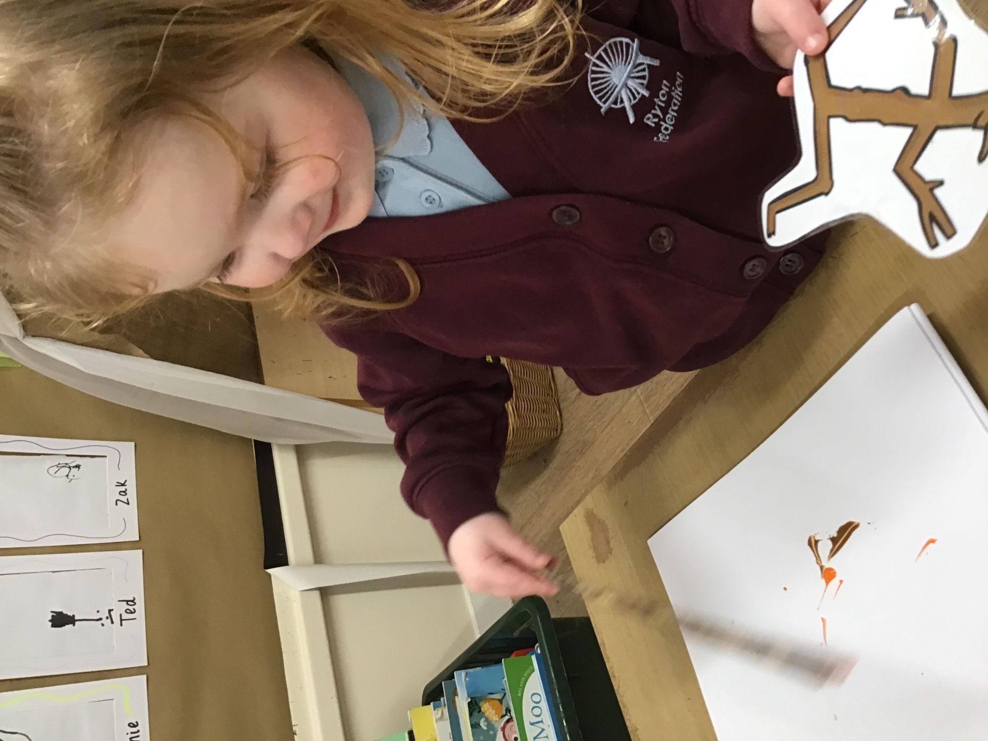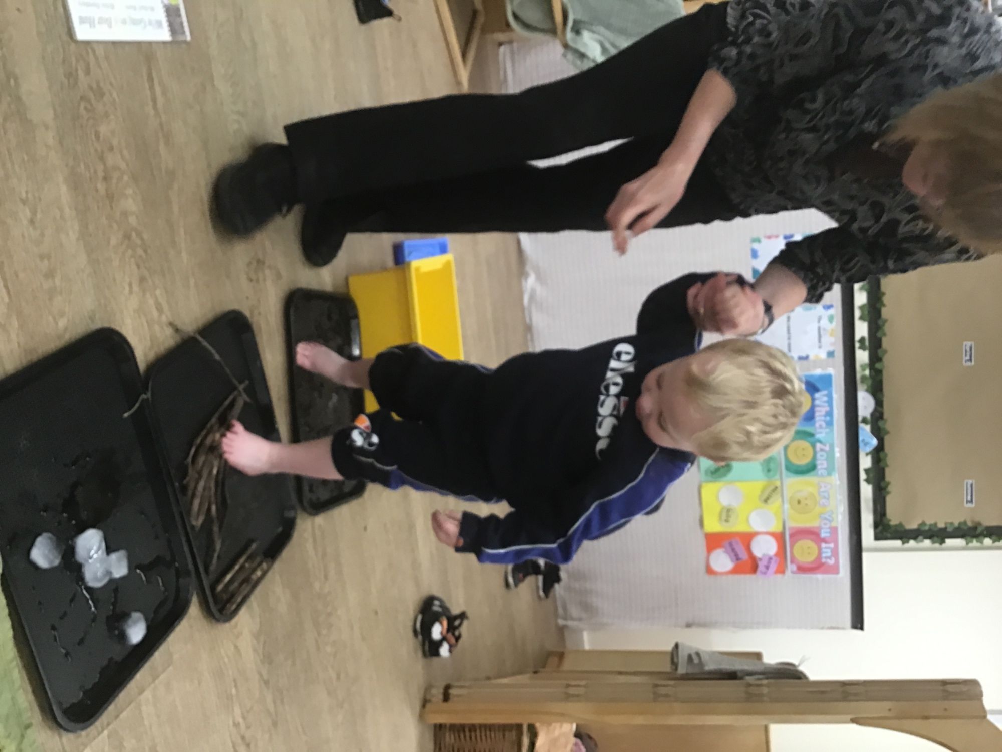 We all found a stick on Nursery Hill, some found long sticks, some found short sticks.we took them indoors and we did lots of mark making with them.