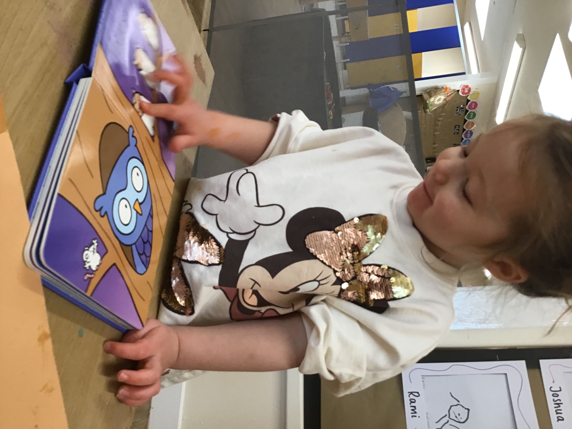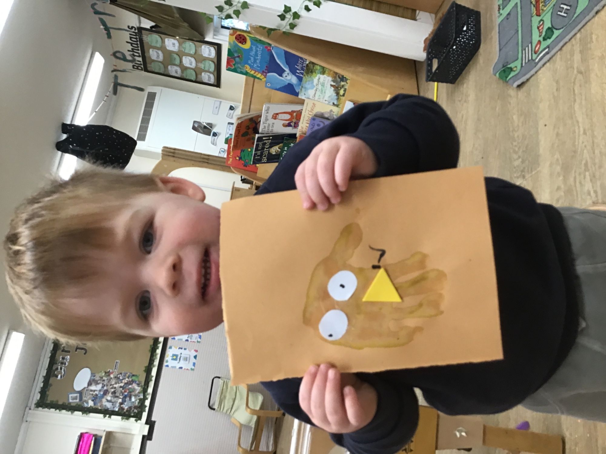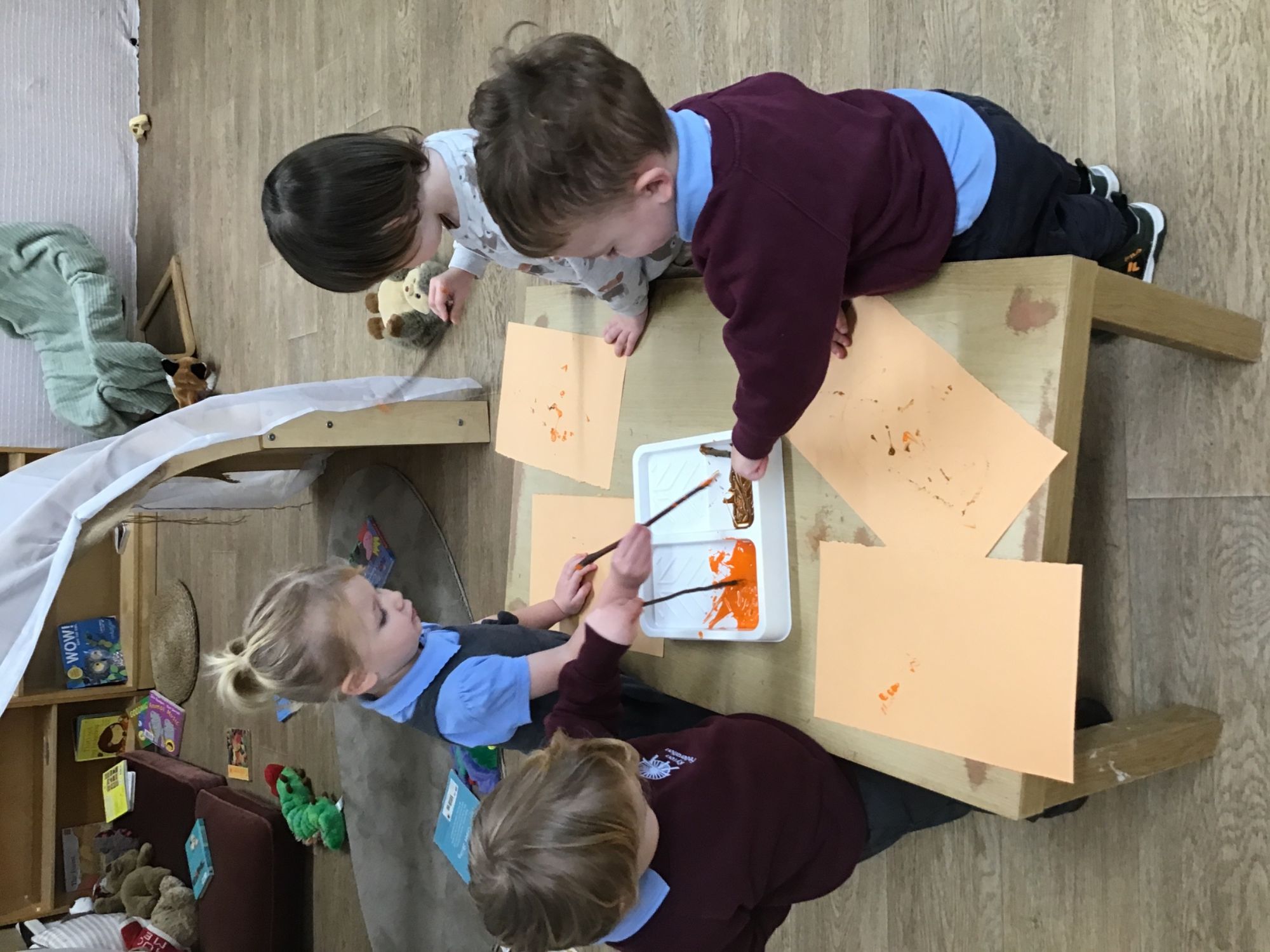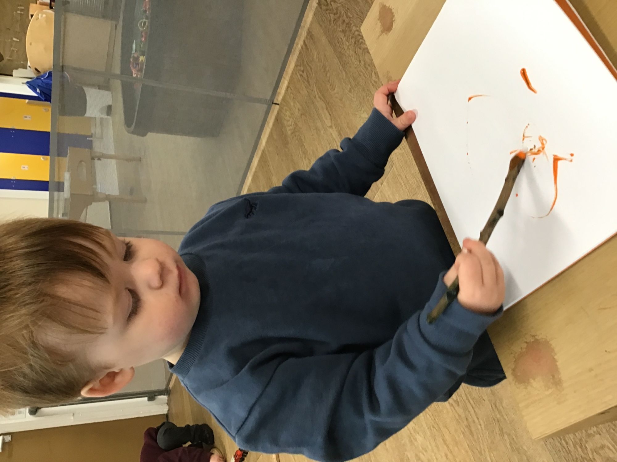 We enjoyed the story 'The dark,dark night' about Ned the Hedgehog looking for a home and he found a place to sleep in a big pile of leaves.We have painted, explored and used our imagination this week in Butterfly group.
