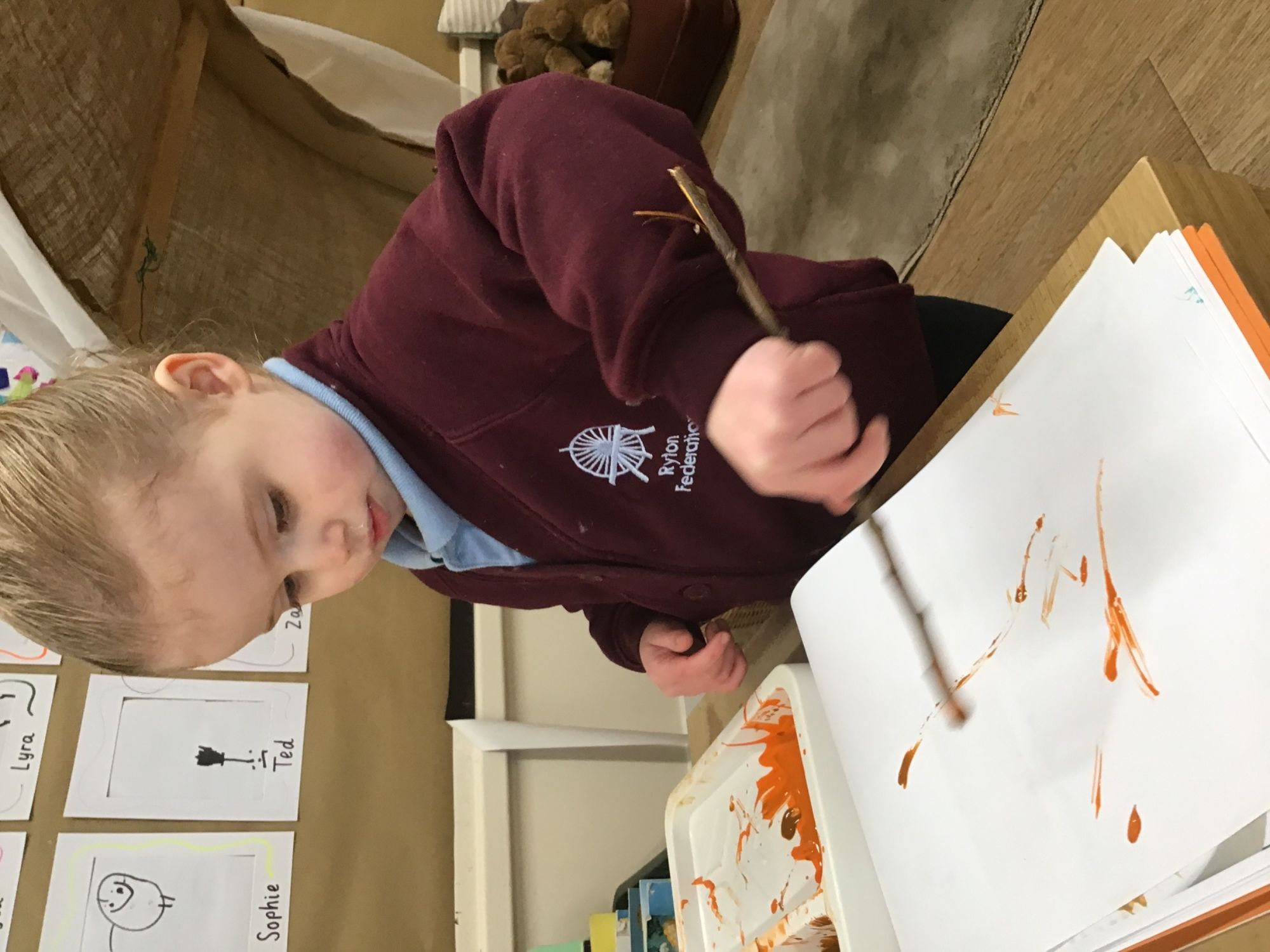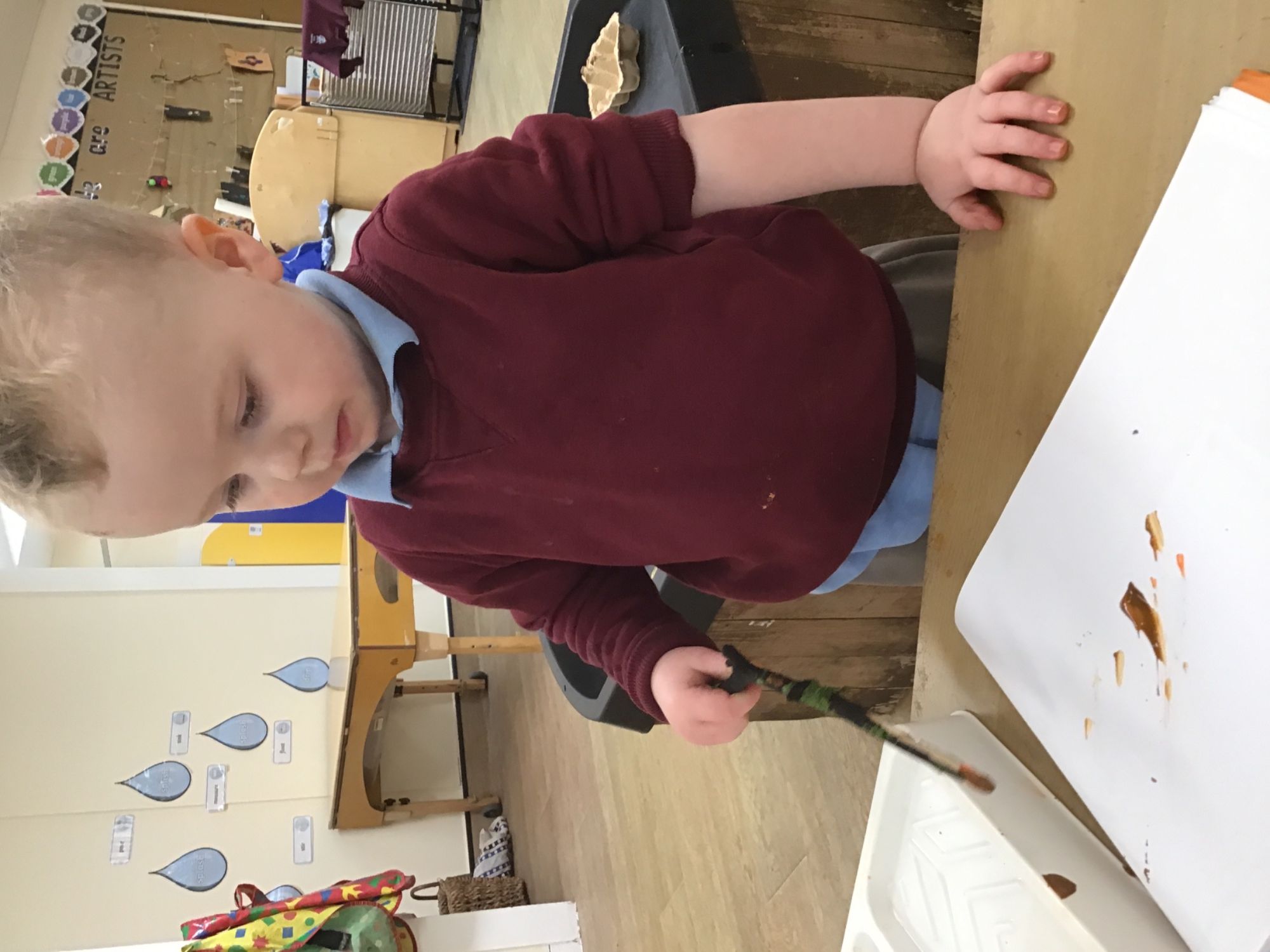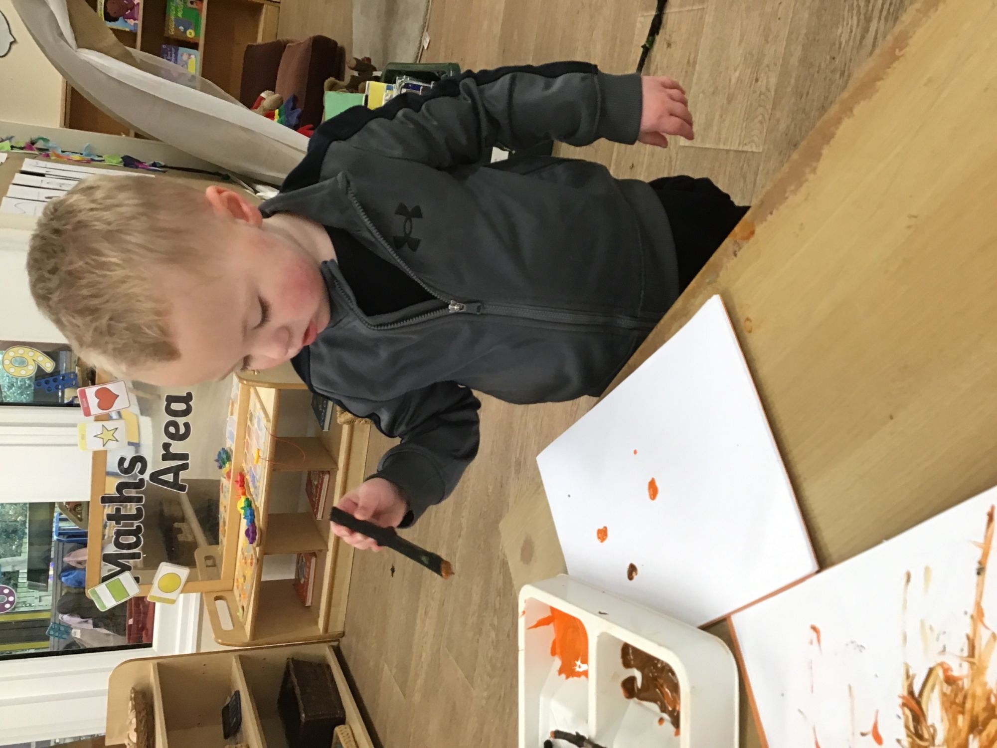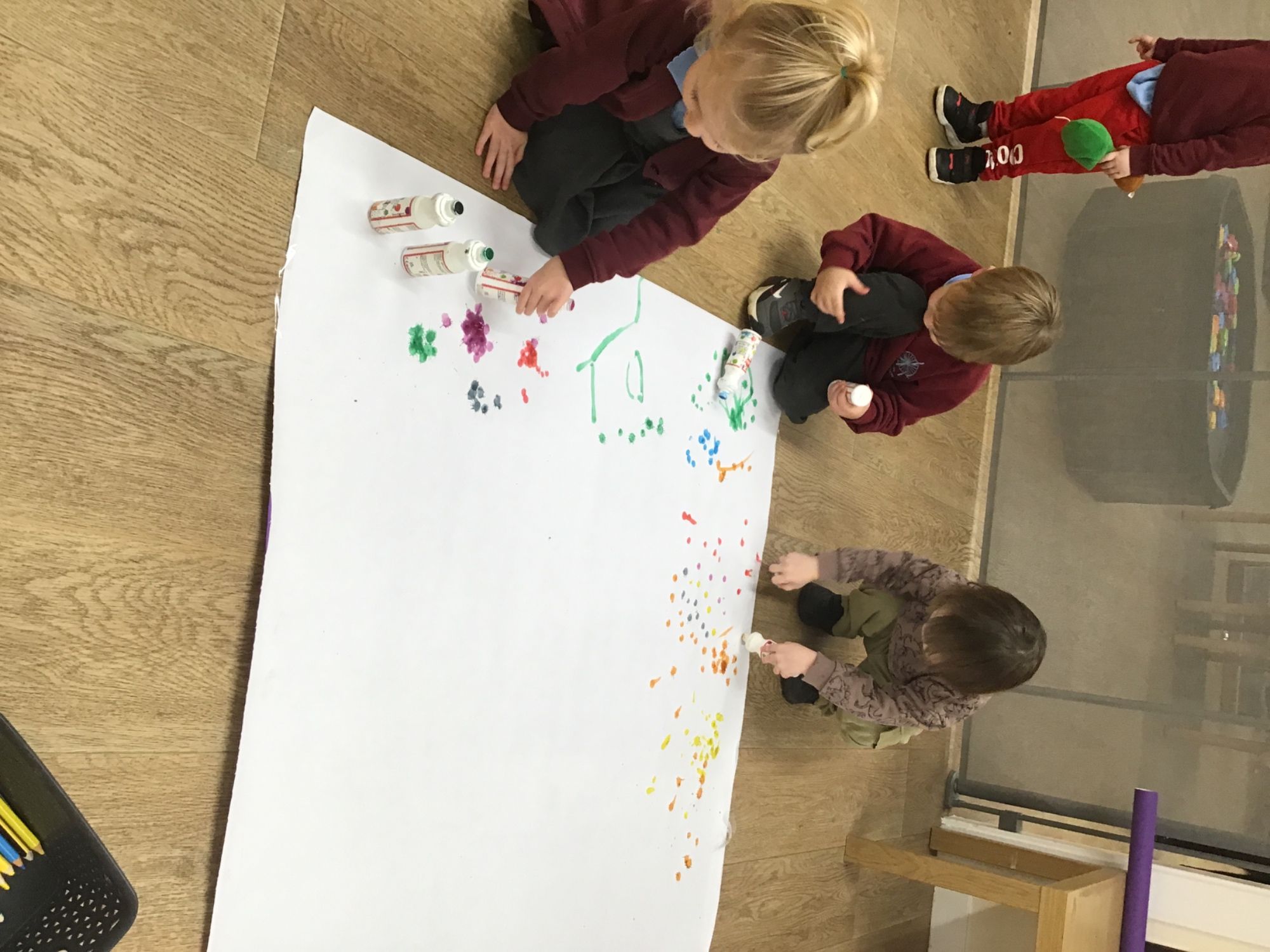 We enjoyed the story 'The dark,dark night' about Ned the Hedgehog looking for a home and he found a place to sleep in a big pile of leaves.We have painted, explored and used our imagination this week in Butterfly group.