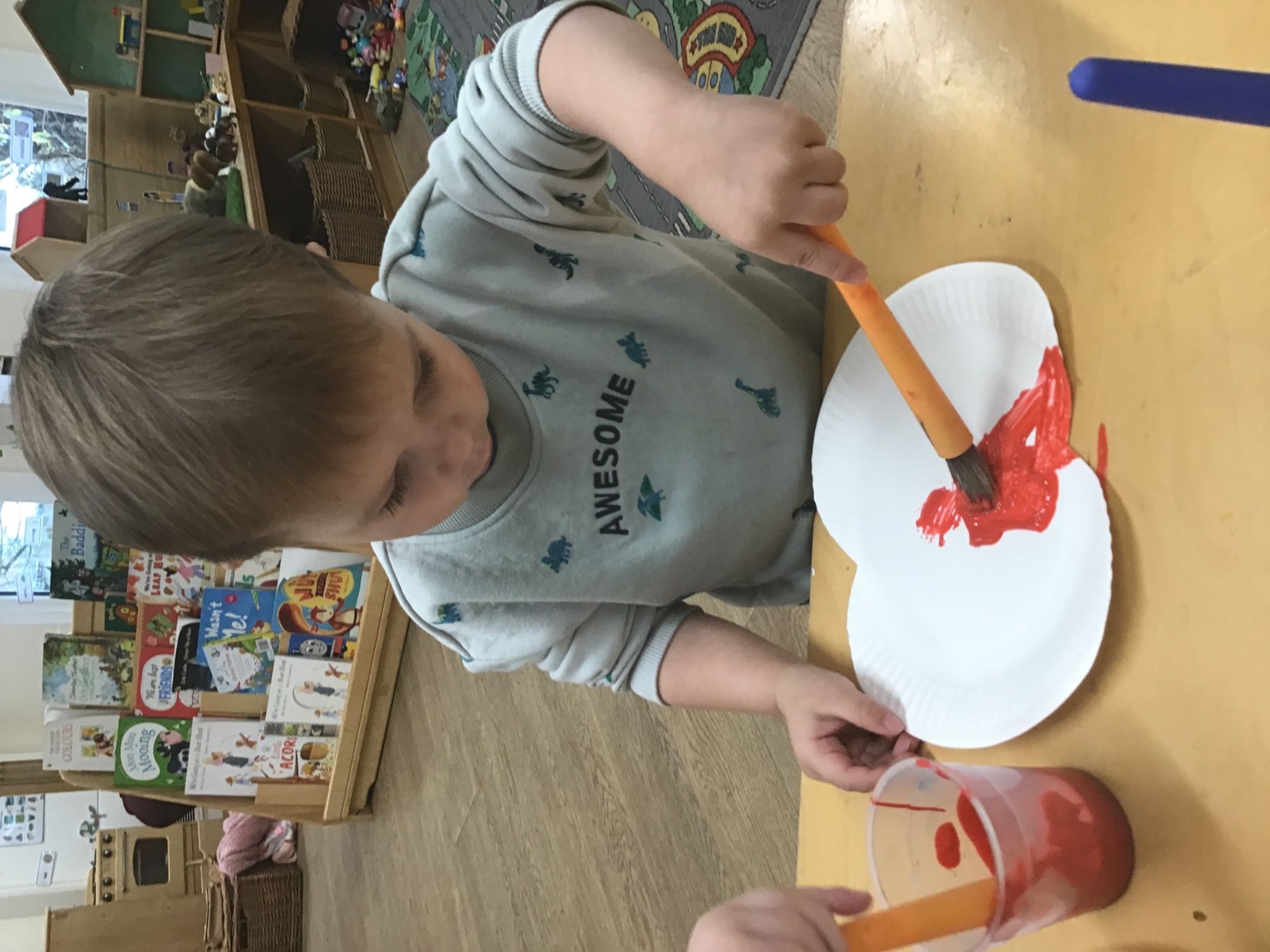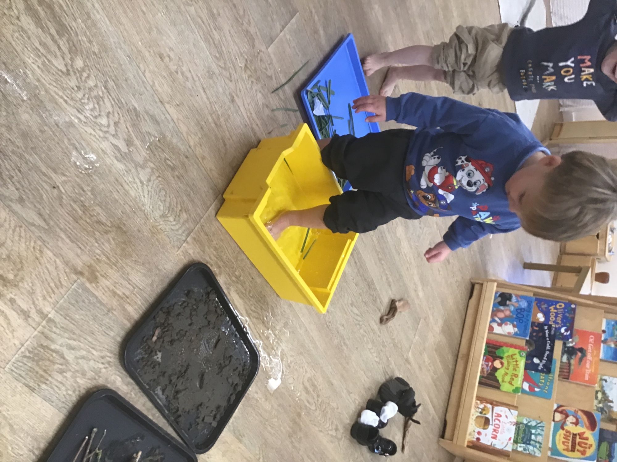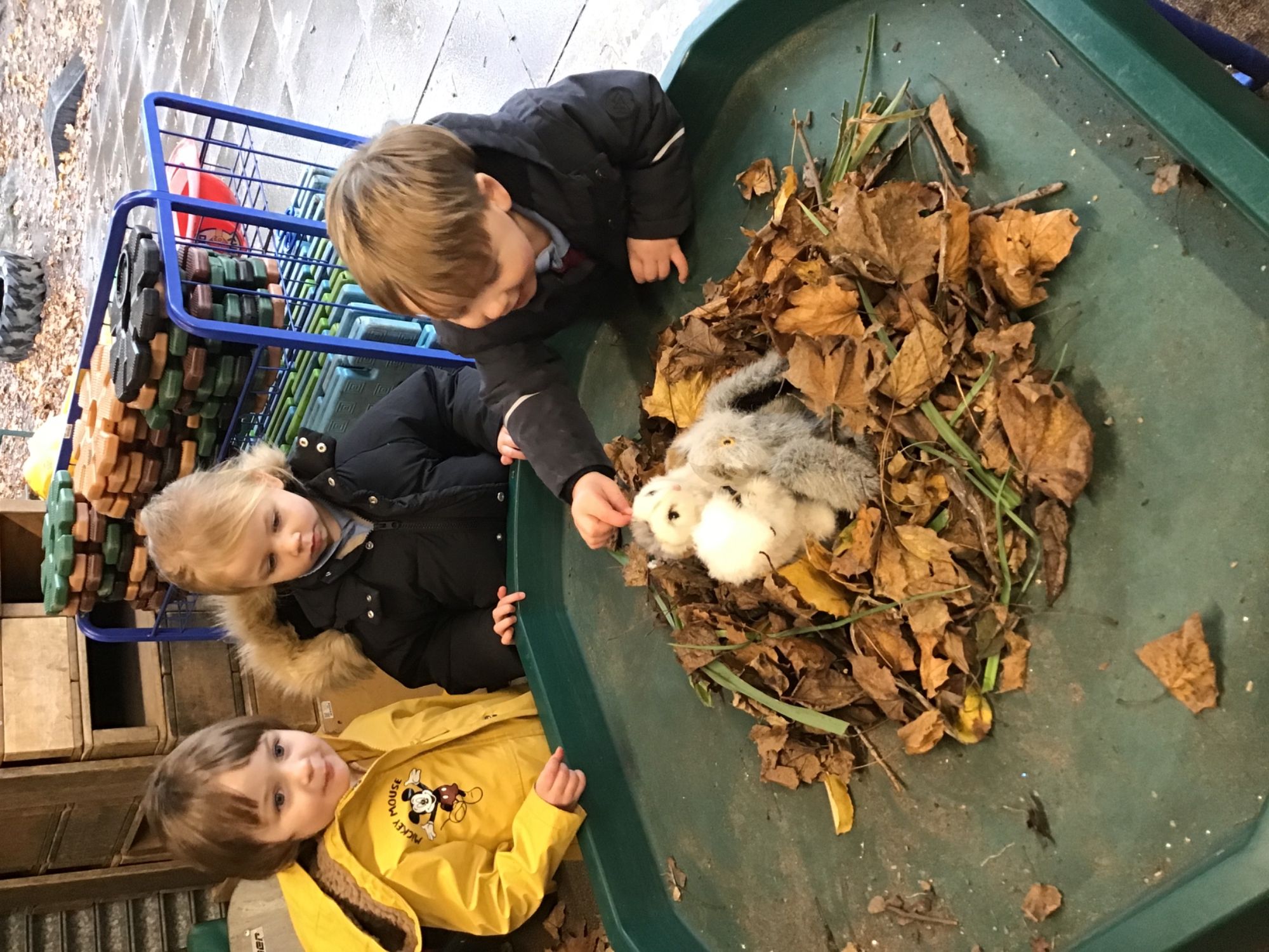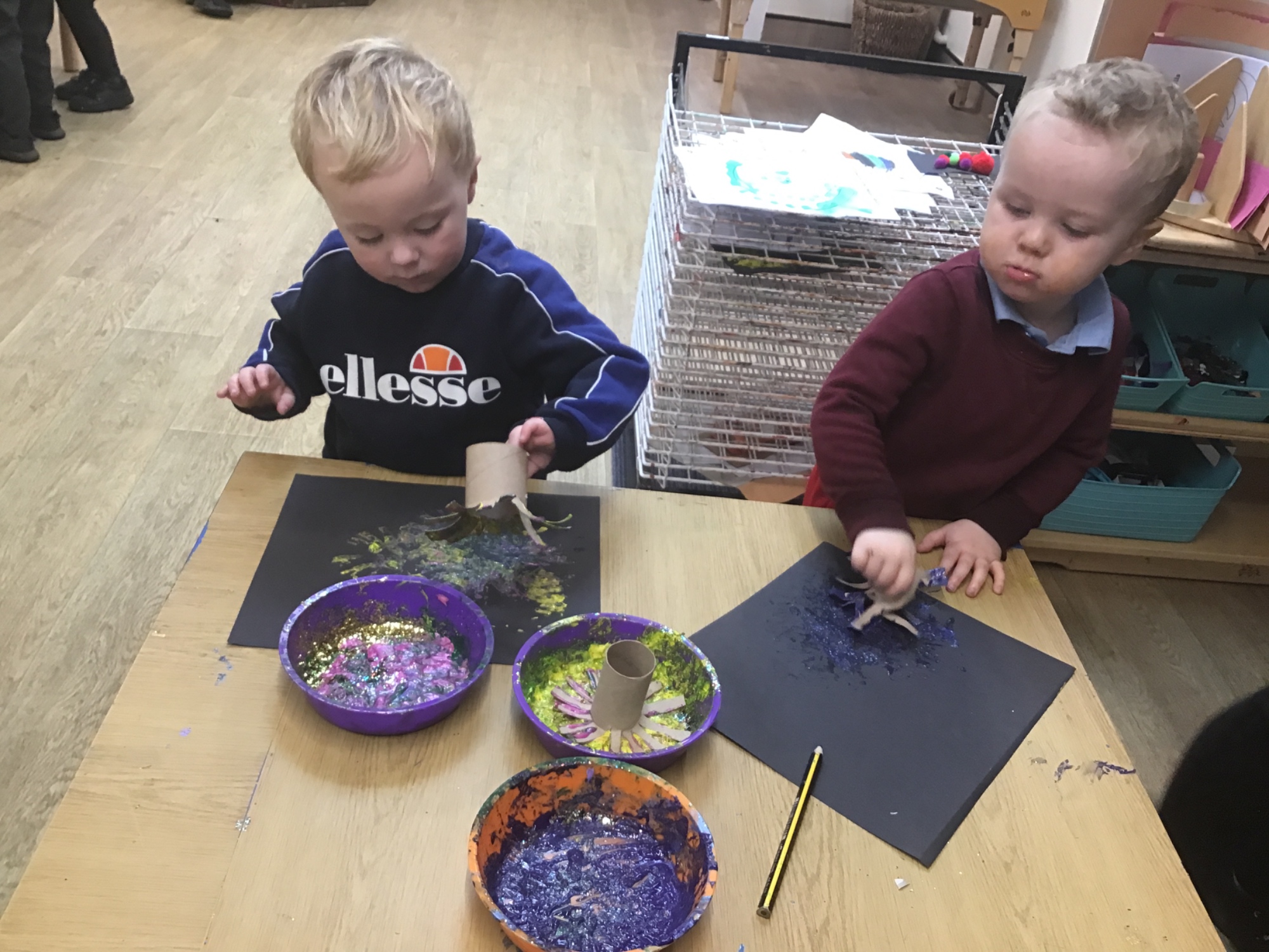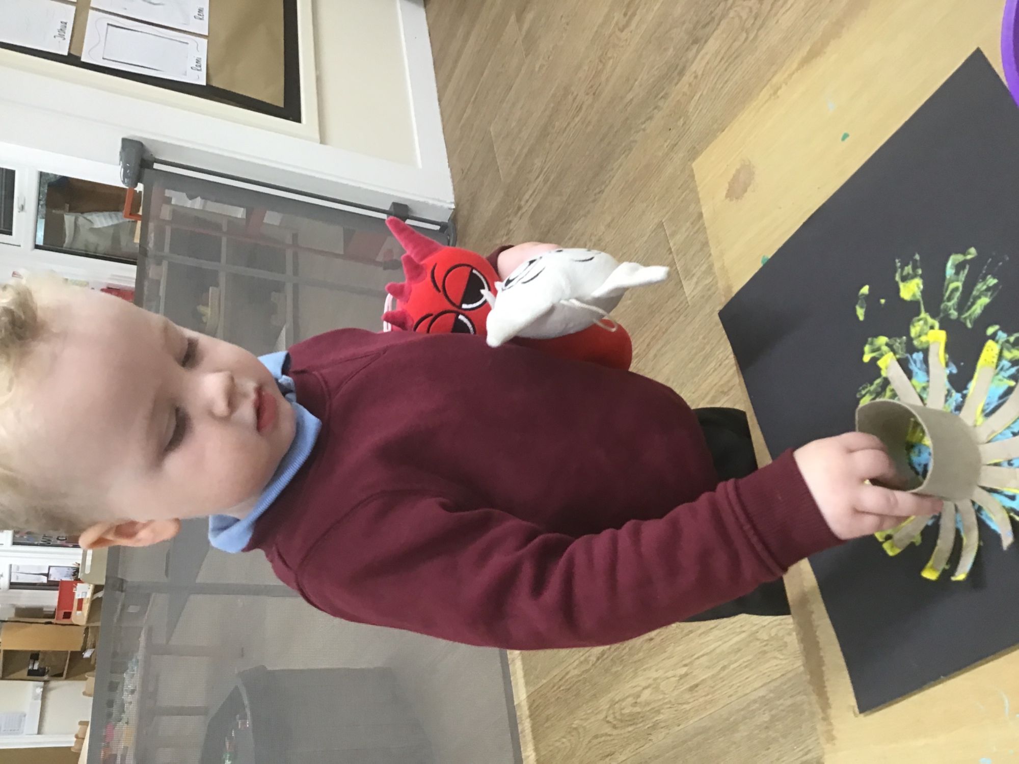 We enjoyed the story 'The dark,dark night' about Ned the Hedgehog looking for a home and he found a place to sleep in a big pile of leaves.We have painted, explored and used our imagination this week in Butterfly group.