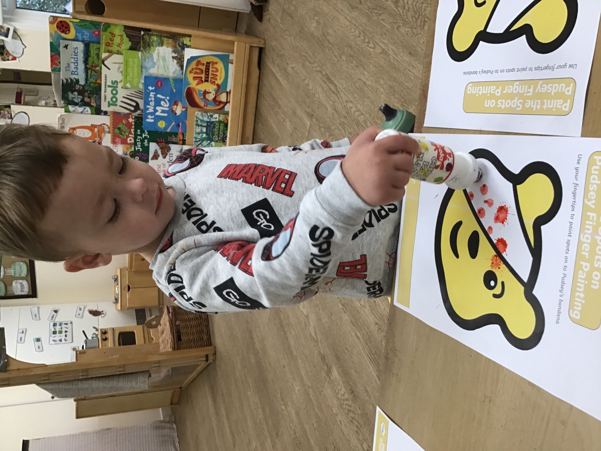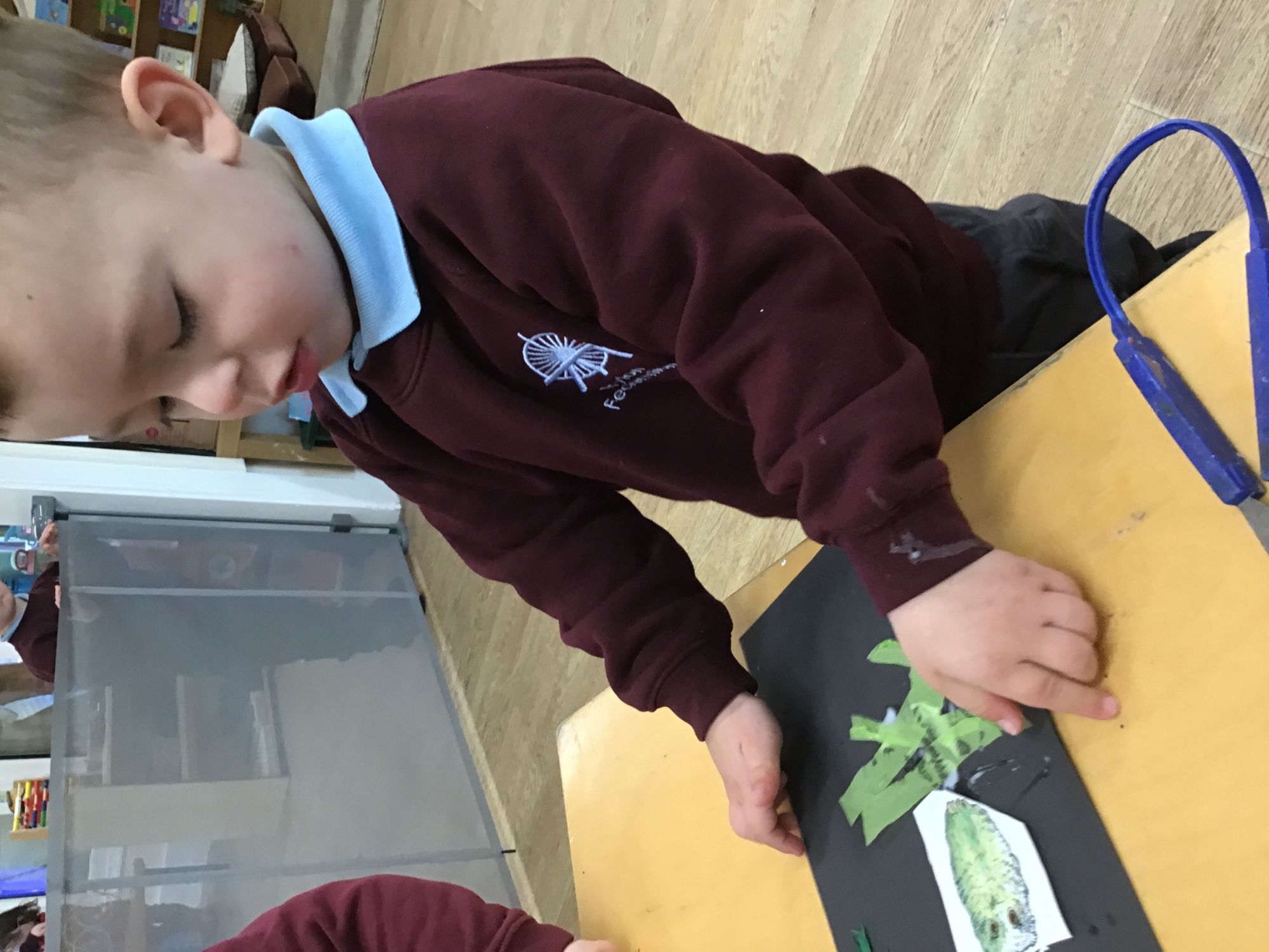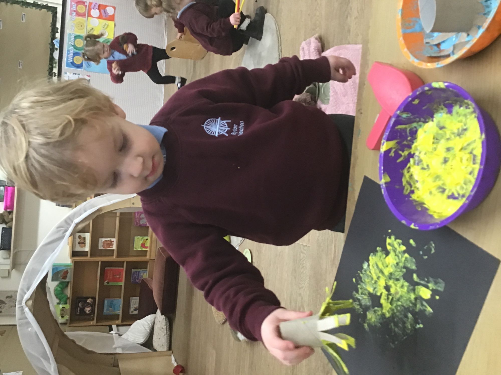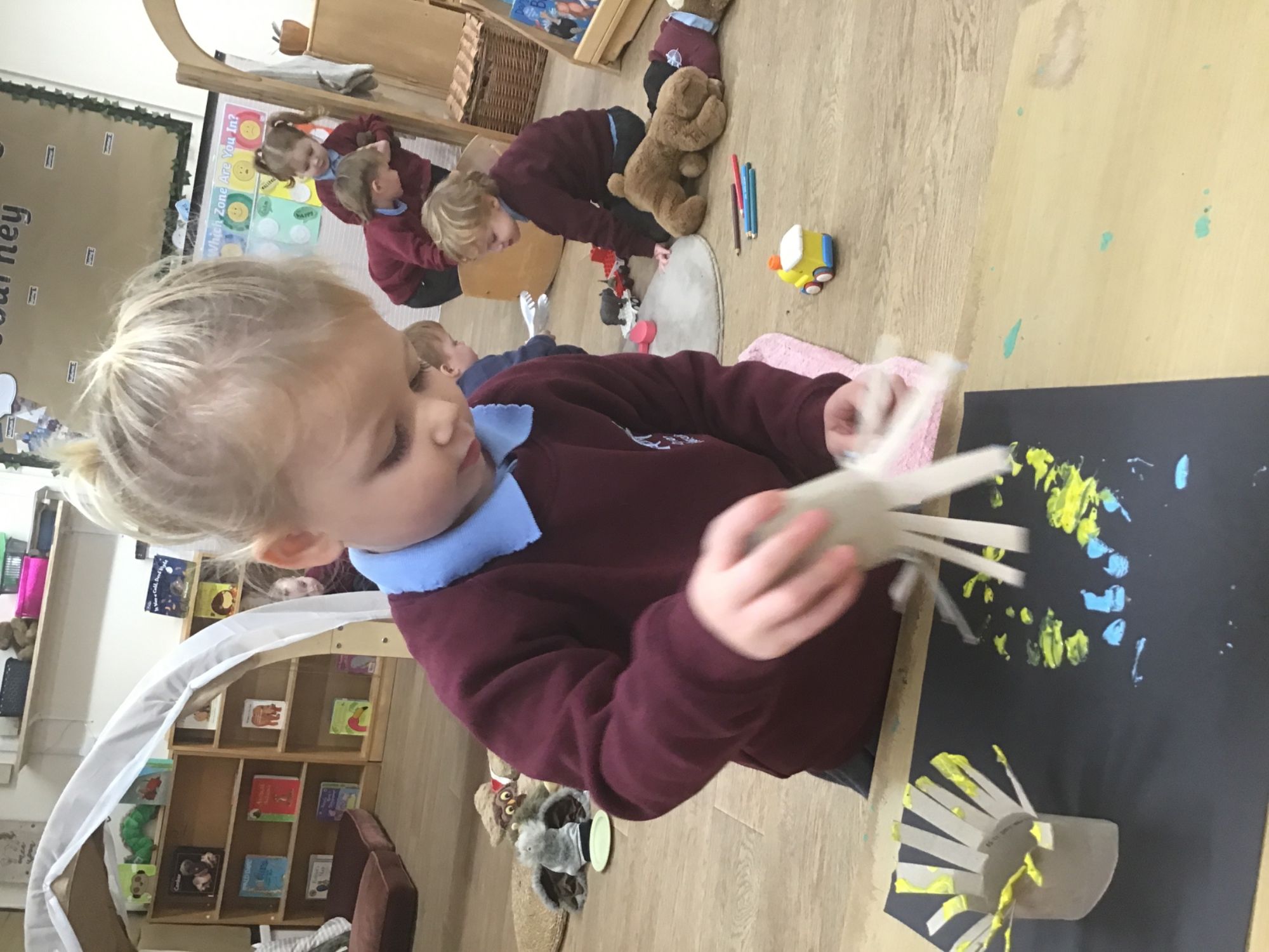 We enjoyed the story 'The dark,dark night' about Ned the Hedgehog looking for a home and he found a place to sleep in a big pile of leaves.We have painted, explored and used our imagination this week in Butterfly group.