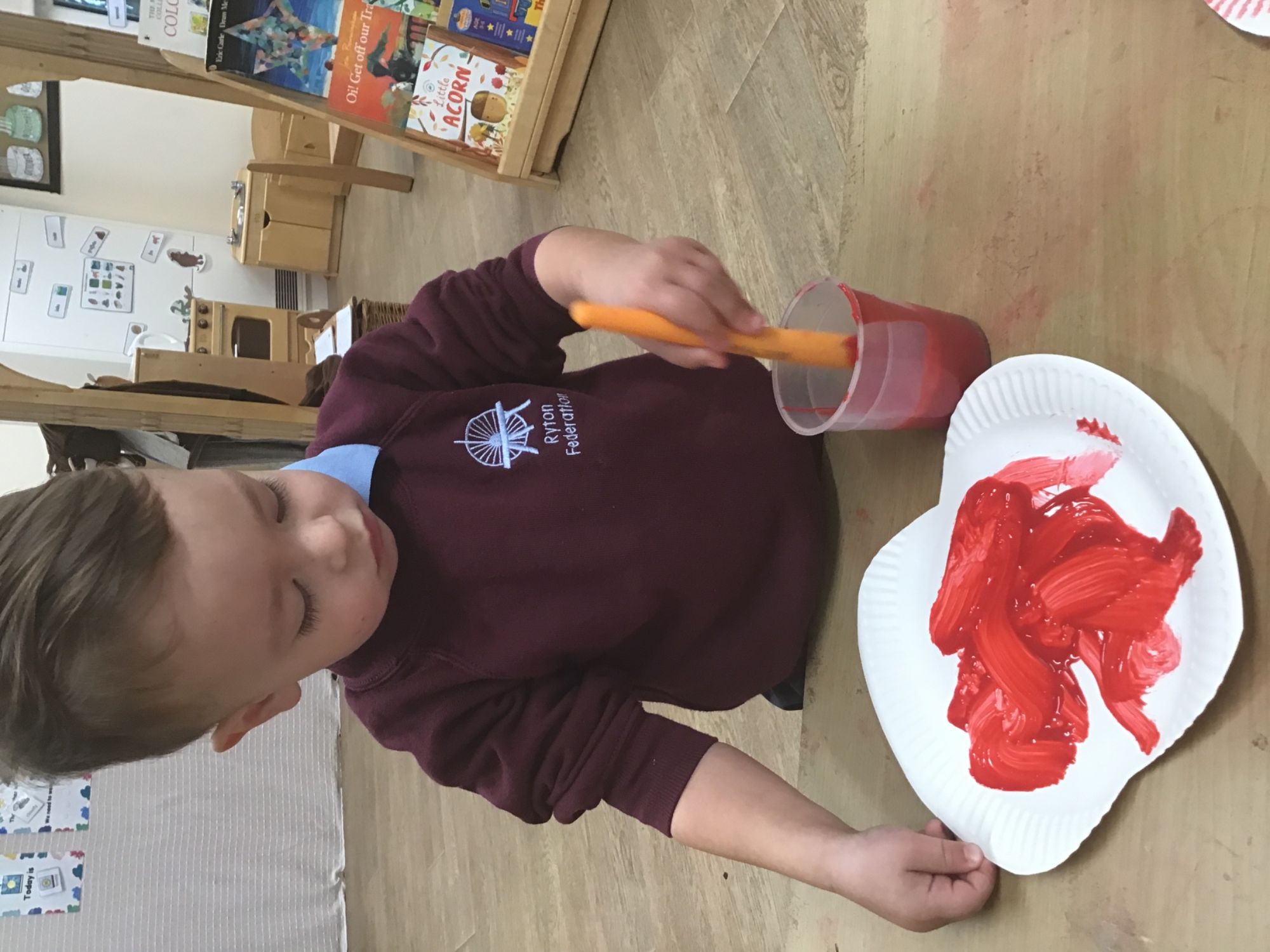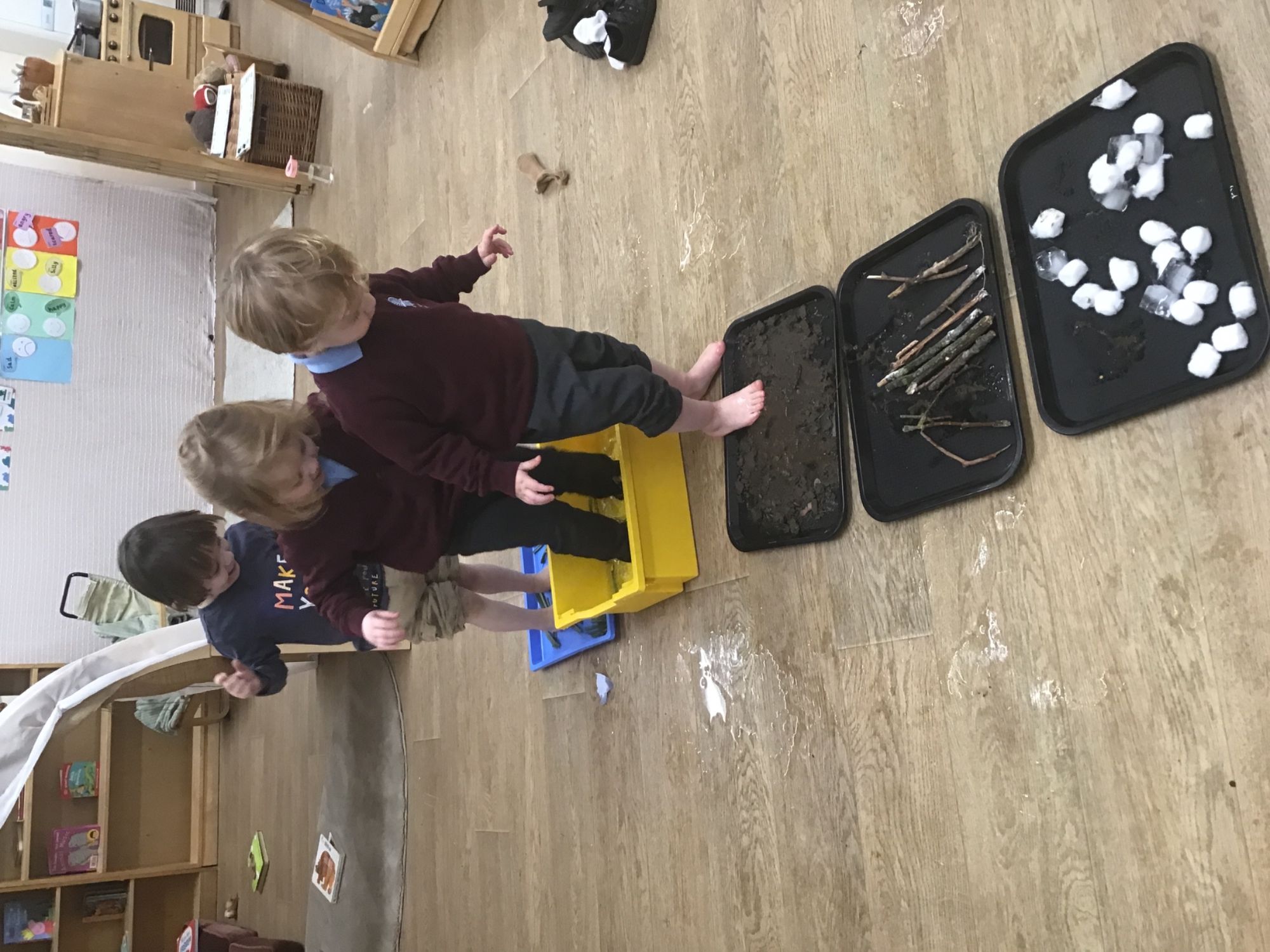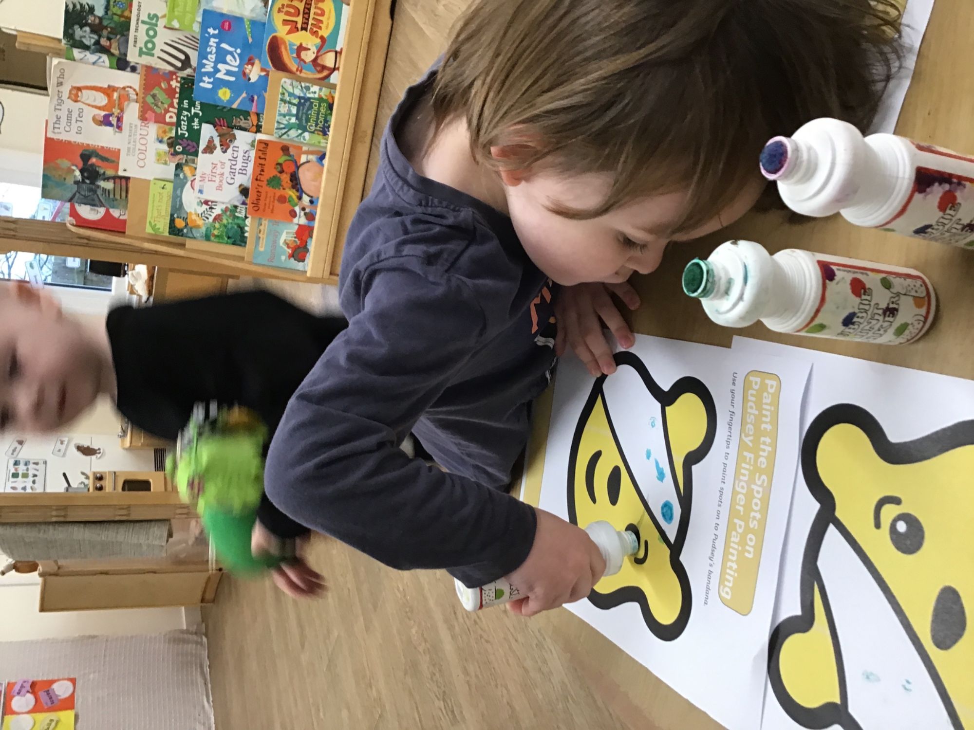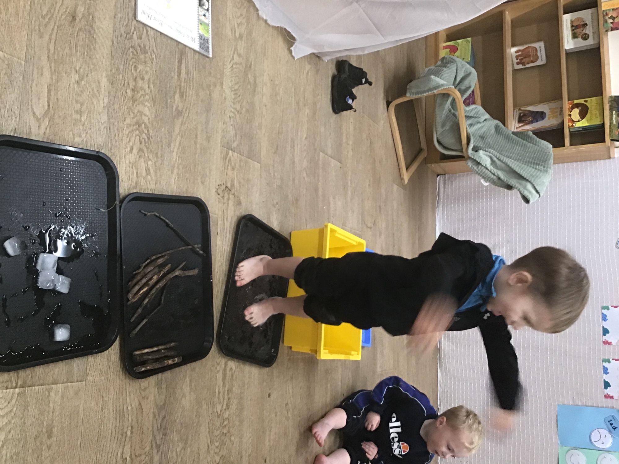 We enjoyed the story 'The dark,dark night' about Ned the Hedgehog looking for a home and he found a place to sleep in a big pile of leaves.We have painted, explored and used our imagination this week in Butterfly group.