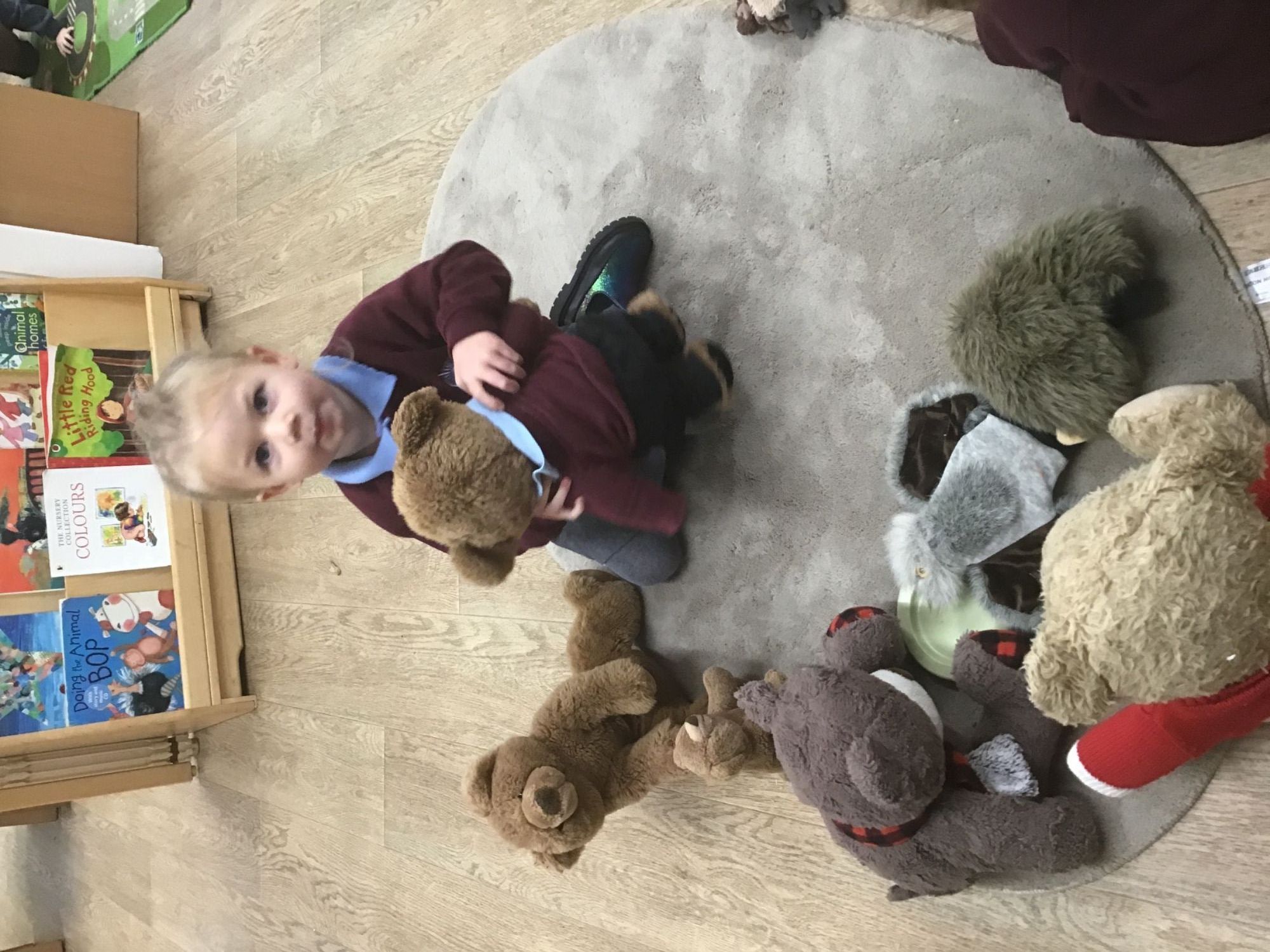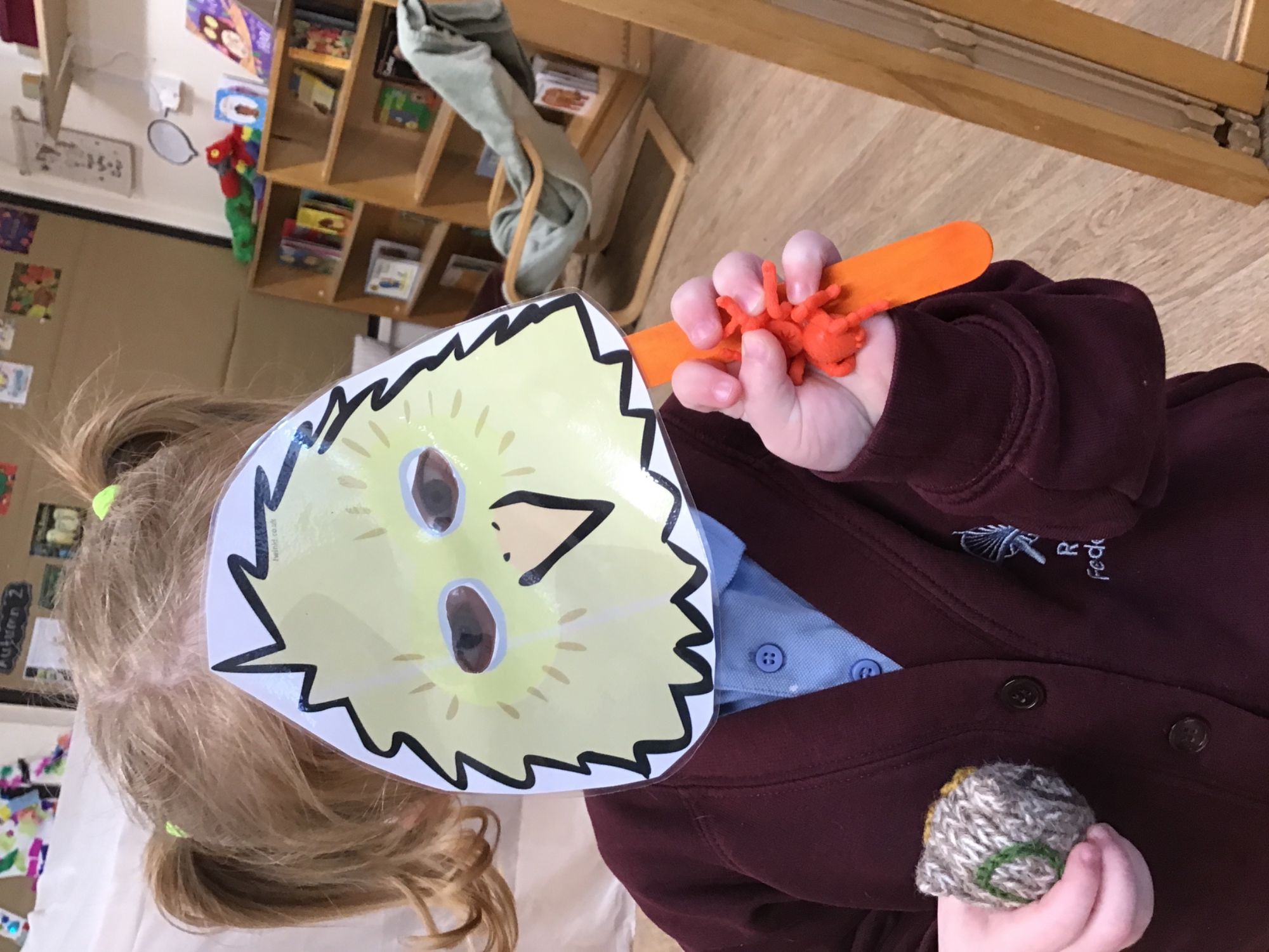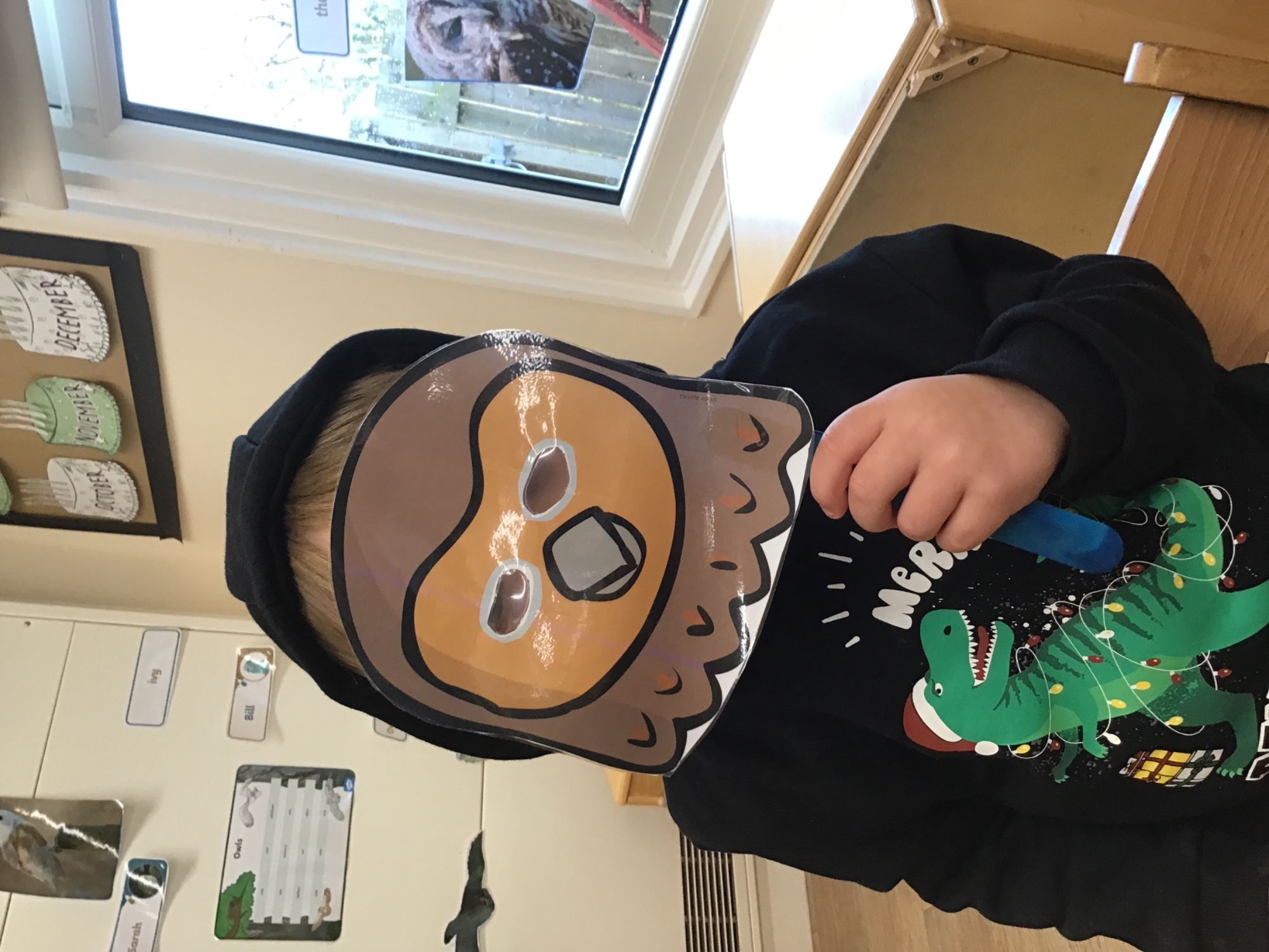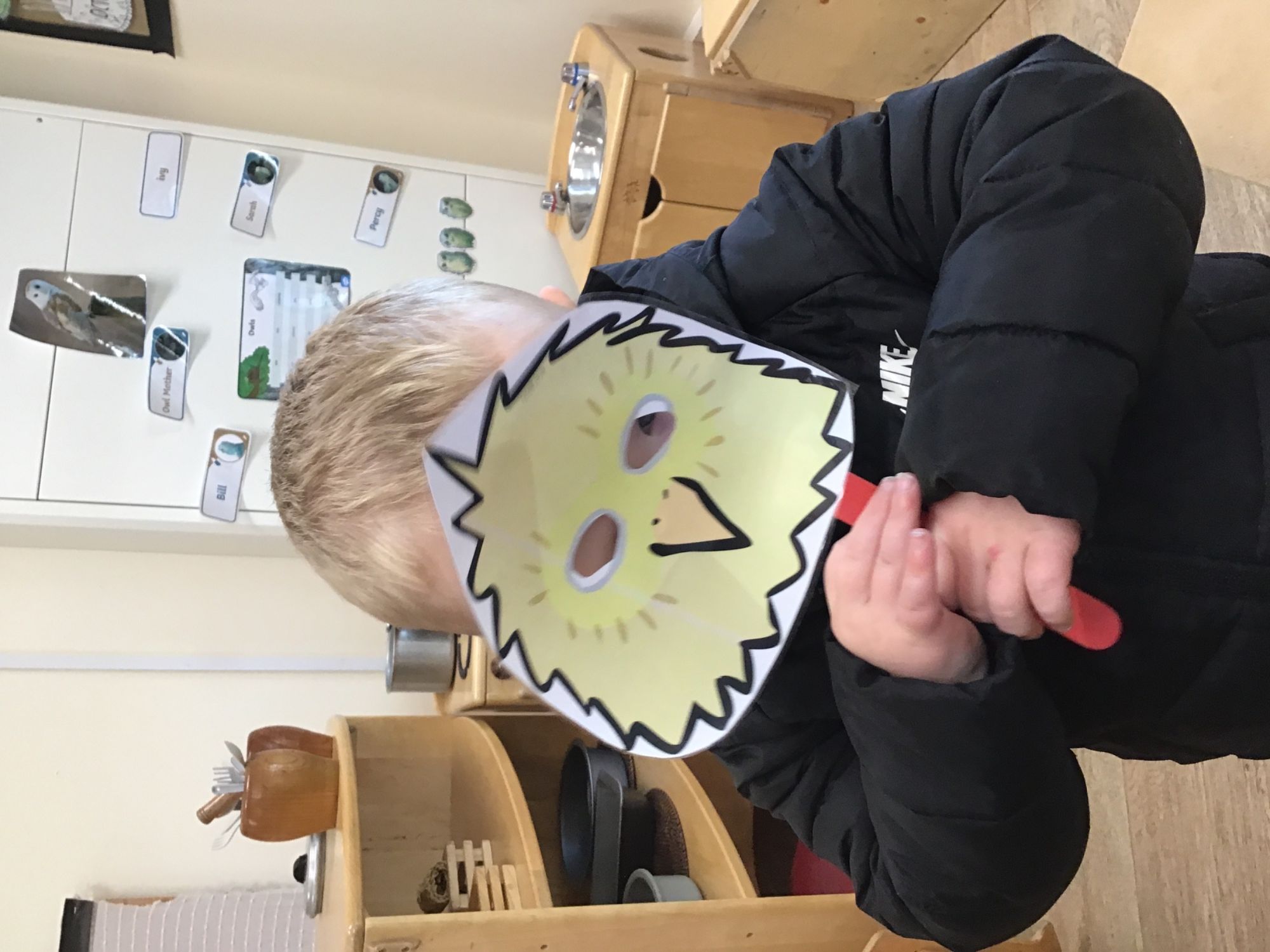 We have been on a Bear Hunt. We made Bear faces then we walked through swishy grass, squelchy mud, a cold river, a snowstorm, a dark forest and found lots of Bears on Nursery hill! What an adventure!