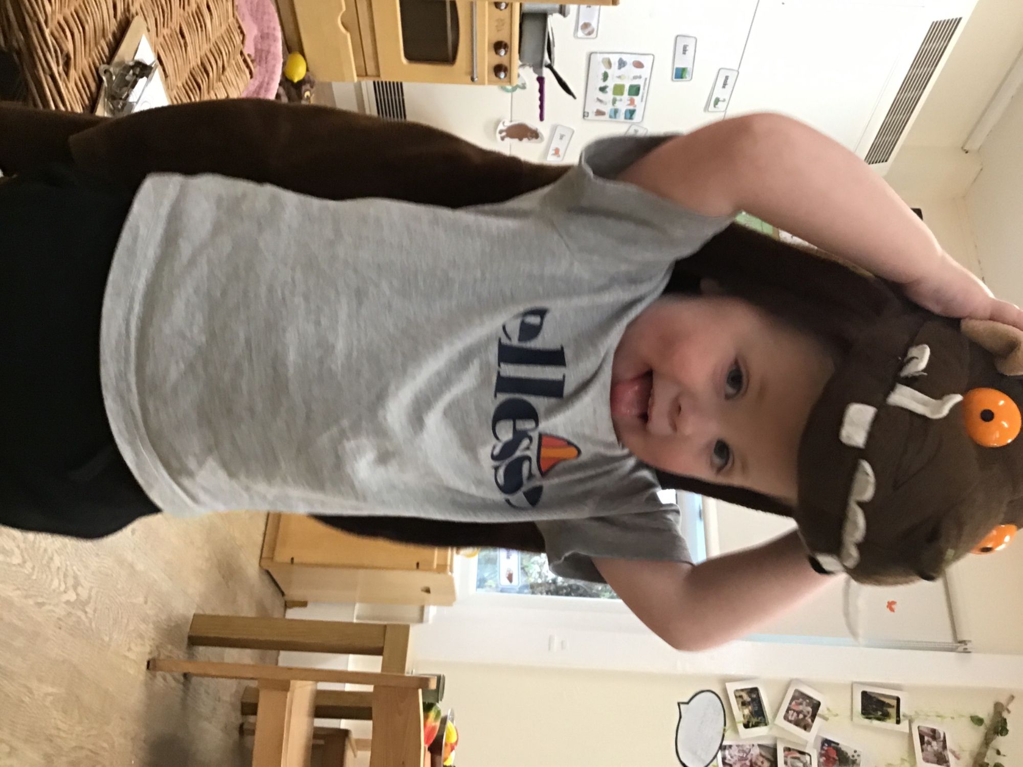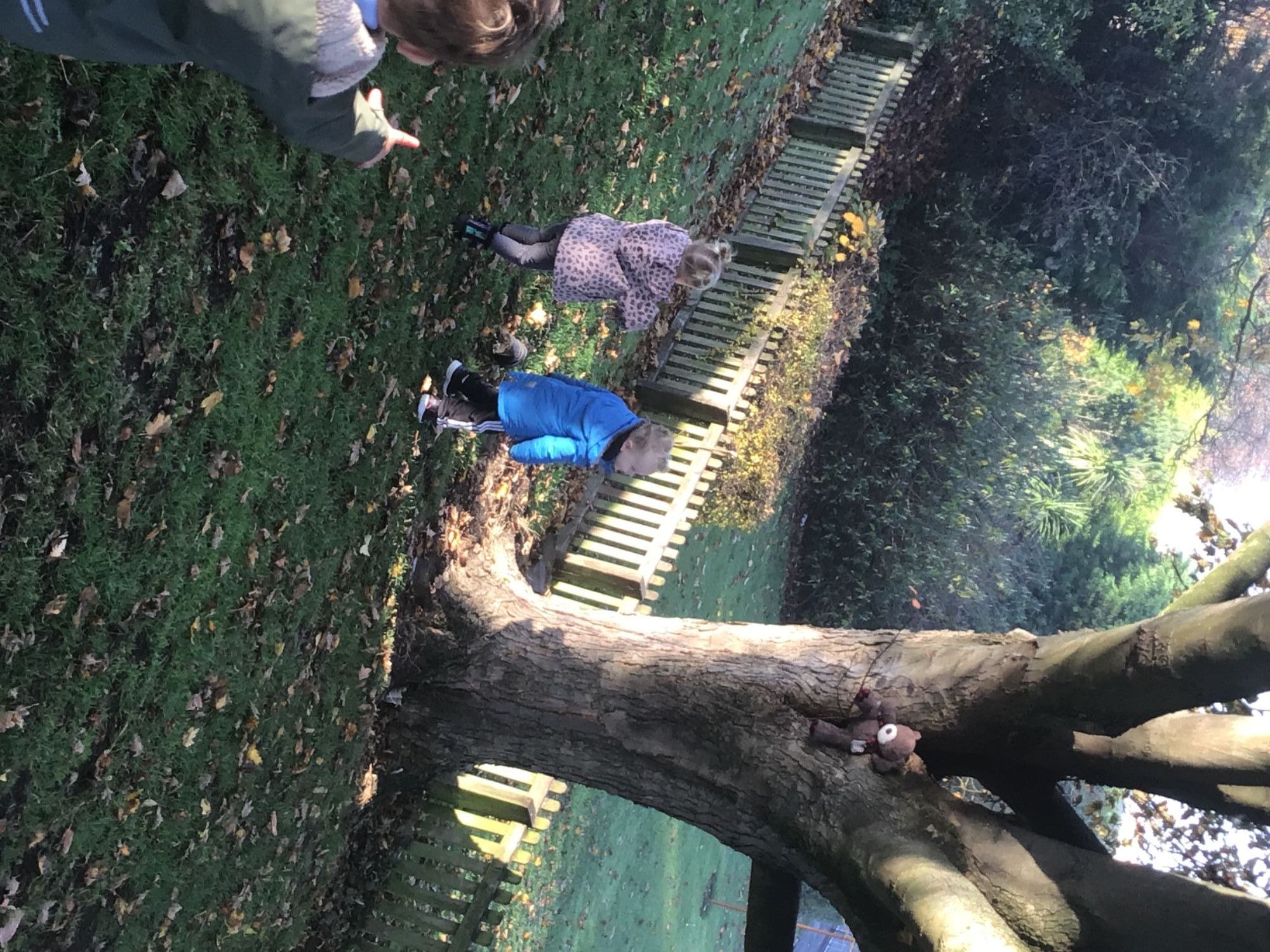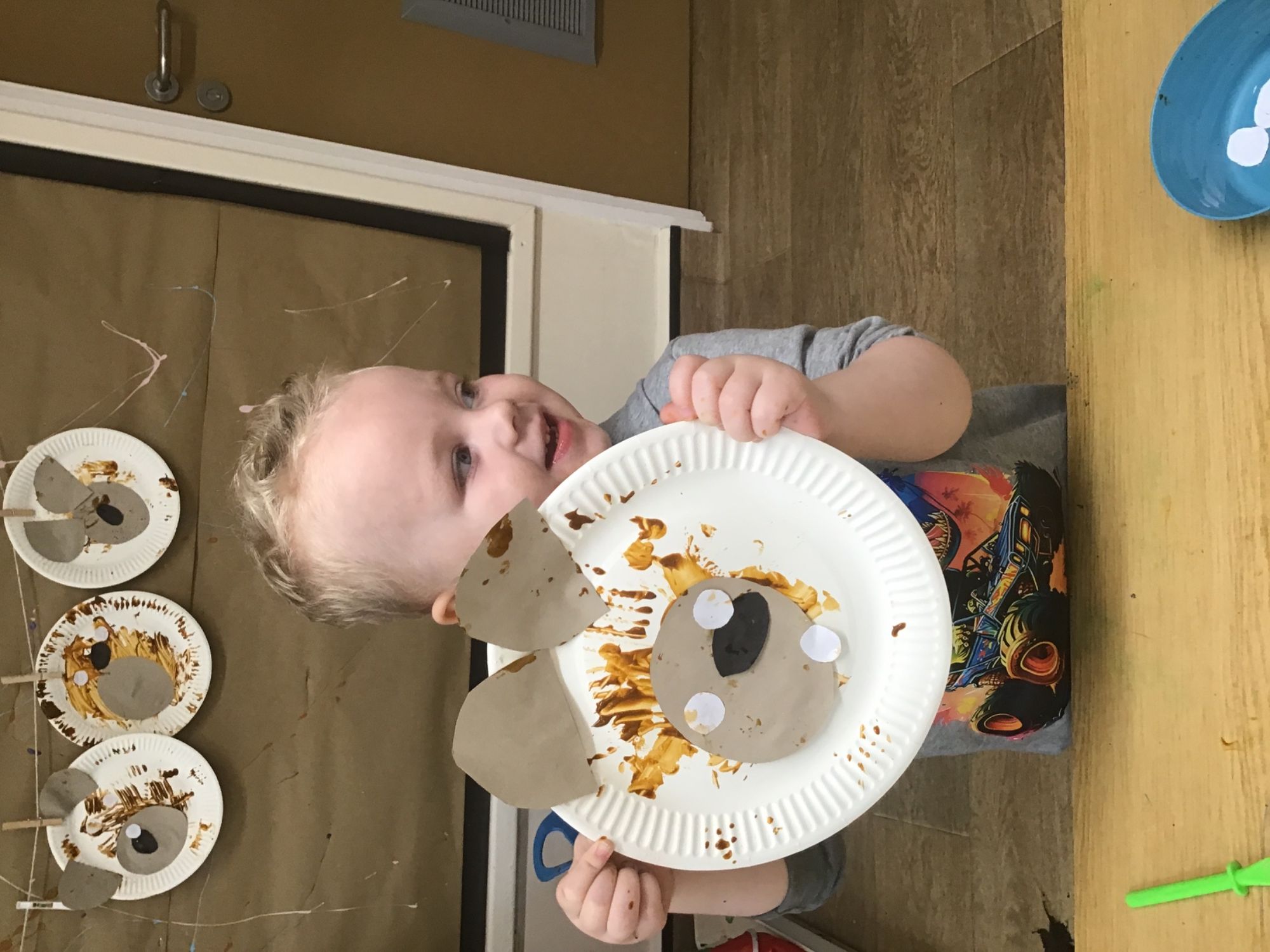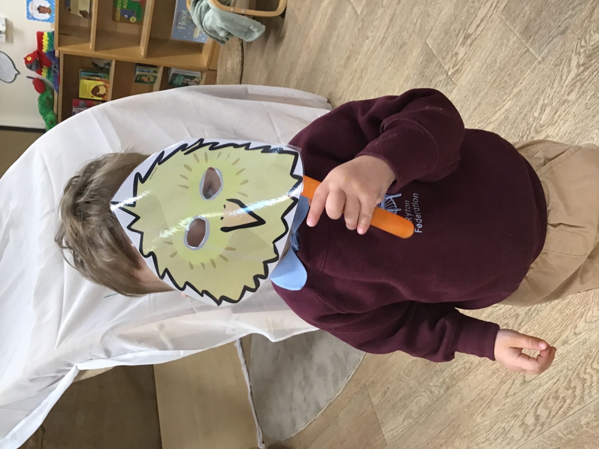 We have been on a Bear Hunt. We made Bear faces then we walked through swishy grass, squelchy mud, a cold river, a snowstorm, a dark forest and found lots of Bears on Nursery hill! What an adventure!
