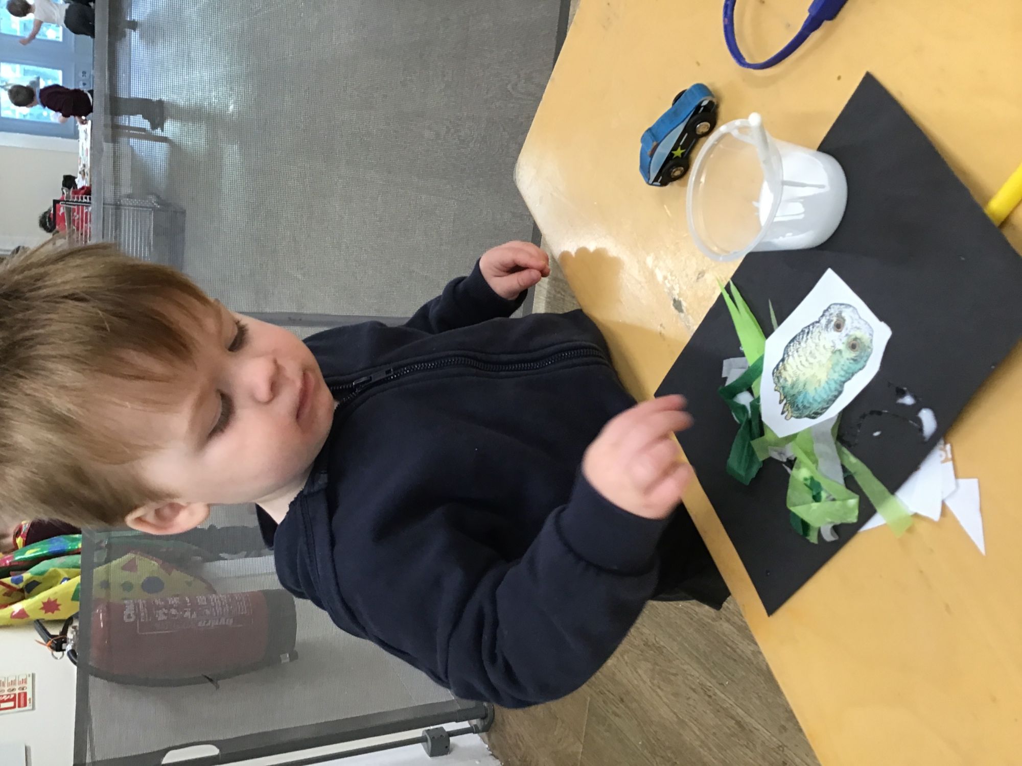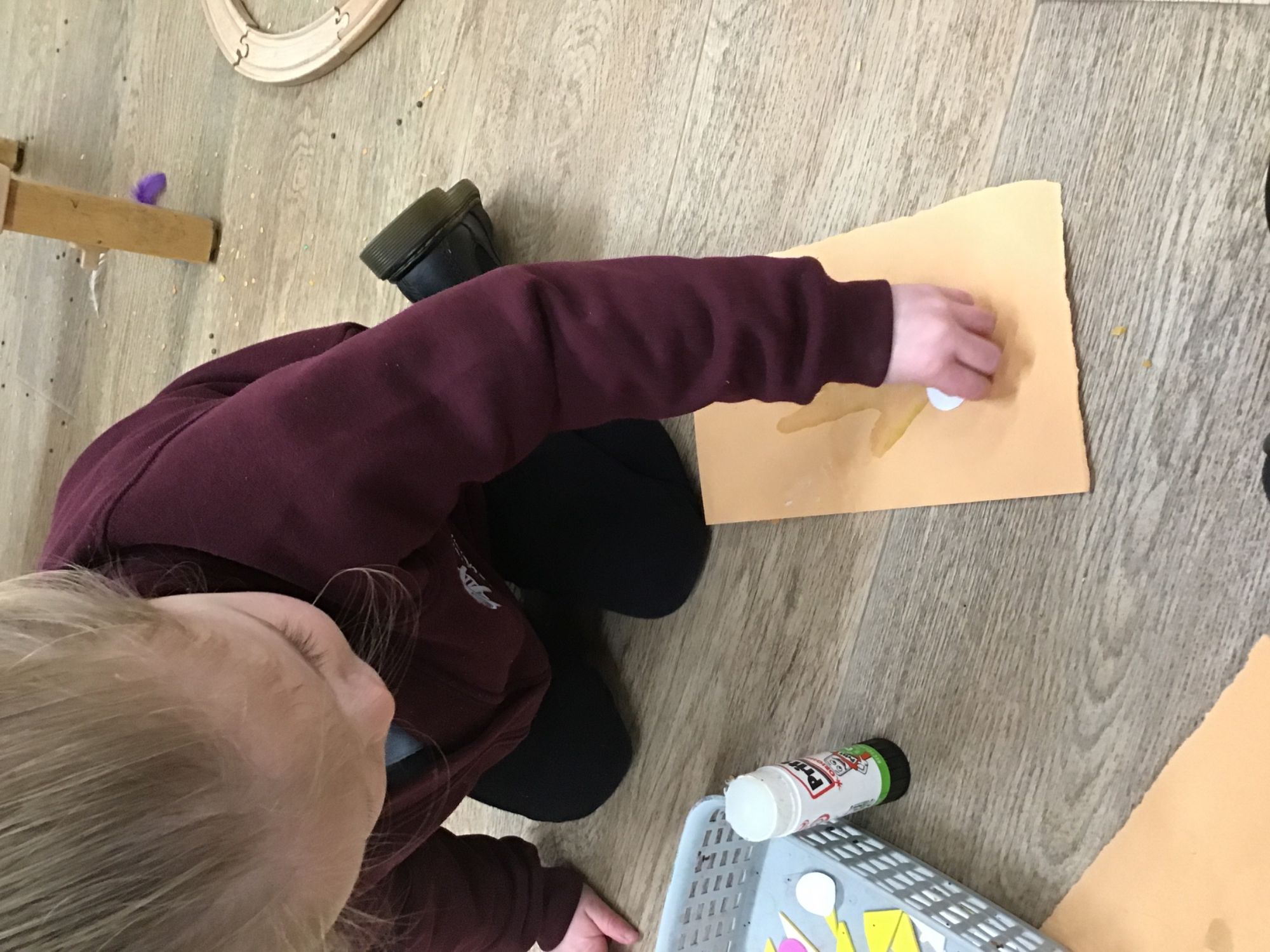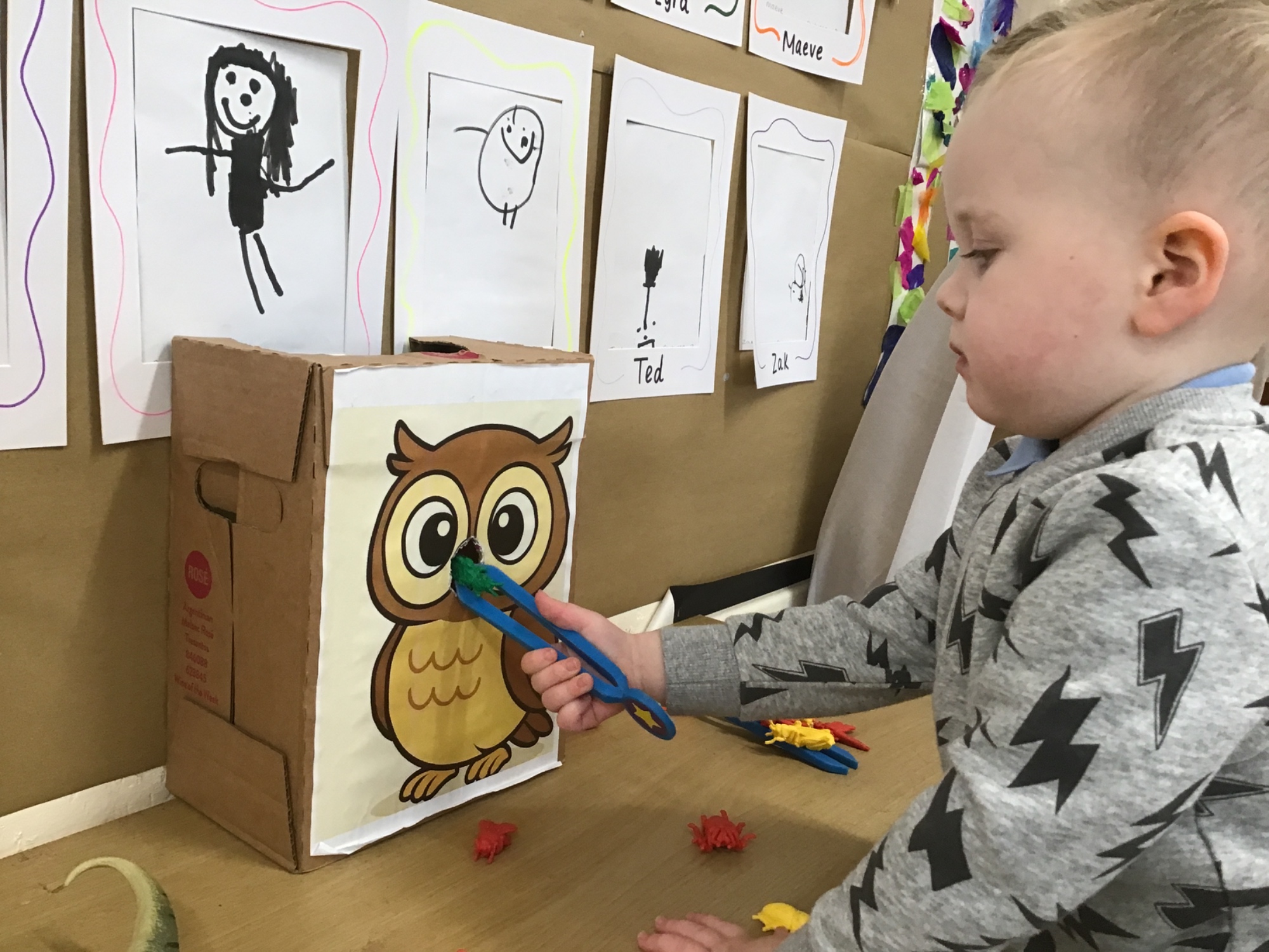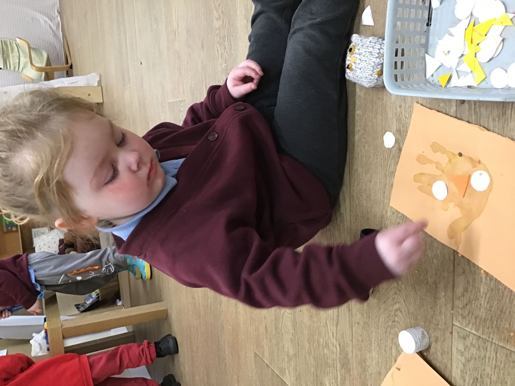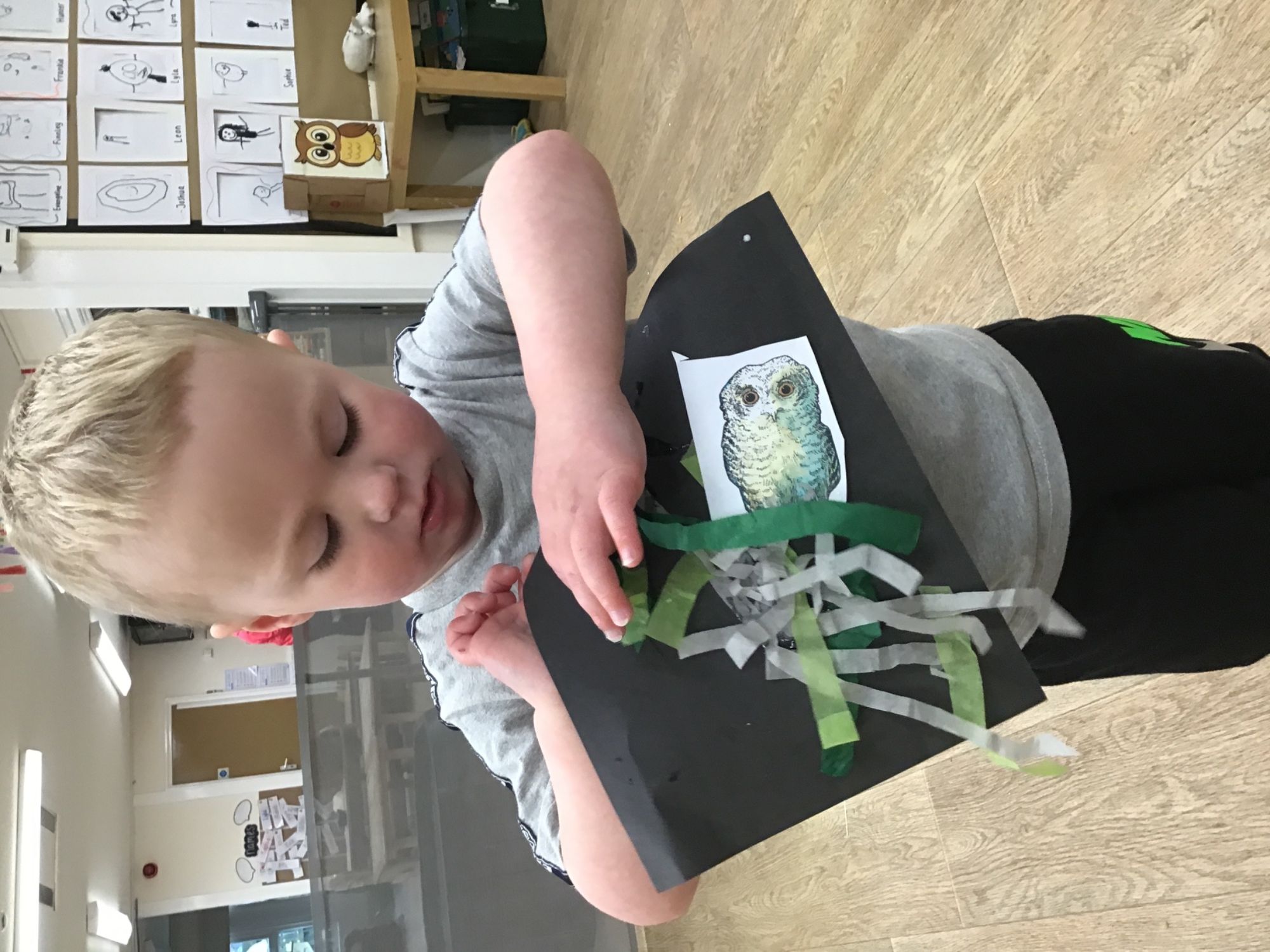 We have been developing our fine motor skills by making a nest for an owl. We used glue to stick strips of paper onto our paper, then practised using scissors to cut out an owl! We shared lots of stories about Owls, their habitat and what they like to eat. We even made chocolate nests on Friday.