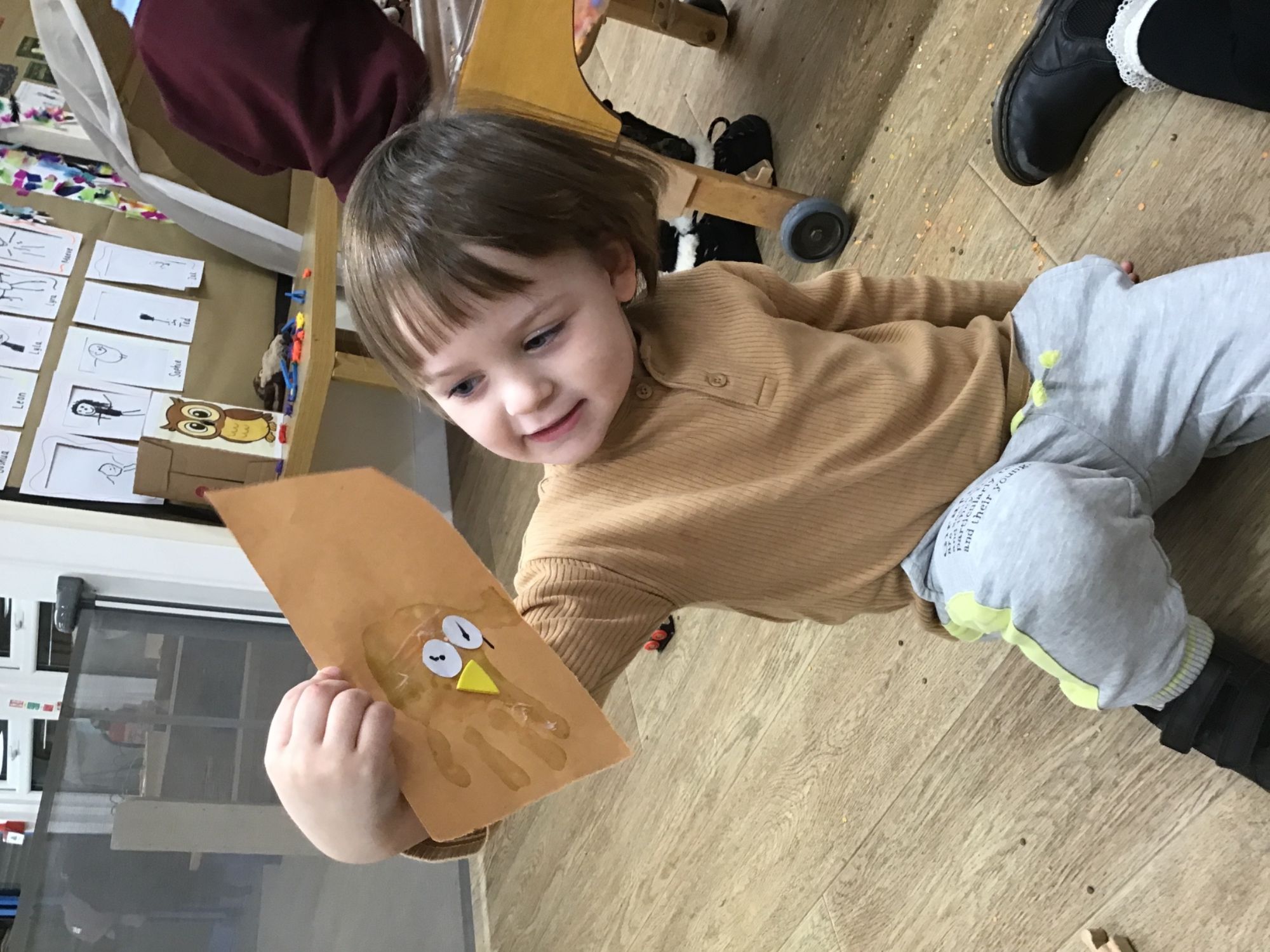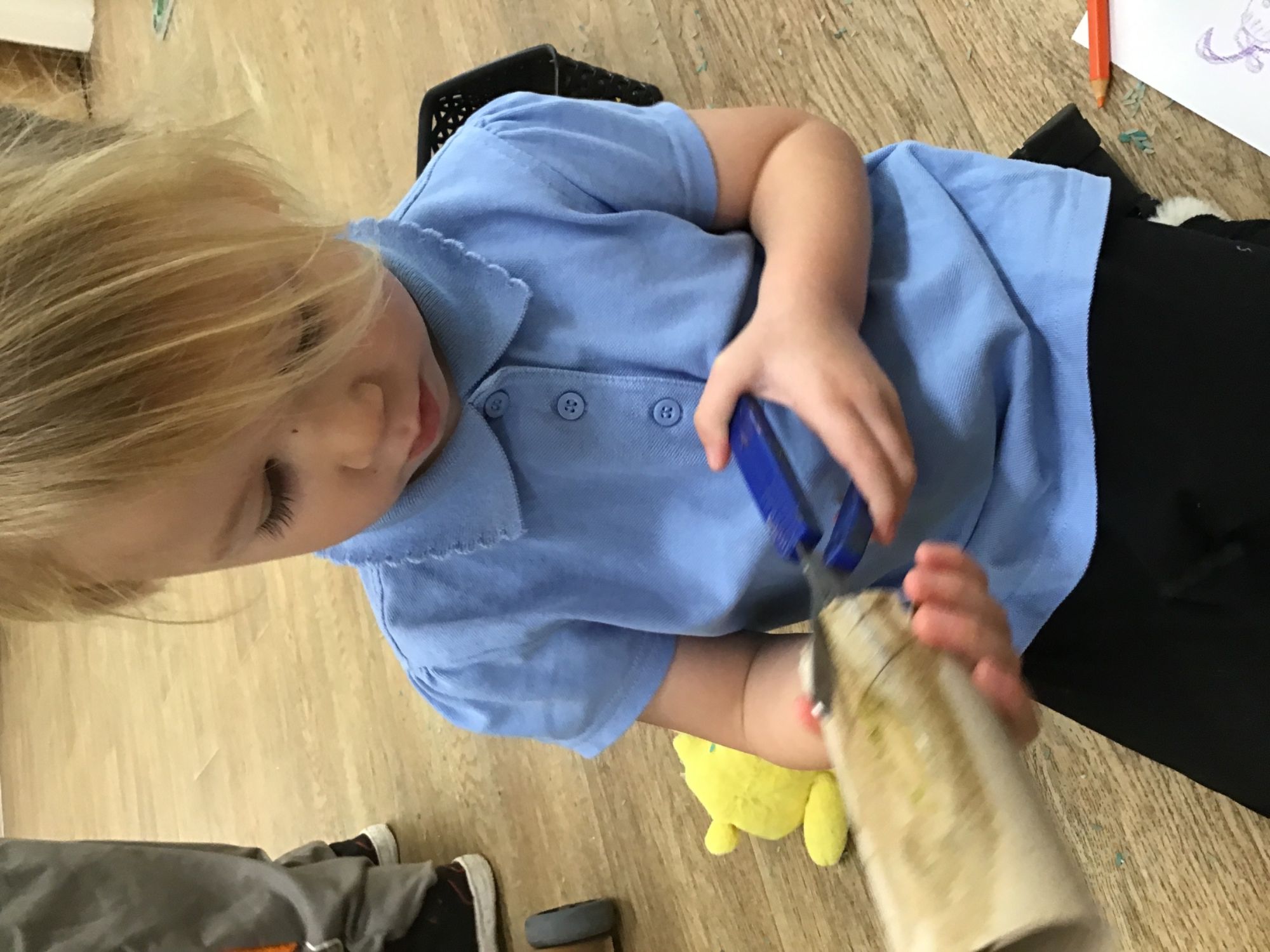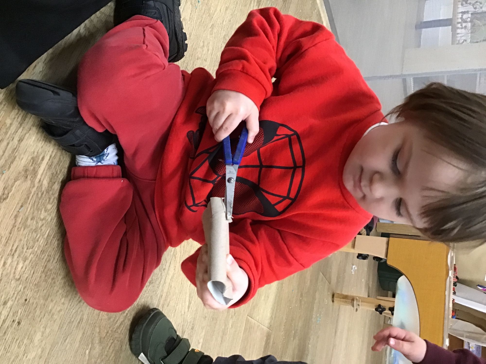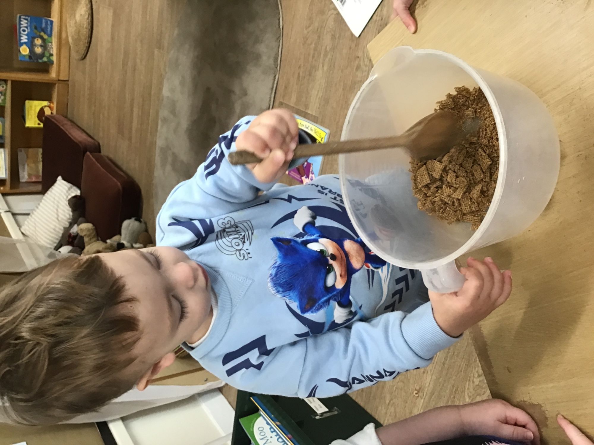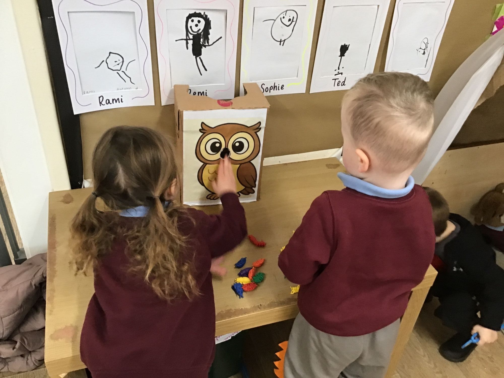 We have been developing our fine motor skills by making a nest for an owl. We used glue to stick strips of paper onto our paper, then practised using scissors to cut out an owl! We shared lots of stories about Owls, their habitat and what they like to eat. We even made chocolate nests on Friday.