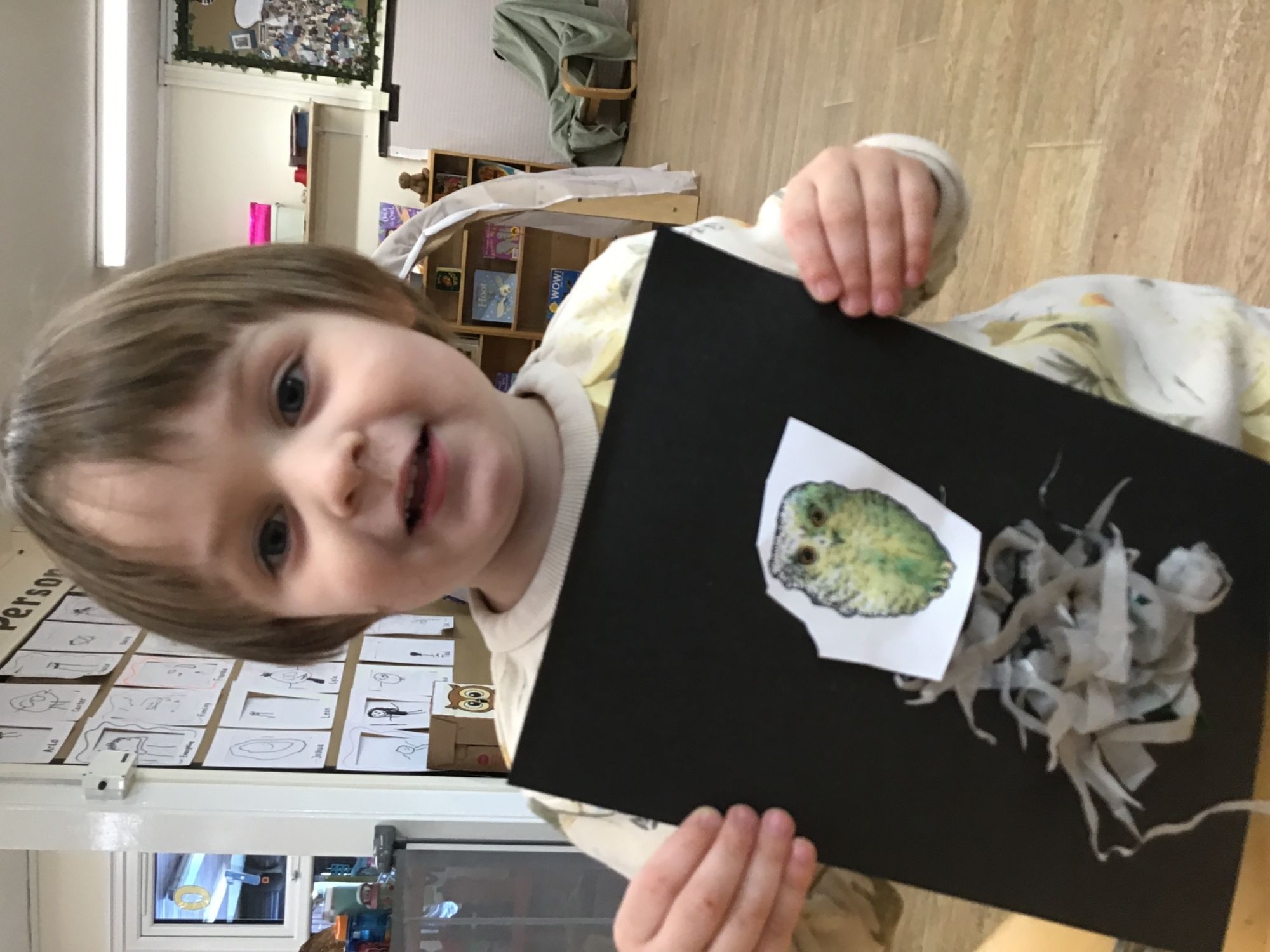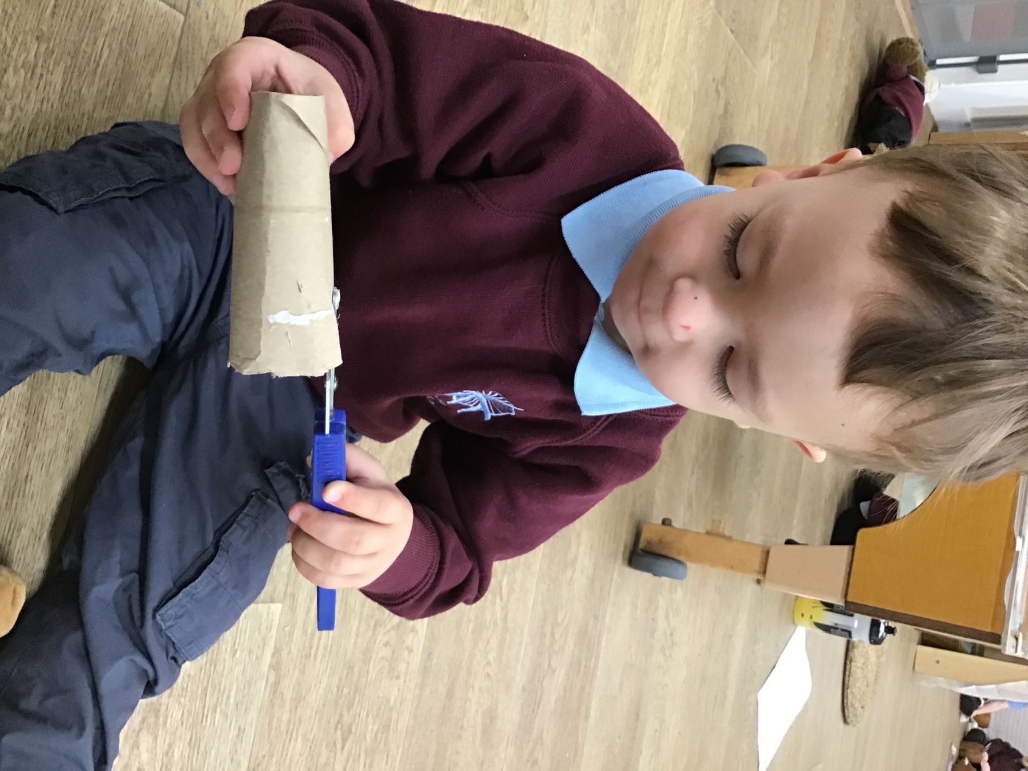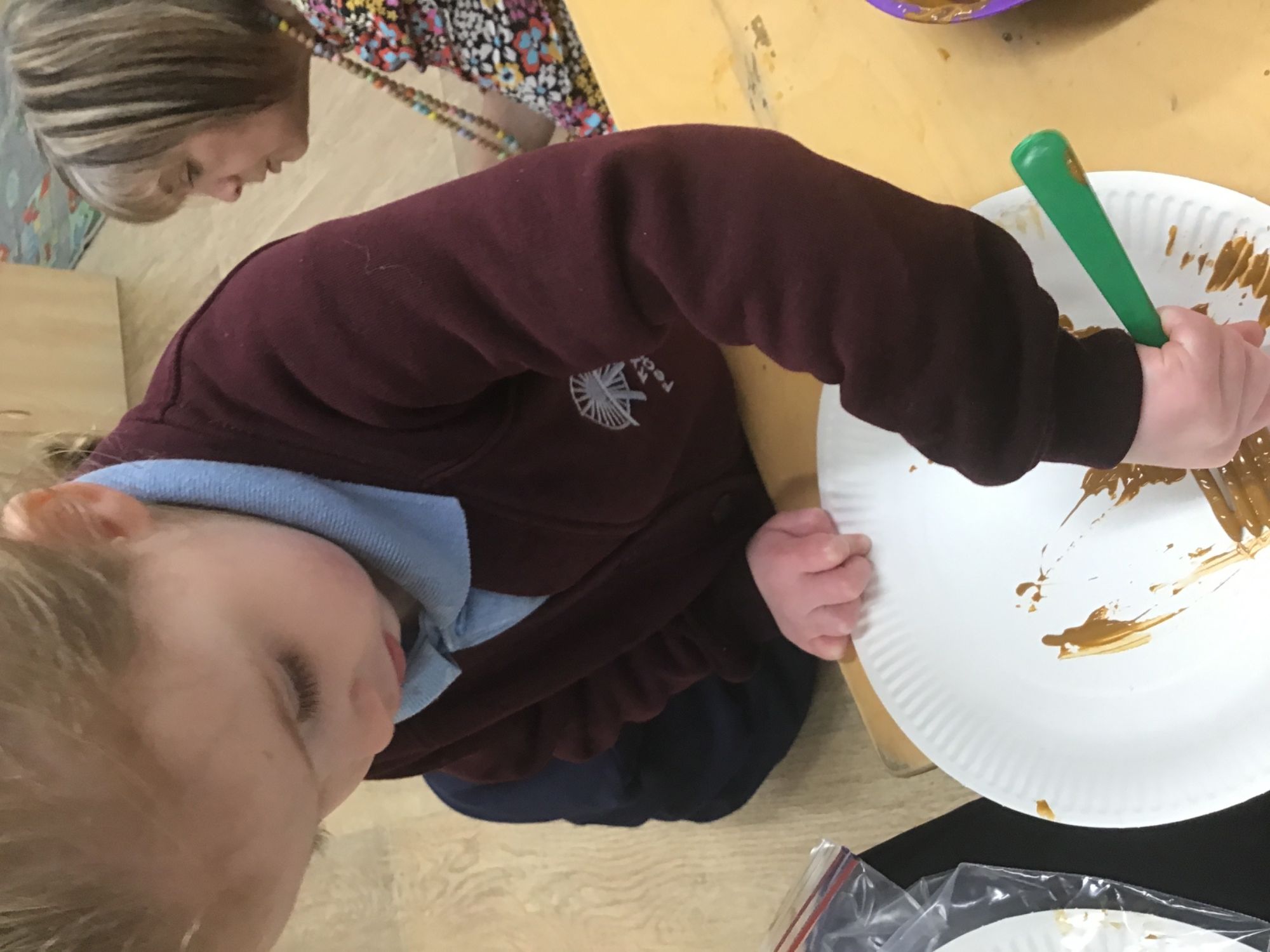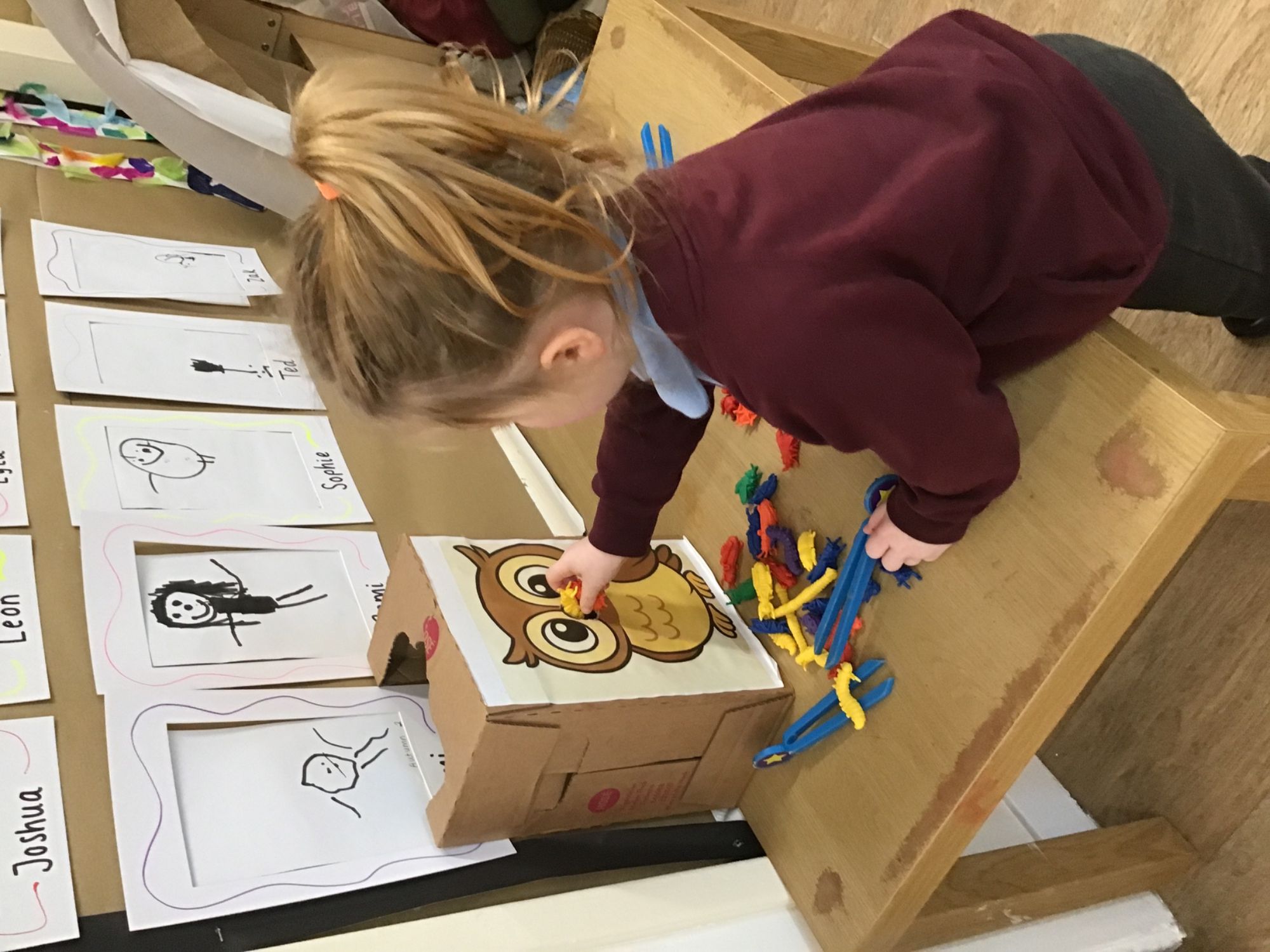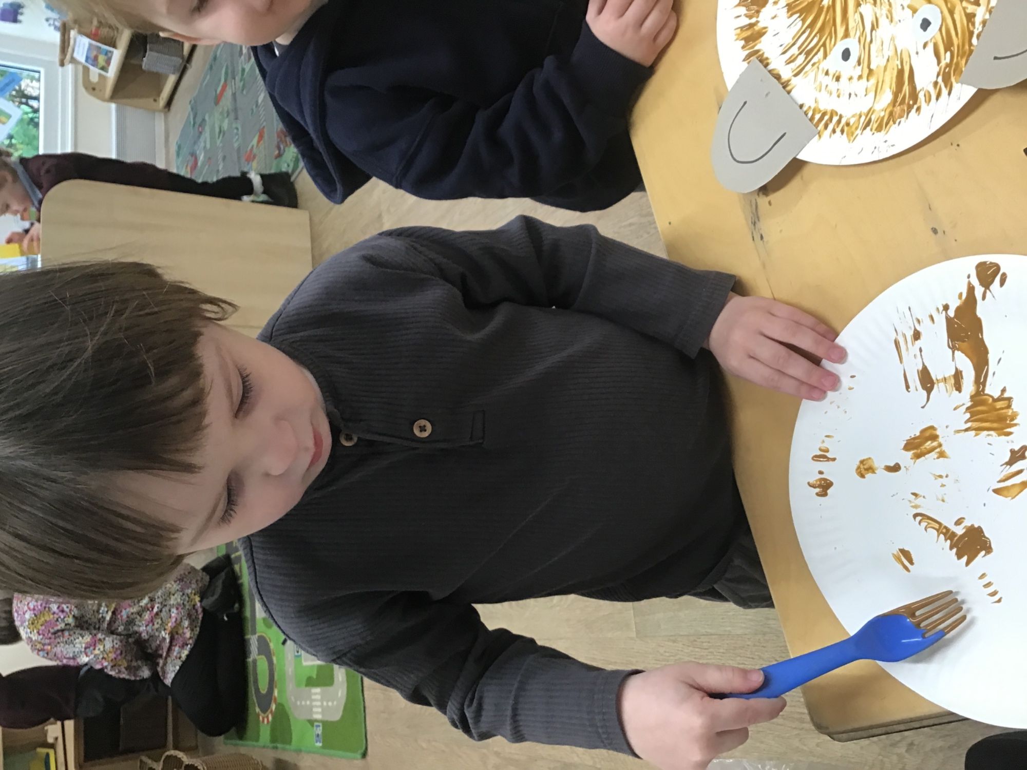 We have been developing our fine motor skills by making a nest for an owl. We used glue to stick strips of paper onto our paper, then practised using scissors to cut out an owl! We shared lots of stories about Owls, their habitat and what they like to eat. We even made chocolate nests on Friday.