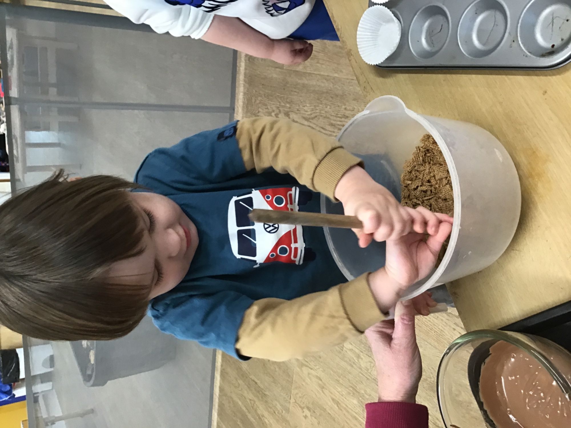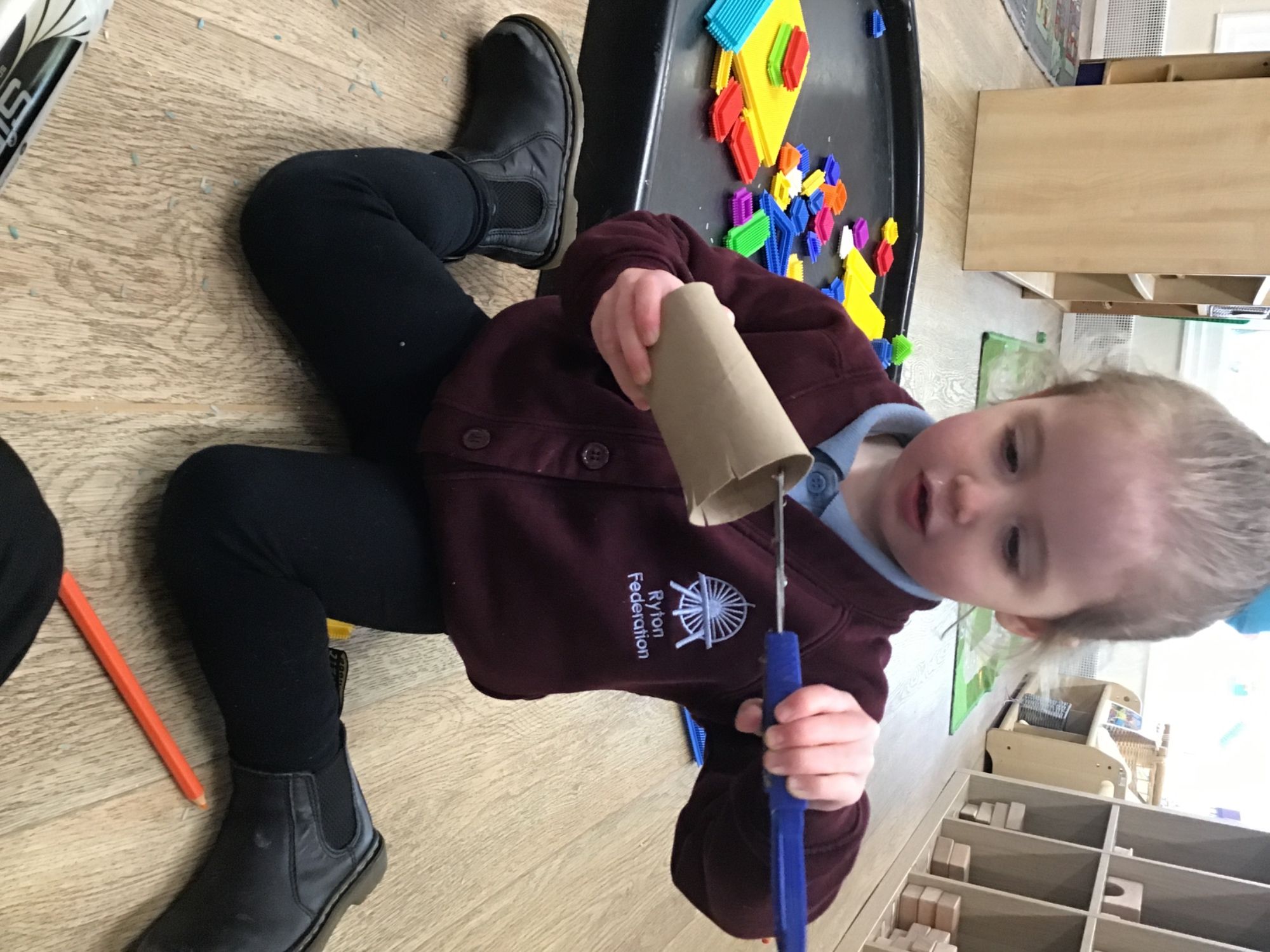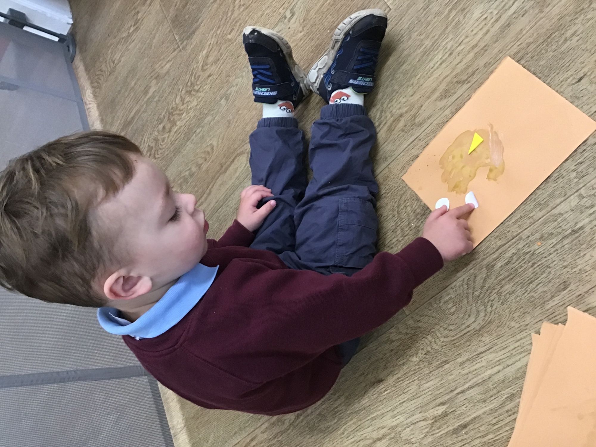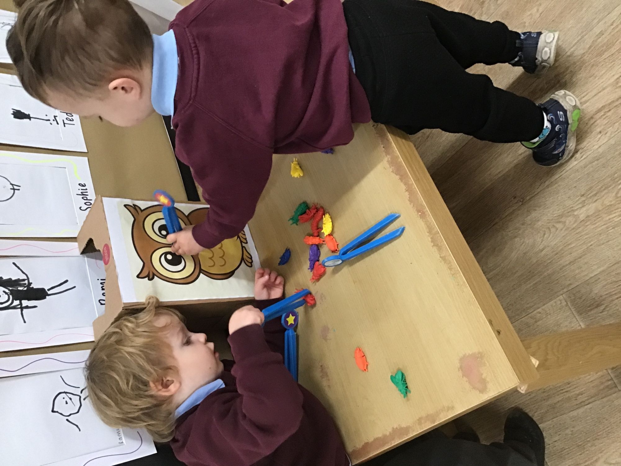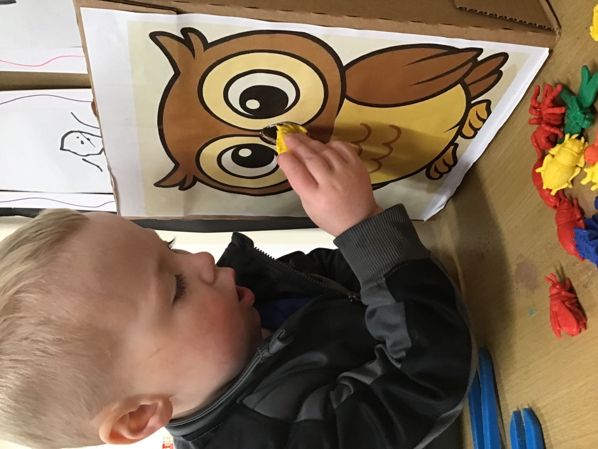 We have been developing our fine motor skills by making a nest for an owl. We used glue to stick strips of paper onto our paper, then practised using scissors to cut out an owl! We shared lots of stories about Owls, their habitat and what they like to eat. We even made chocolate nests on Friday.