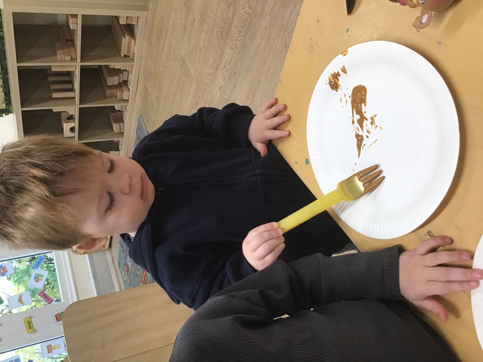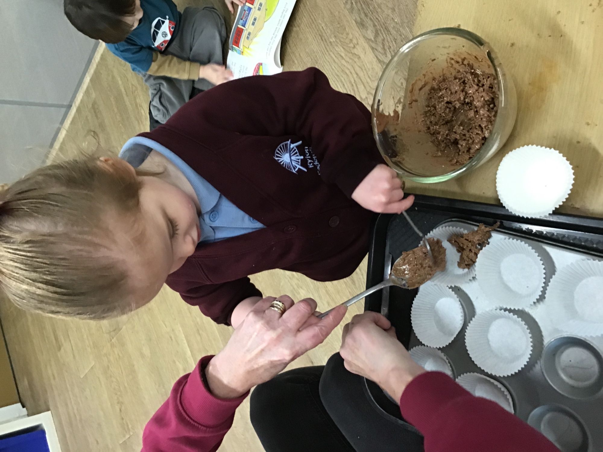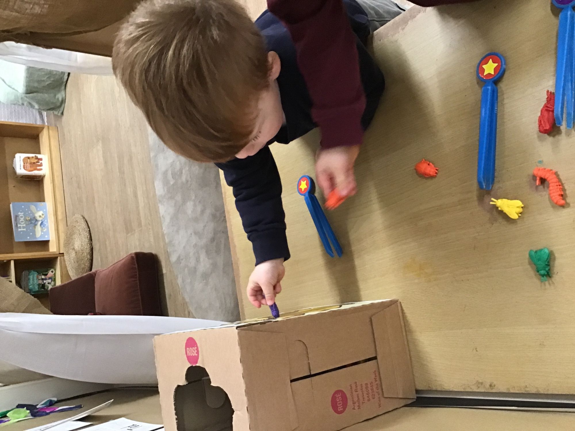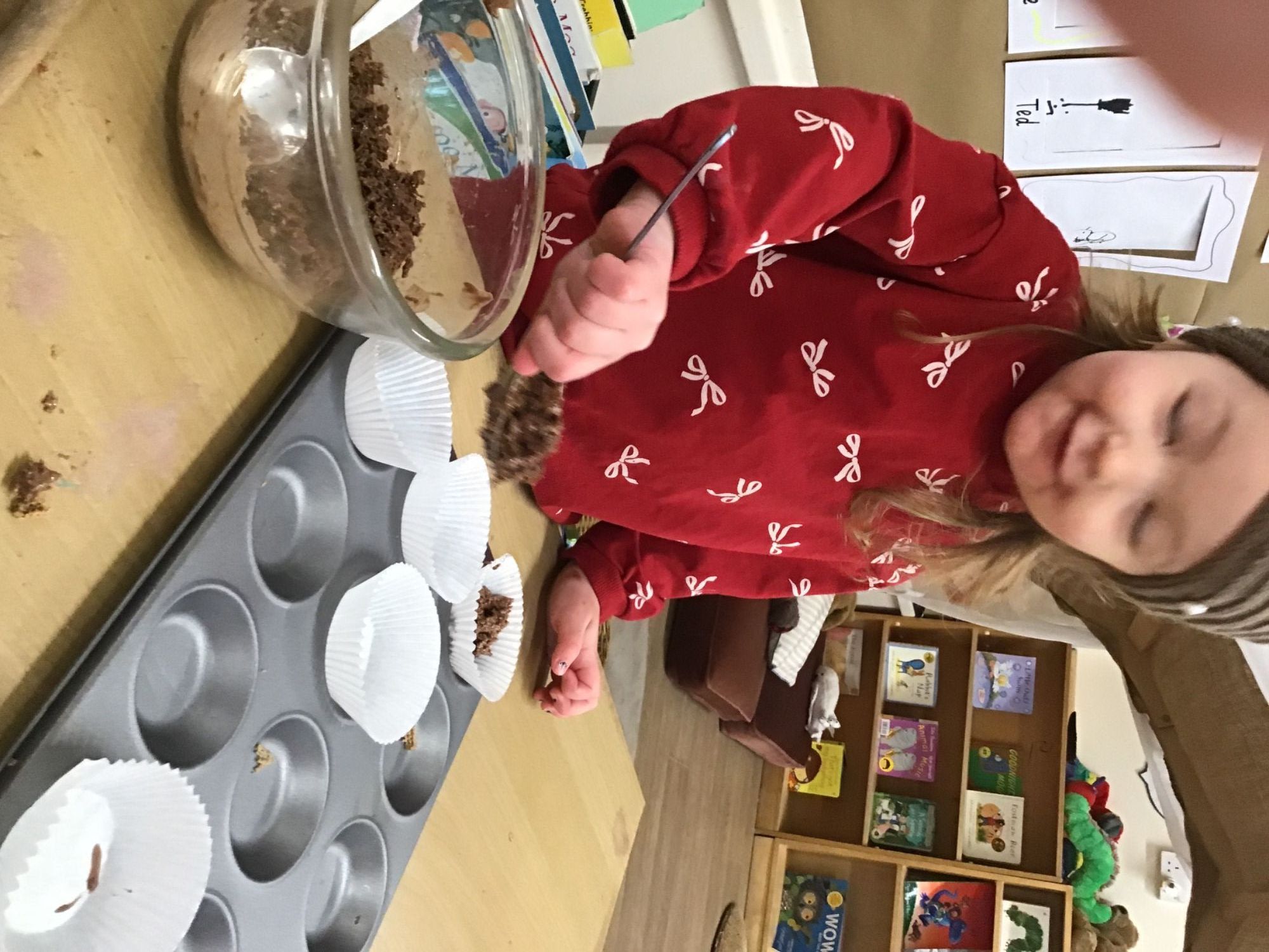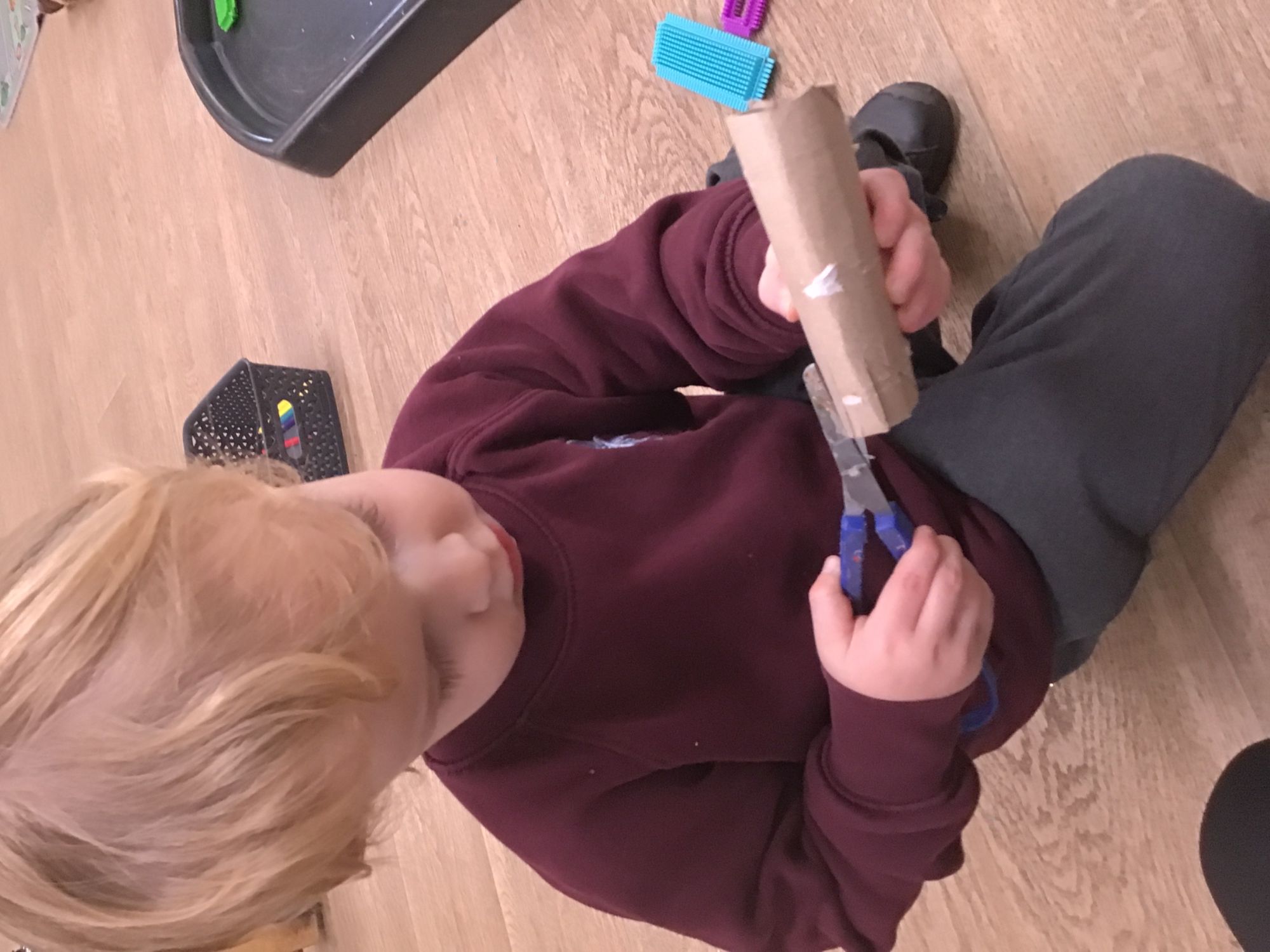 We have been developing our fine motor skills by making a nest for an owl. We used glue to stick strips of paper onto our paper, then practised using scissors to cut out an owl! We shared lots of stories about Owls, their habitat and what they like to eat. We even made chocolate nests on Friday.