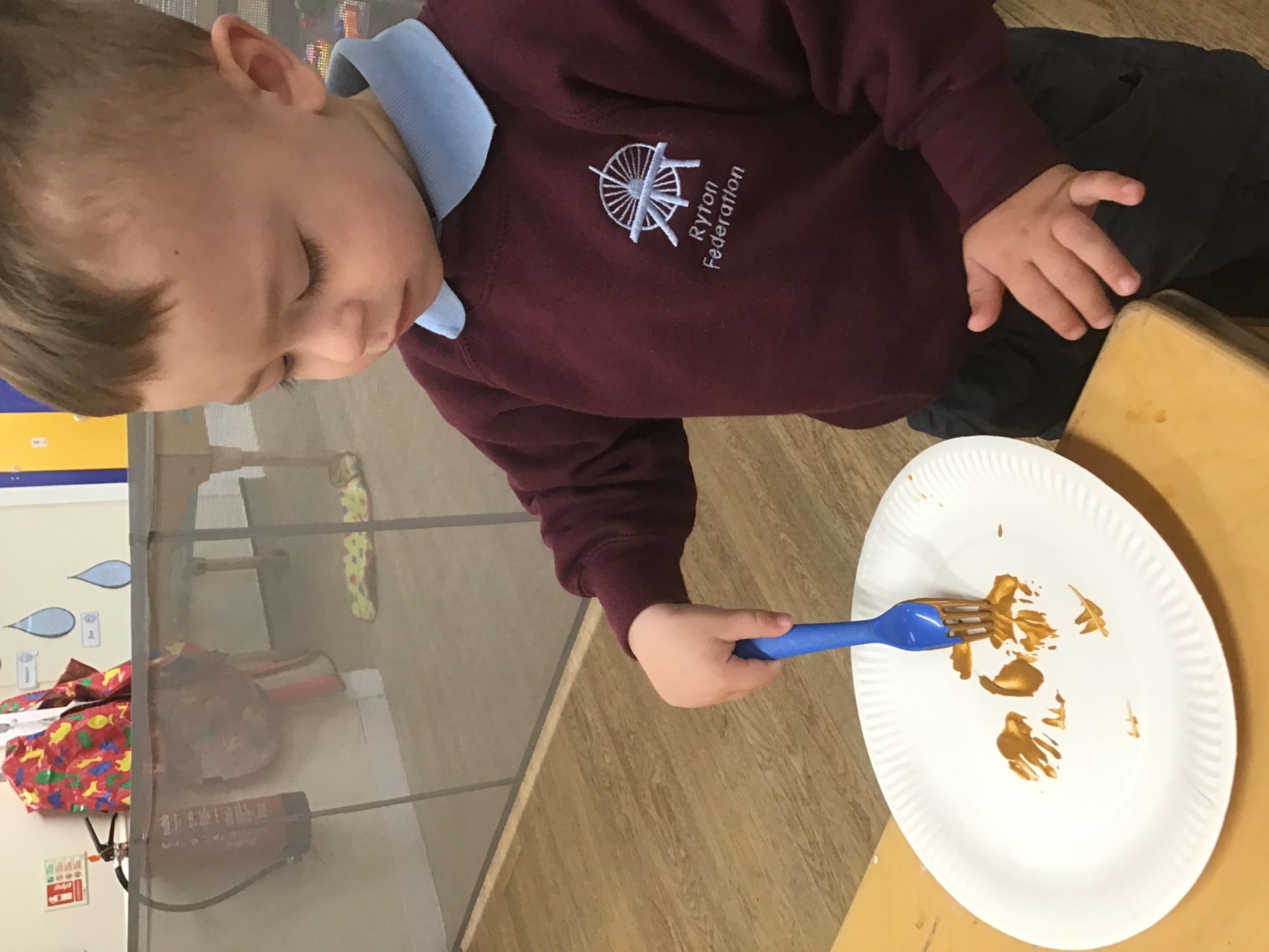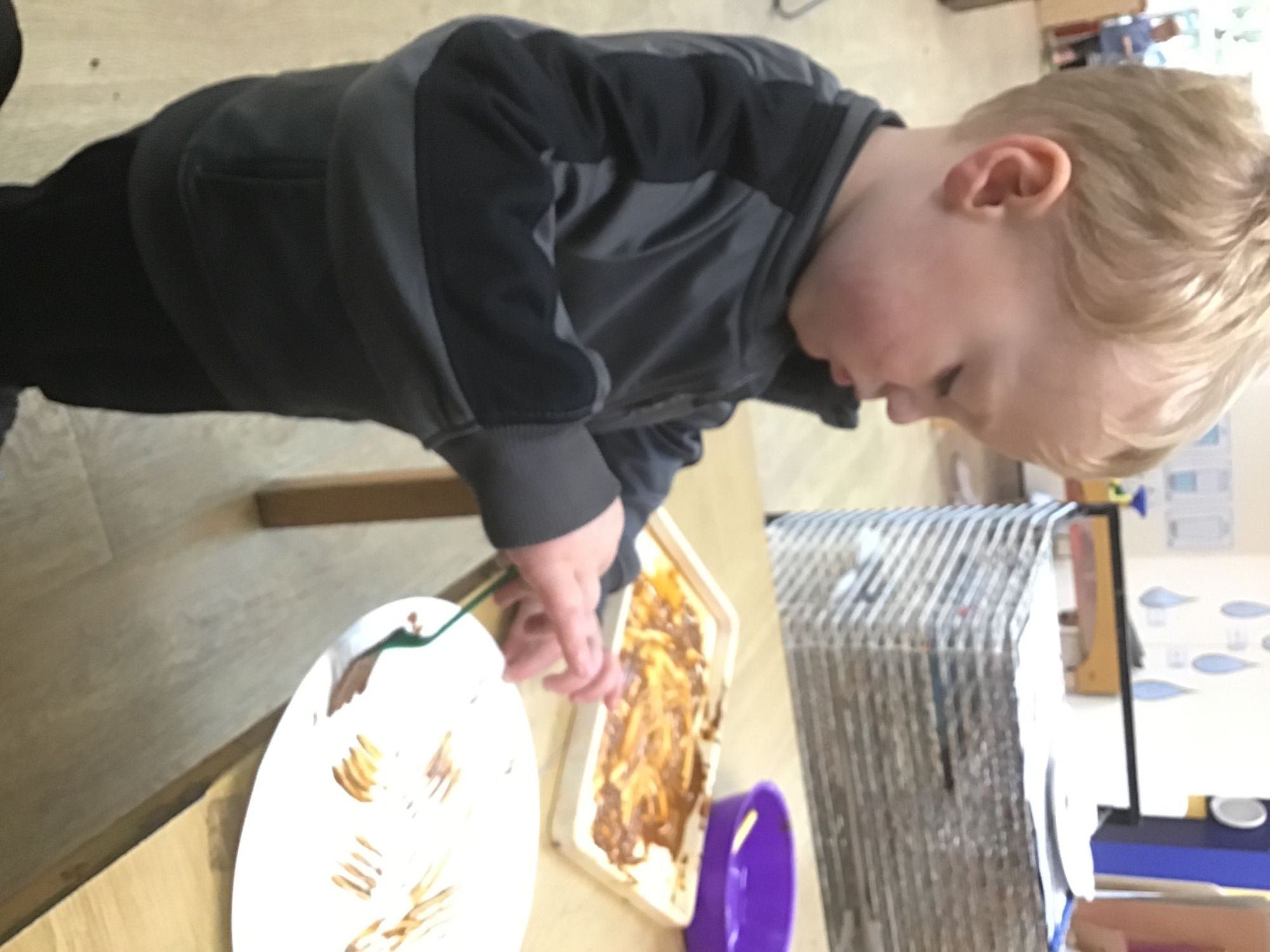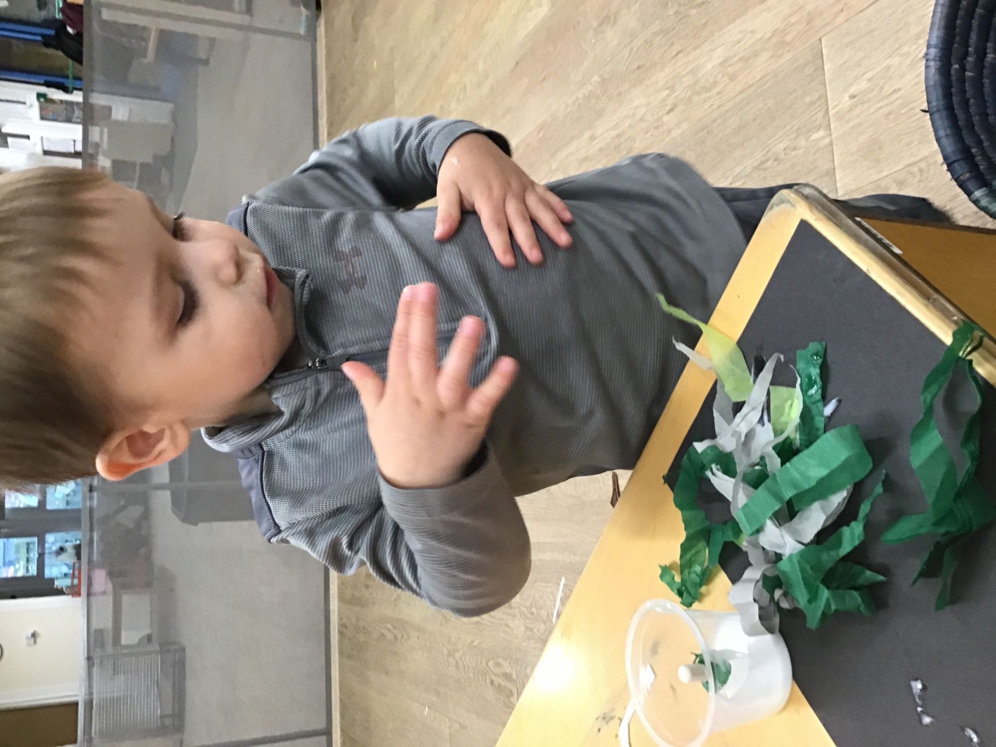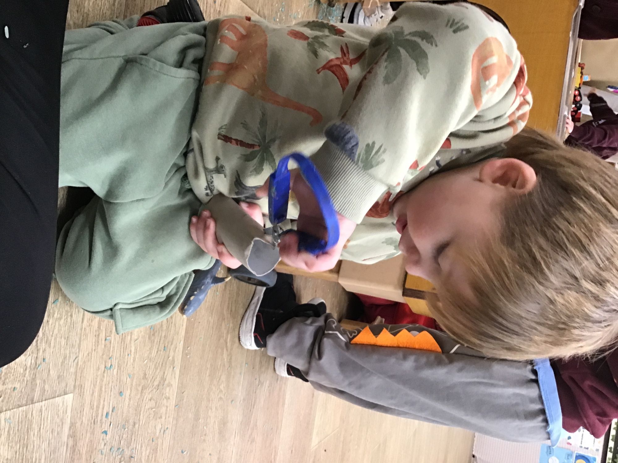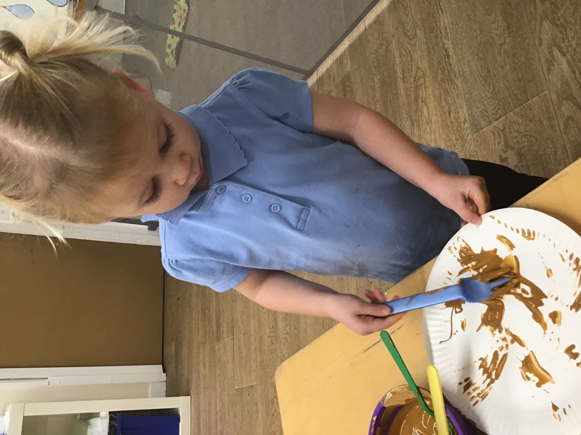 We have been developing our fine motor skills by making a nest for an owl. We used glue to stick strips of paper onto our paper, then practised using scissors to cut out an owl! We shared lots of stories about Owls, their habitat and what they like to eat. We even made chocolate nests on Friday.