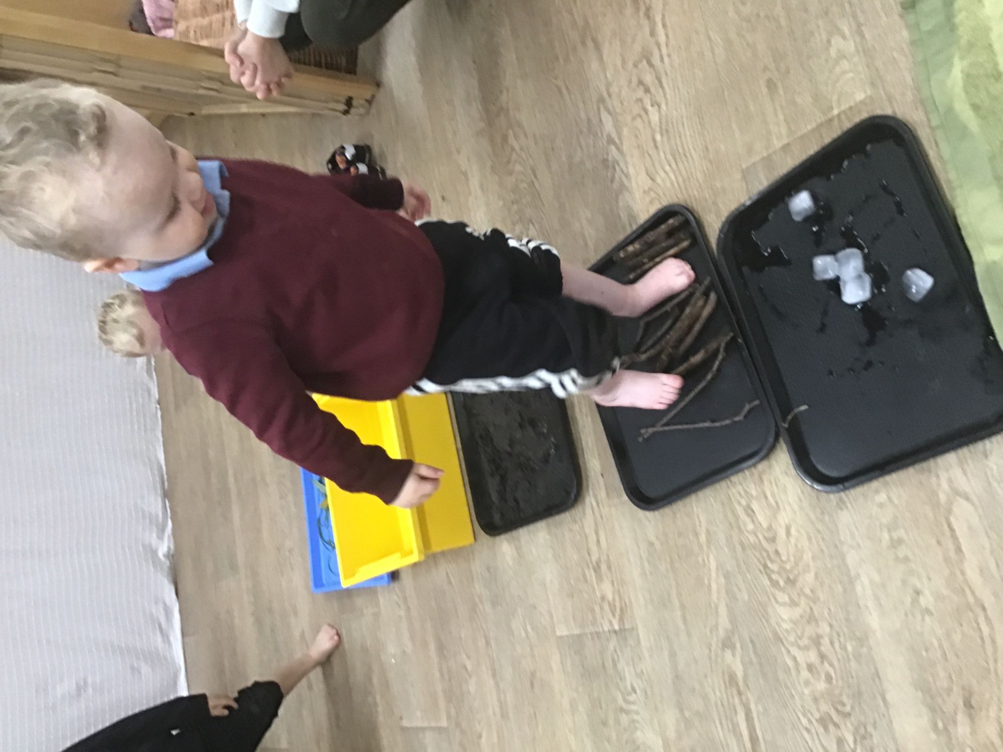 We have continued to think about 'Ourselves' and our senses this week. We have tasted and smelled the toast, used our eyes to find lots of things in our garden, touched rough tree bark, cold sand and soft flowers and listened to the aeroplanes and our friends chatting!. We learnt a song about our five senses called 'I use my eyes to see'. I wonder how many Butterflies can remember it and sing it for you?