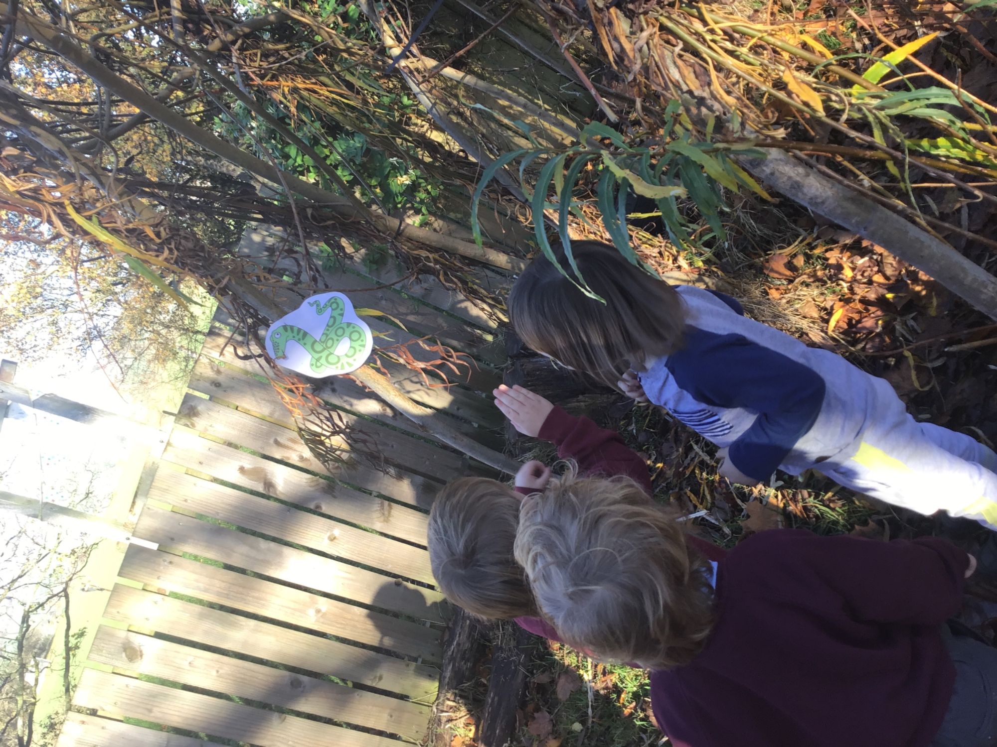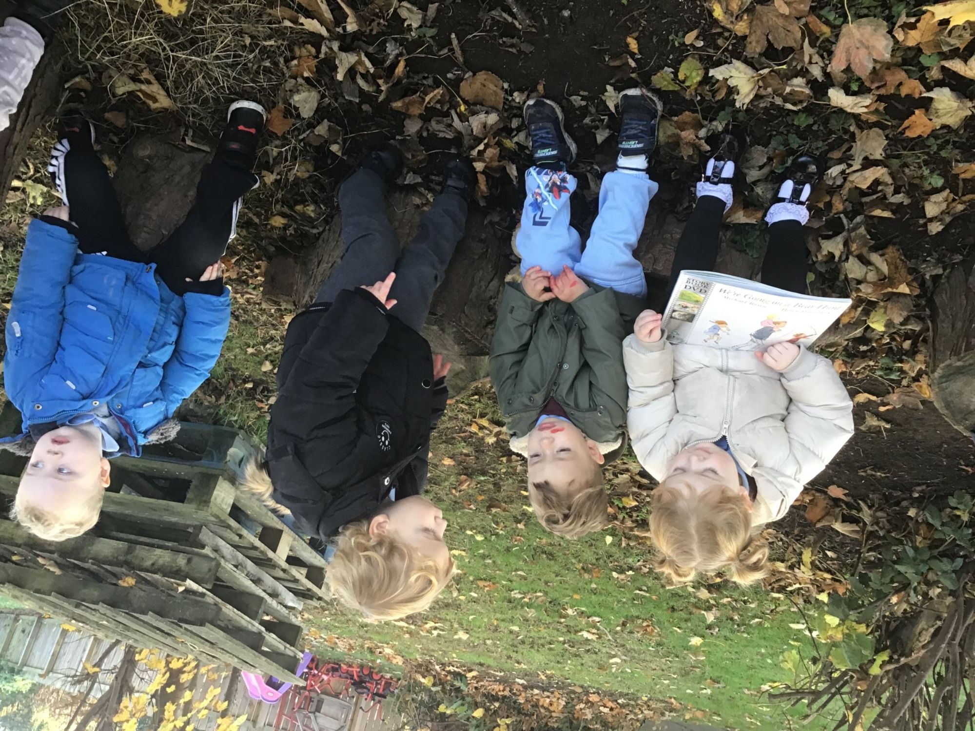 Our story this week was 'We're going on a pumpkin hunt'. We sat on Nursery hill to listen to the story then we went in search of pumpkins! We found 5! We counted them and then put them in order of size.