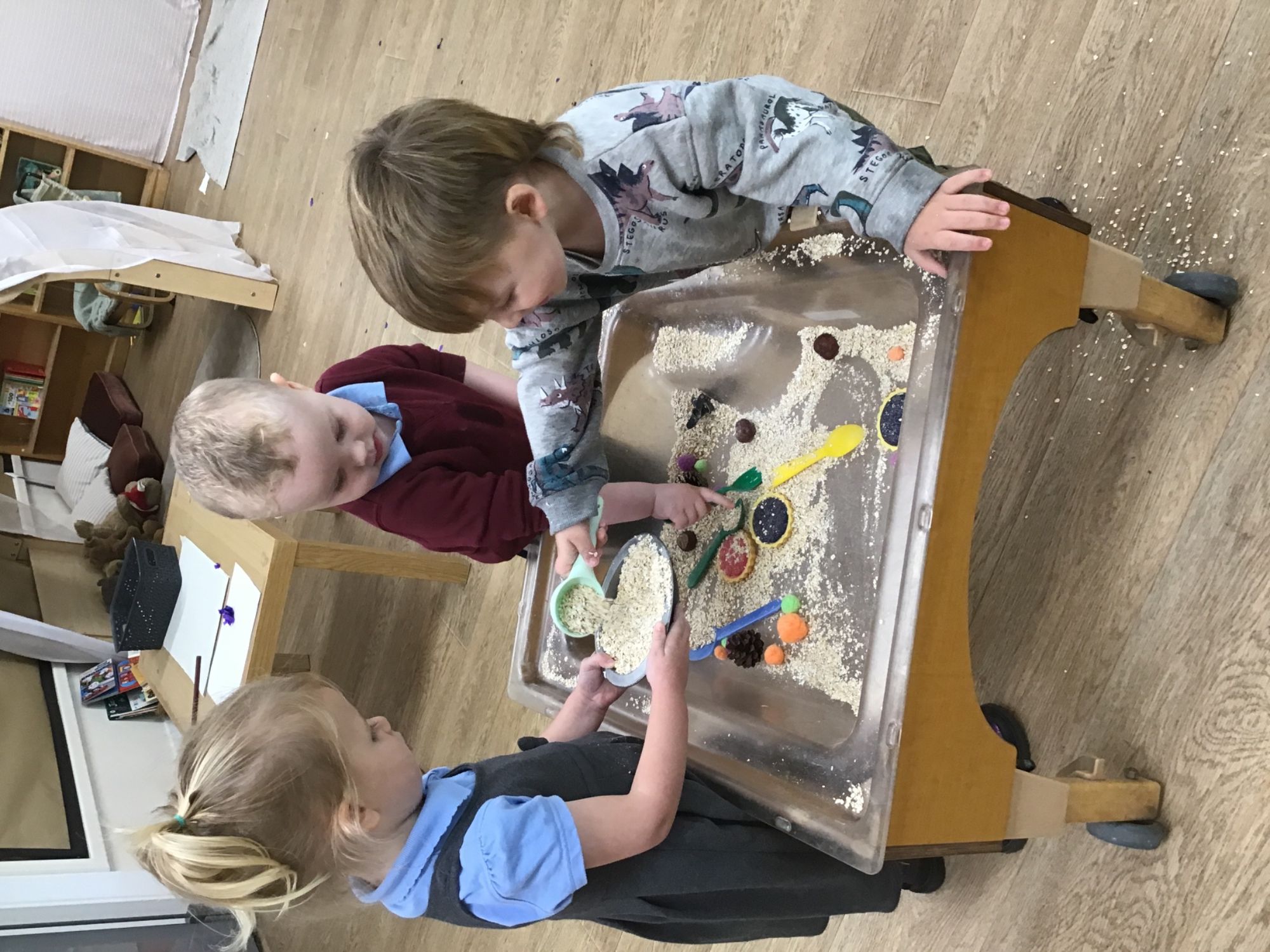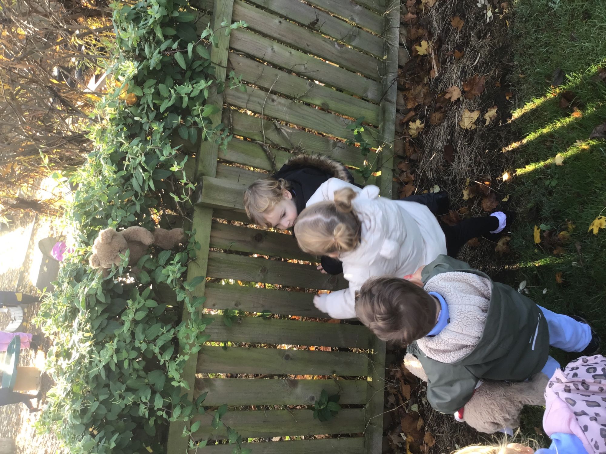 All things Autumn colours this week. We went on a leaf hunt and found lots of different coloured leaves, we listened to the story Leaf Man and then made our very own Leaf Man! We read the book 'That's not my Hedgehog ' and made spikey hedgehogs with play dough. We even made Leaf soup in the mud kitchen, as well as spray painted, climbed, sorted,filled containers and shared books this week in Butterfly Group.