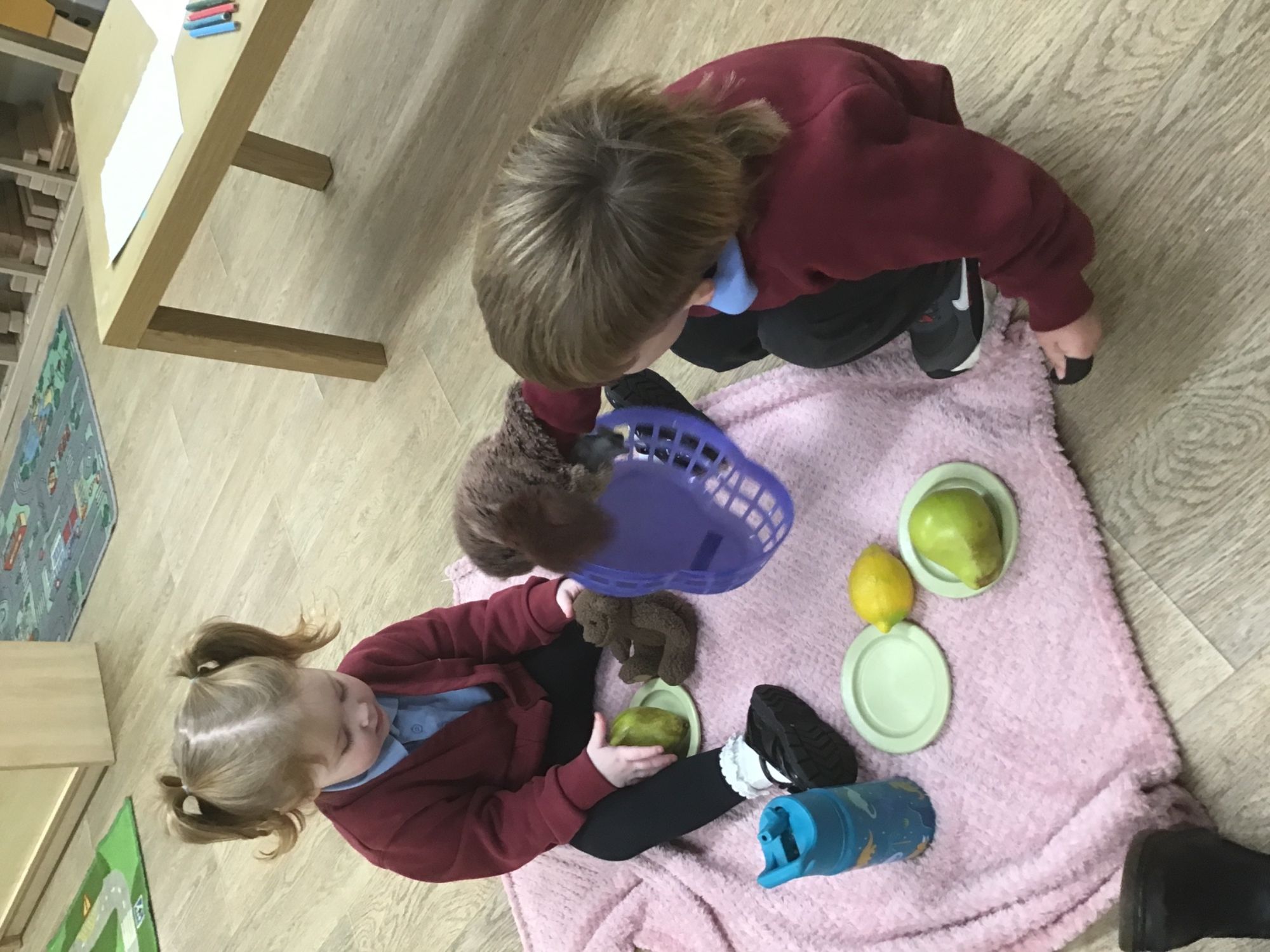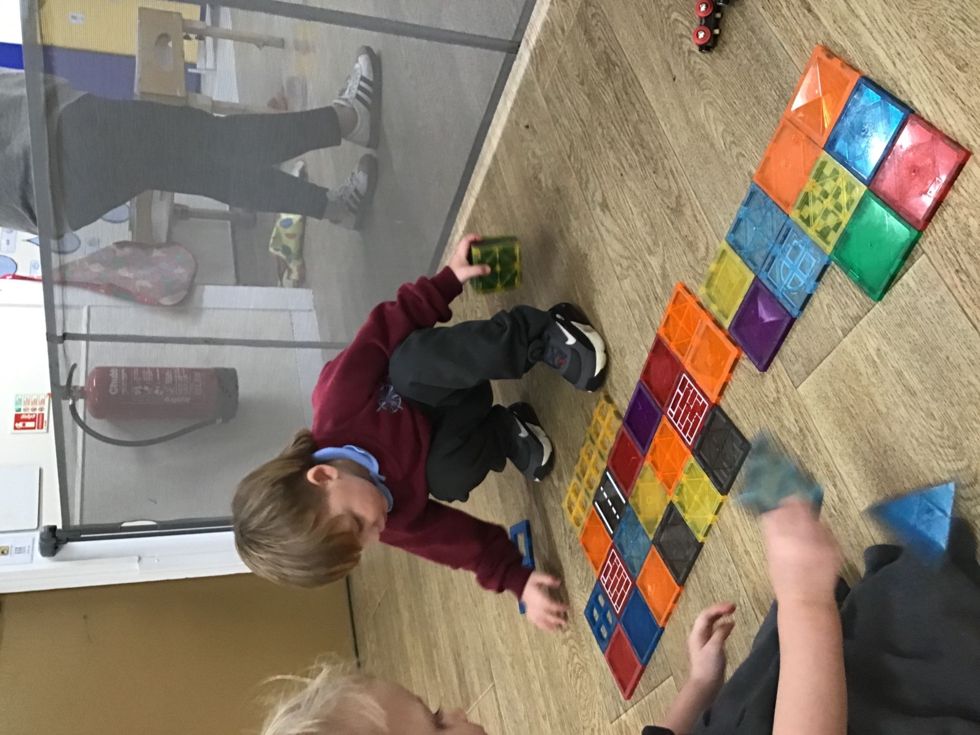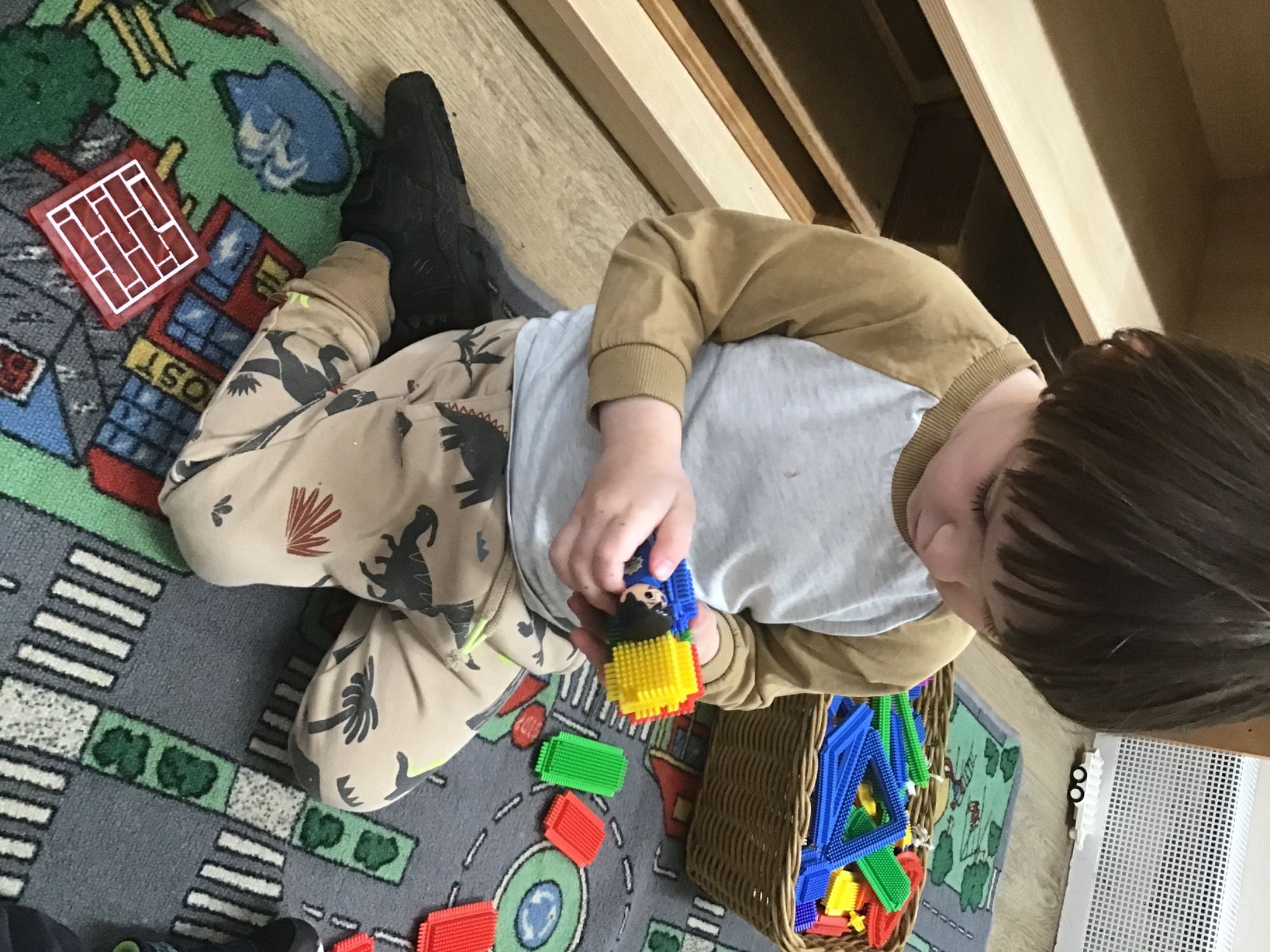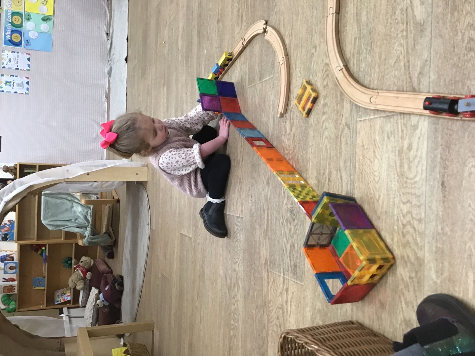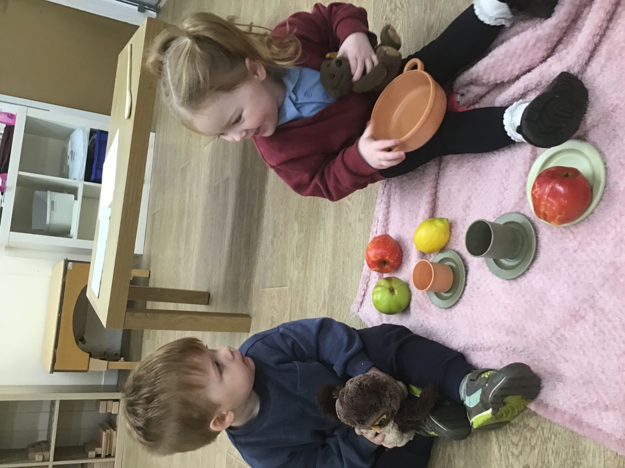 This week we have enjoyed playing in our Home Corner feeding the Teddies, making playdough faces and building with blocks and magnetic tiles. We have continues to name colours and talk about 'Ourselves', naming our facial features and singing 'Head ,Shoulders, Knees and toes' at snack time.