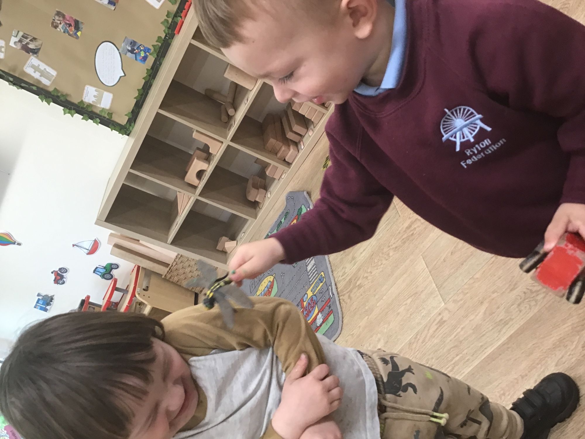 We have talked about how we can look after ourselves this week. We have practised washing and drying our hands before snack, brushing the dinosaurs teeth, bathing the dolls to make them lovely and clean aswell as having our usual Butterfly fun with our friends!