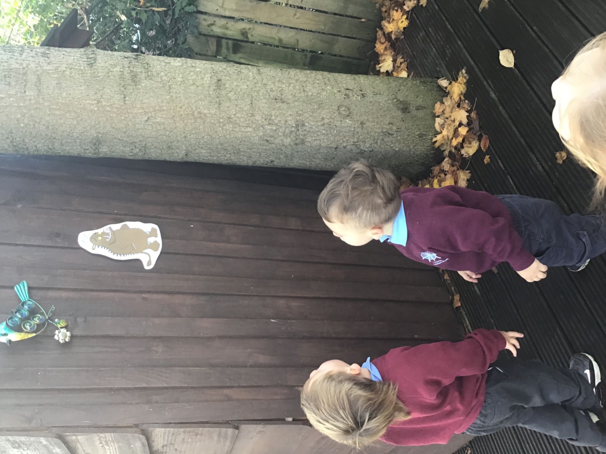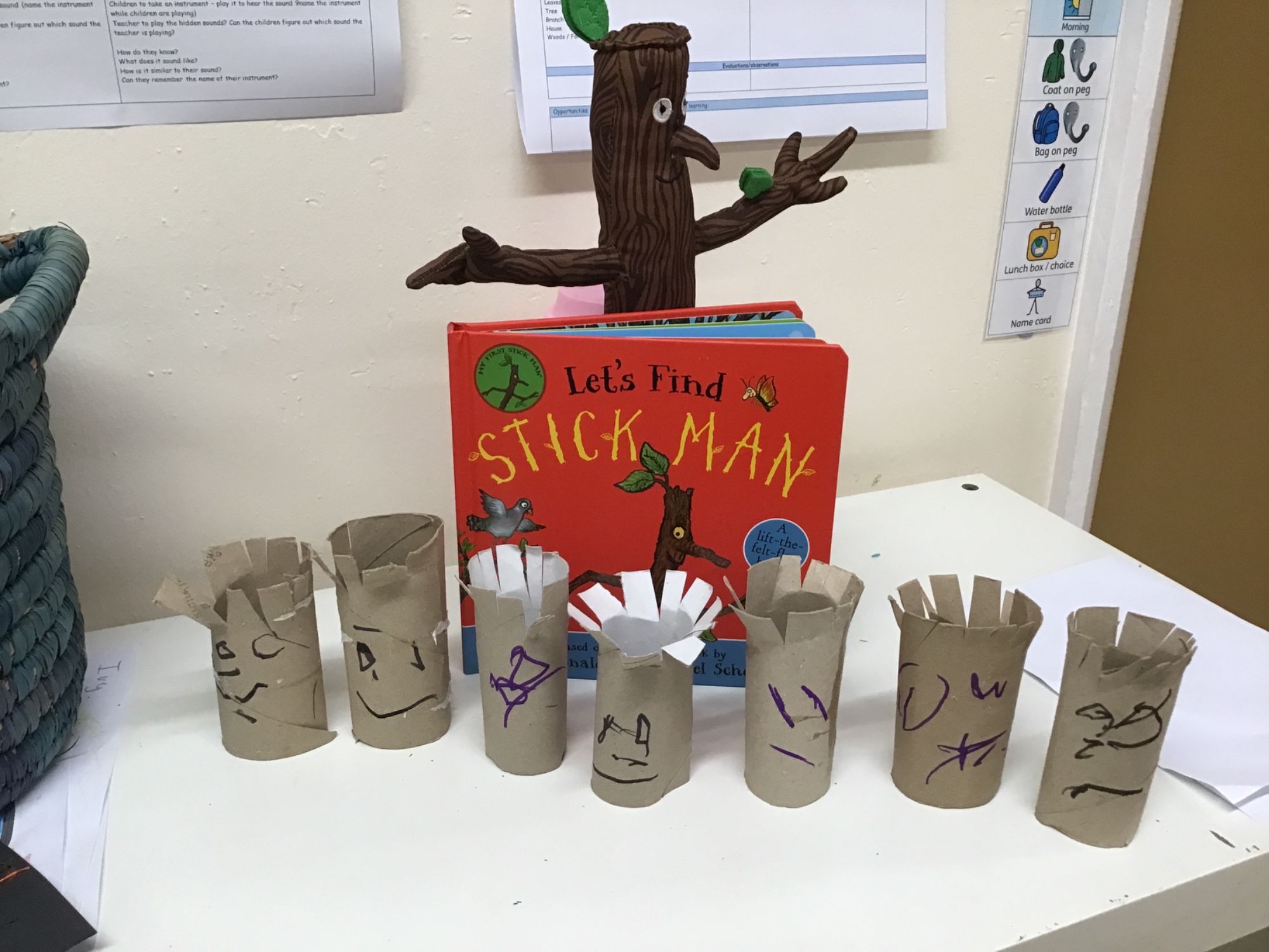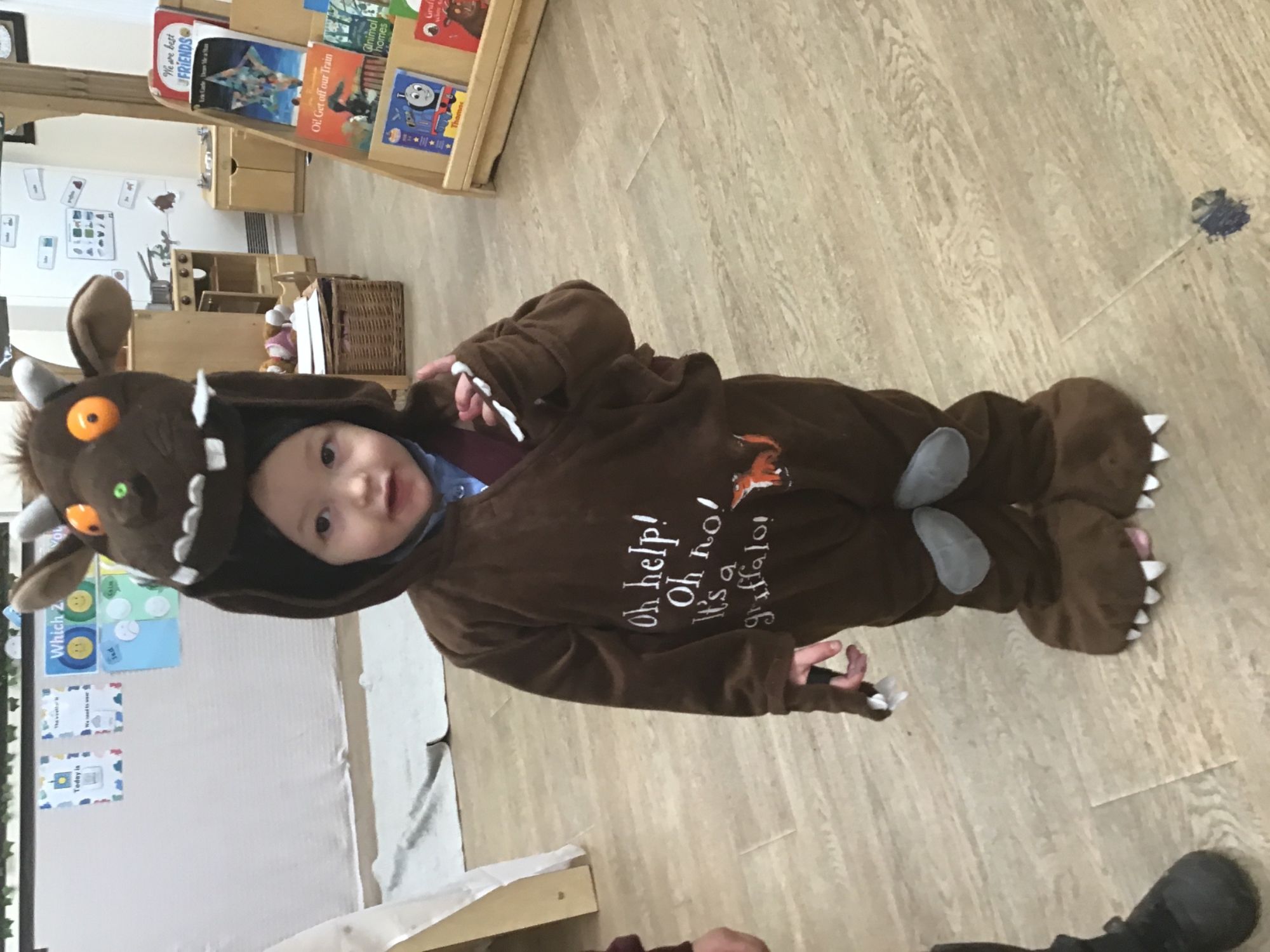 Its all about The Gruffalo this week, we looked for him in our garden, we moved like the Gruffalo's friends, we enjoyed the story so much we were able to retell parts of the story in our play!