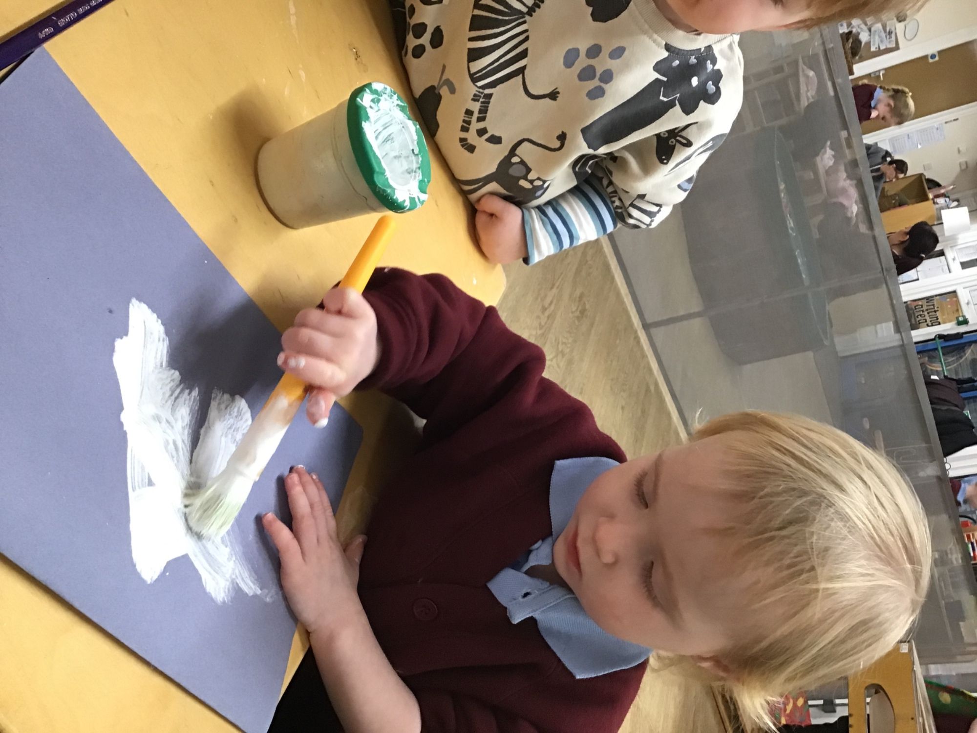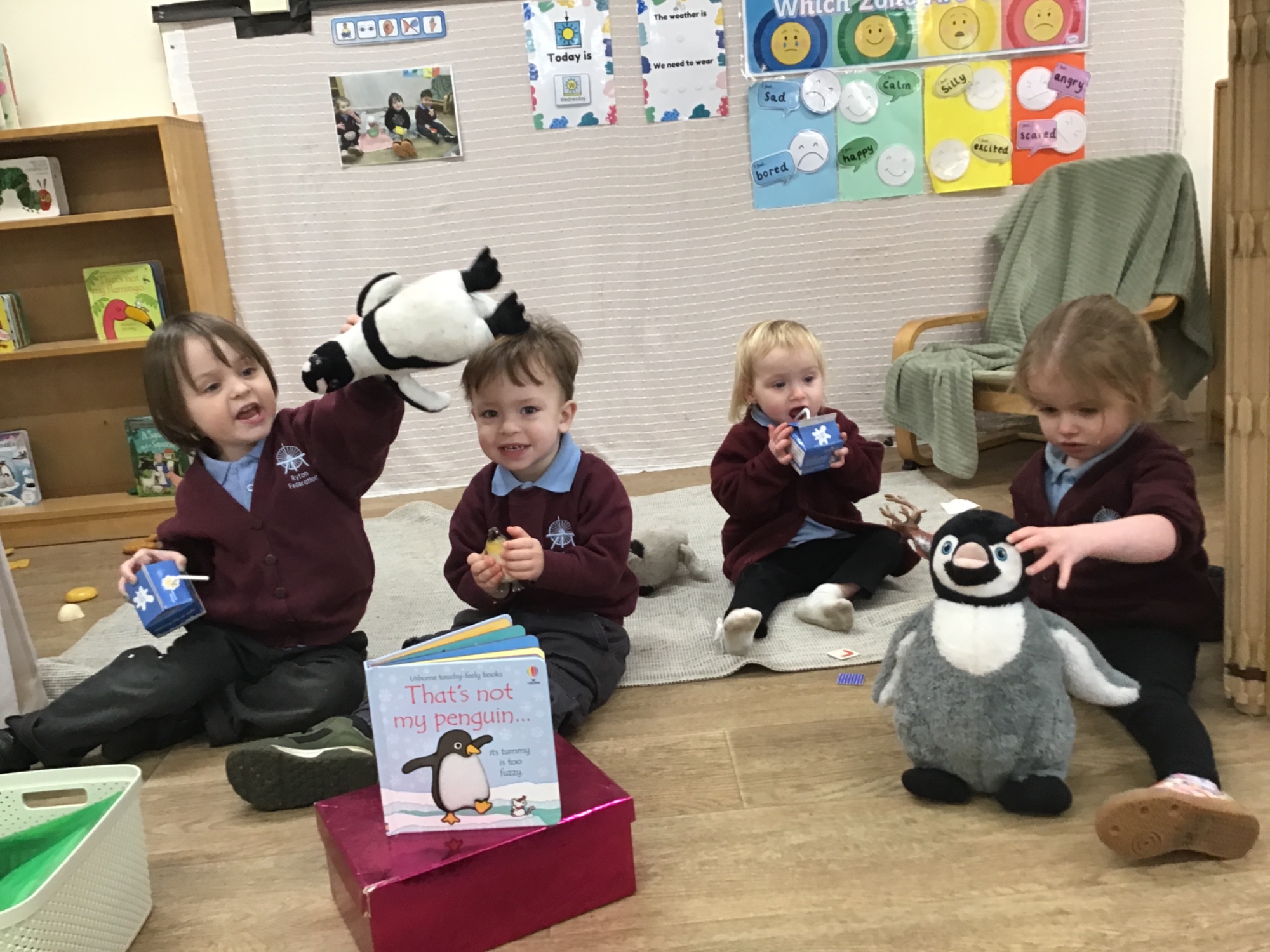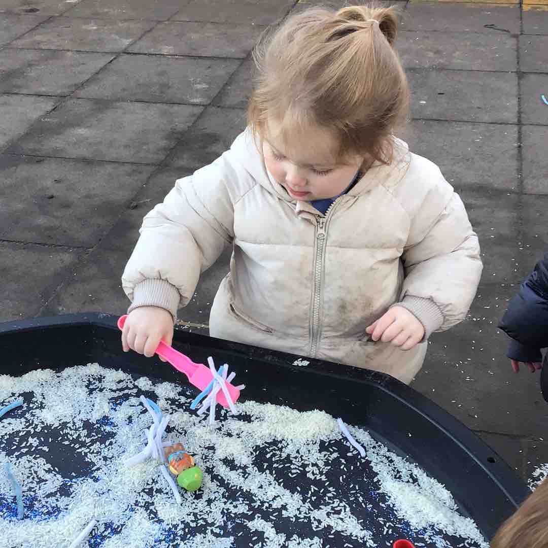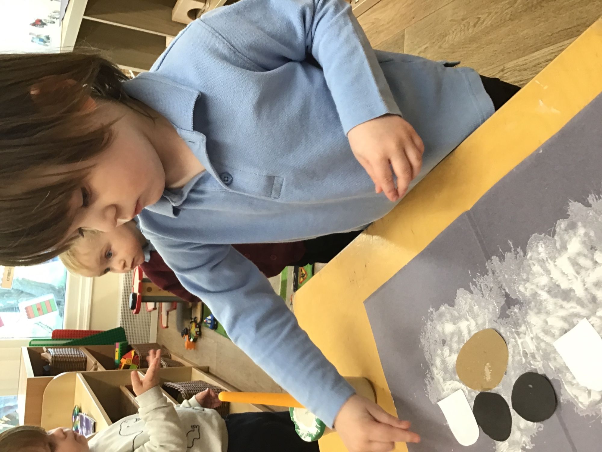 This week in Bumblebees we have been looking at books about Arctic animals. We have made pictures of polar bears, explored ice - melting with warm water in spray bottles, using tools to break the ice and painting the ice. We have enjoyed lots of mark making, dressing dolls, construction both small scale and with the large blocks outside.
