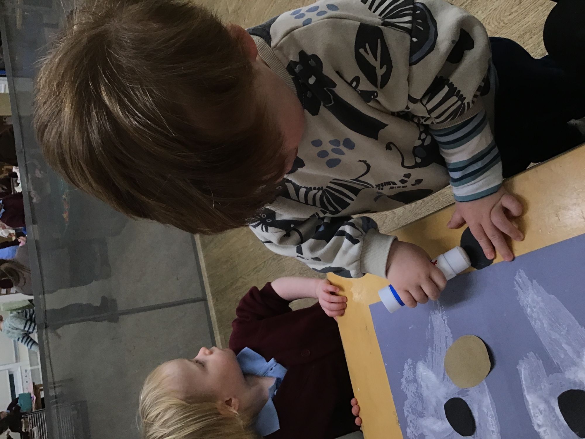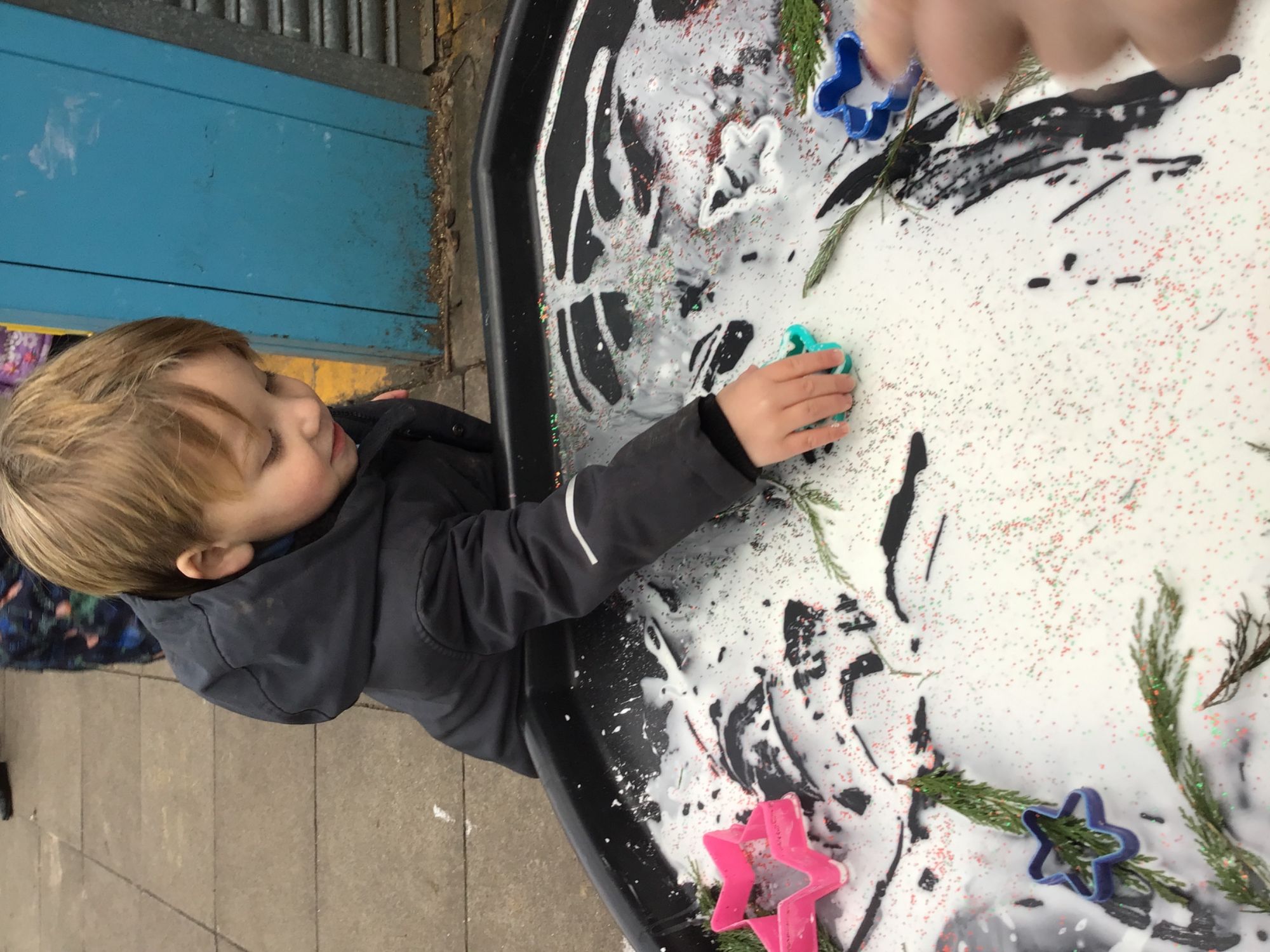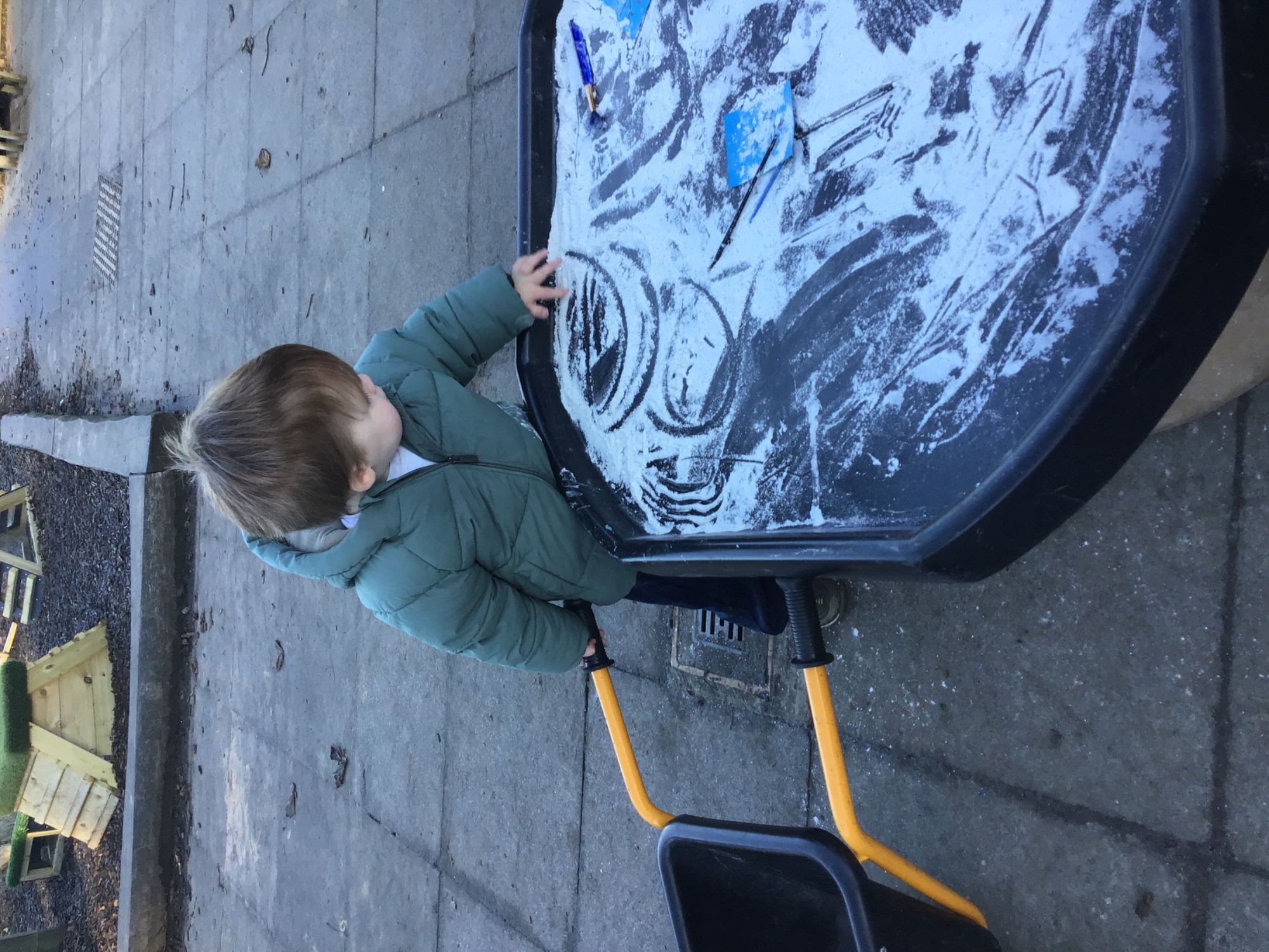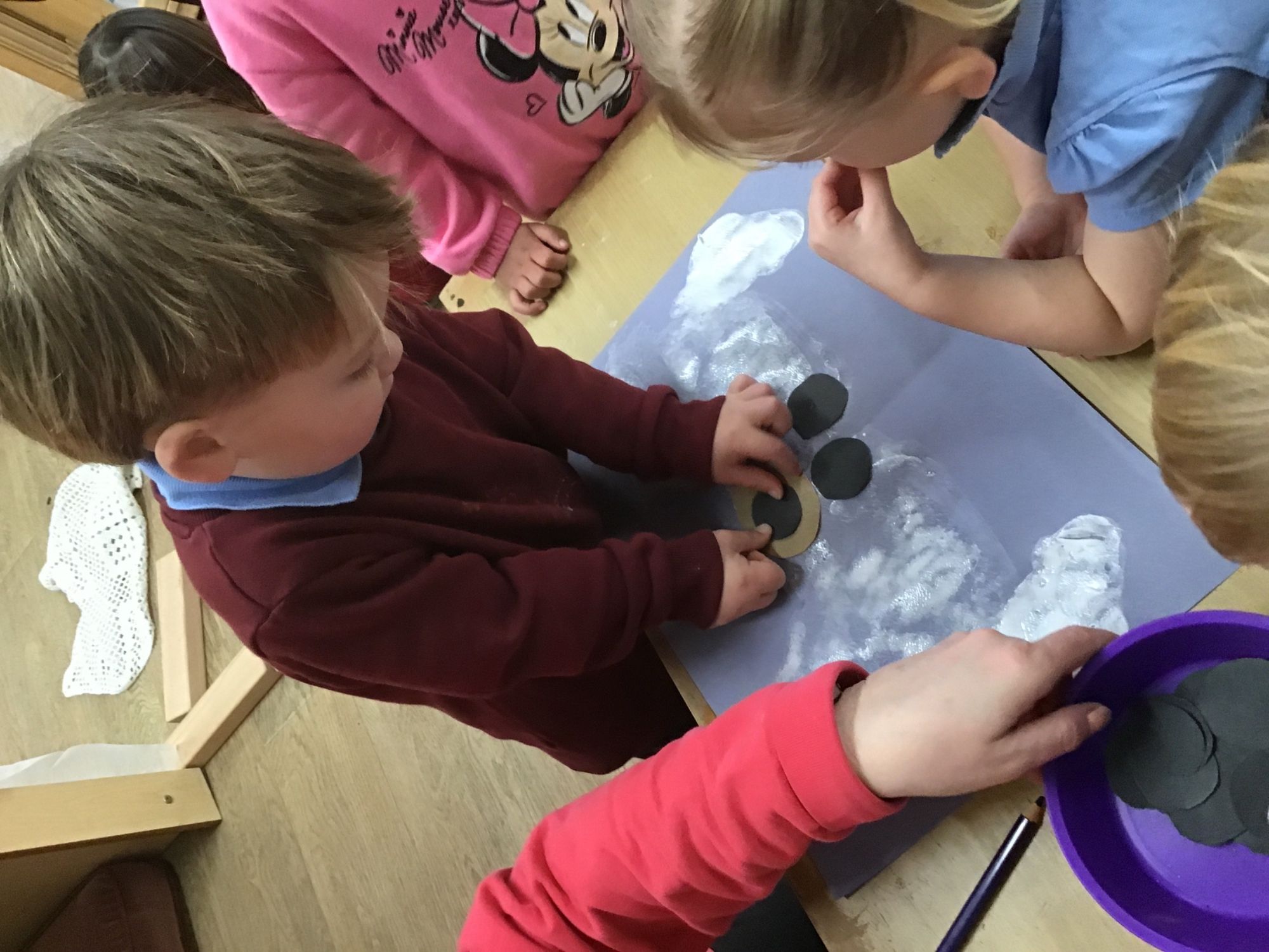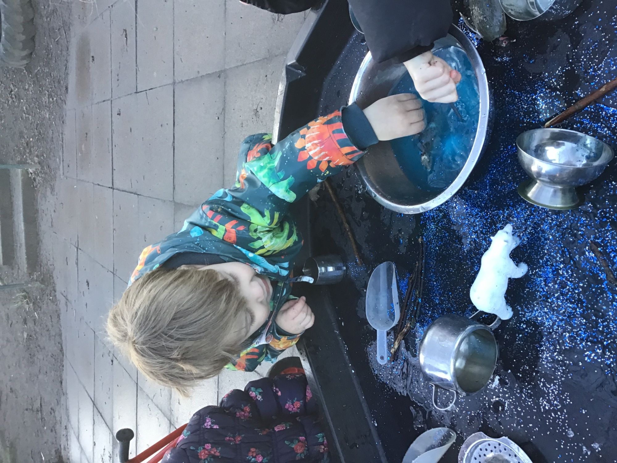 This week in Bumblebees we have been looking at books about Arctic animals. We have made pictures of polar bears, explored ice - melting with warm water in spray bottles, using tools to break the ice and painting the ice. We have enjoyed lots of mark making, dressing dolls, construction both small scale and with the large blocks outside.