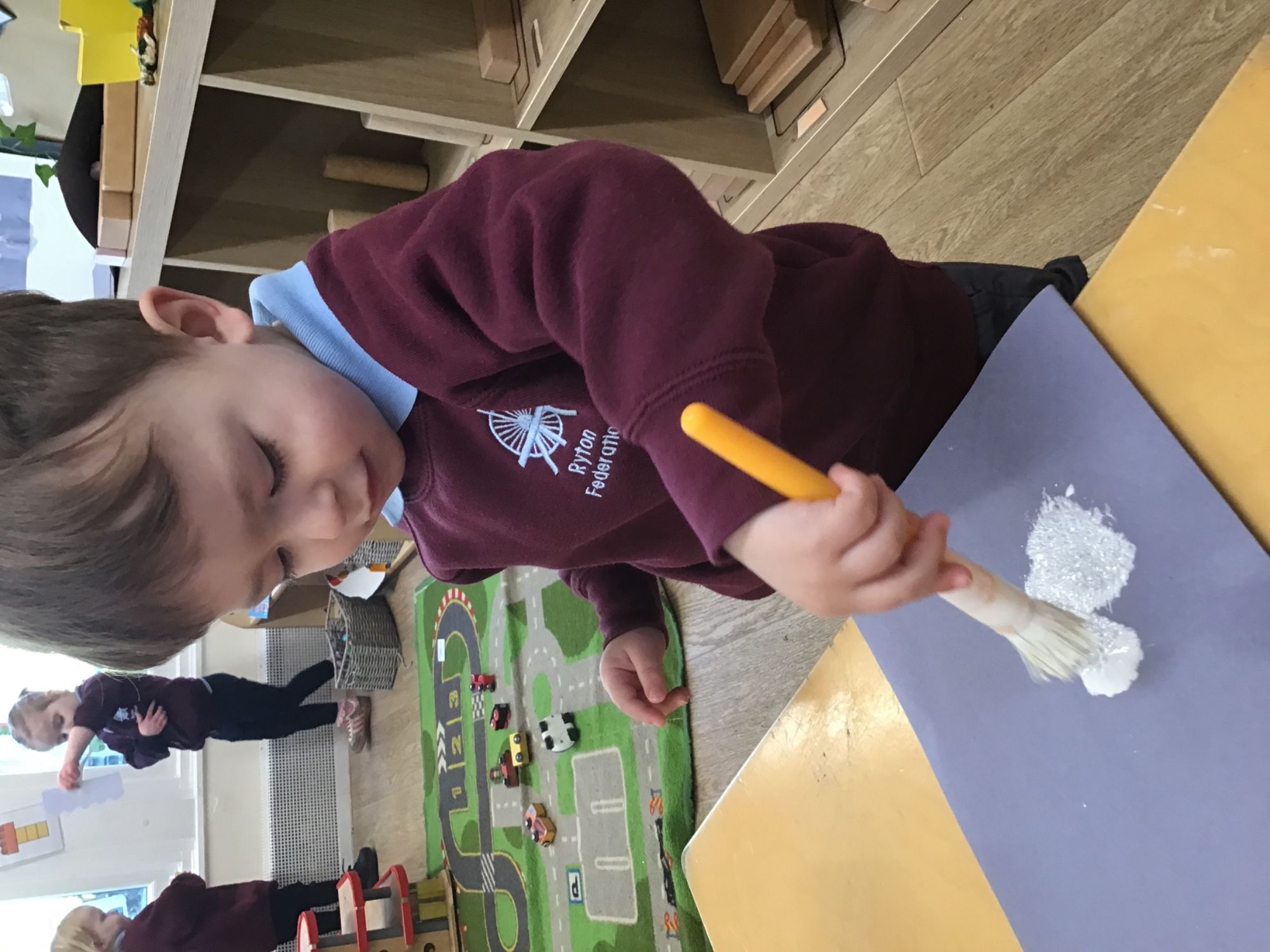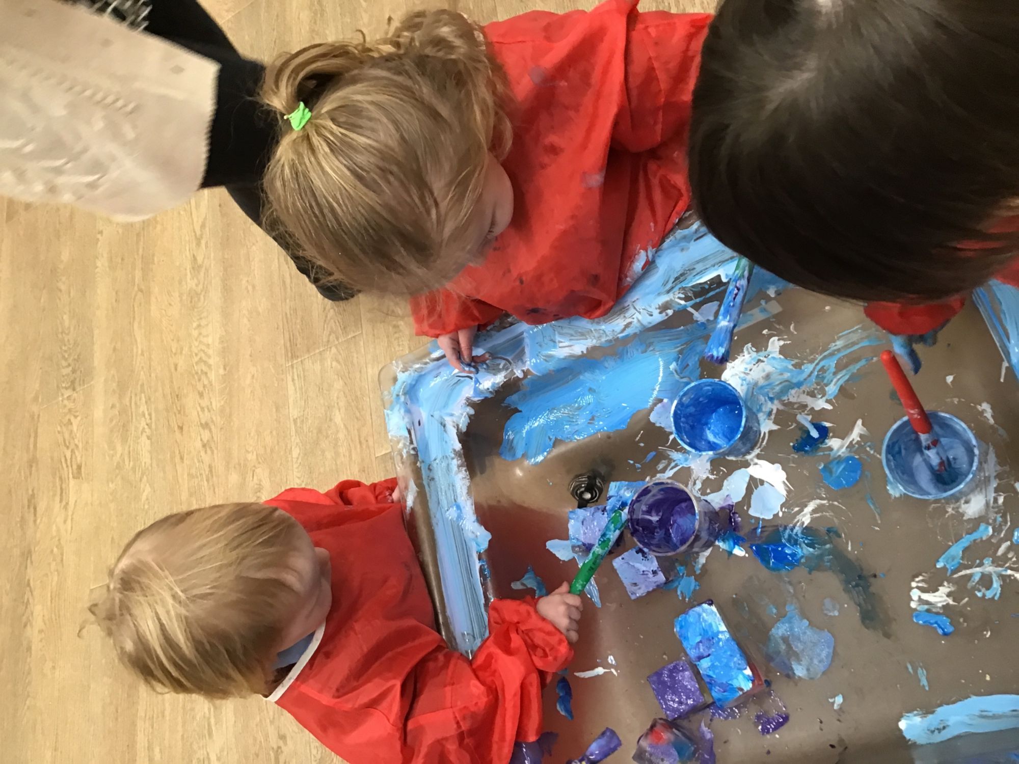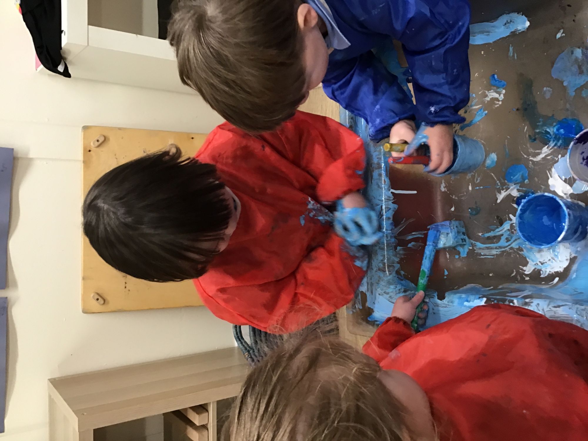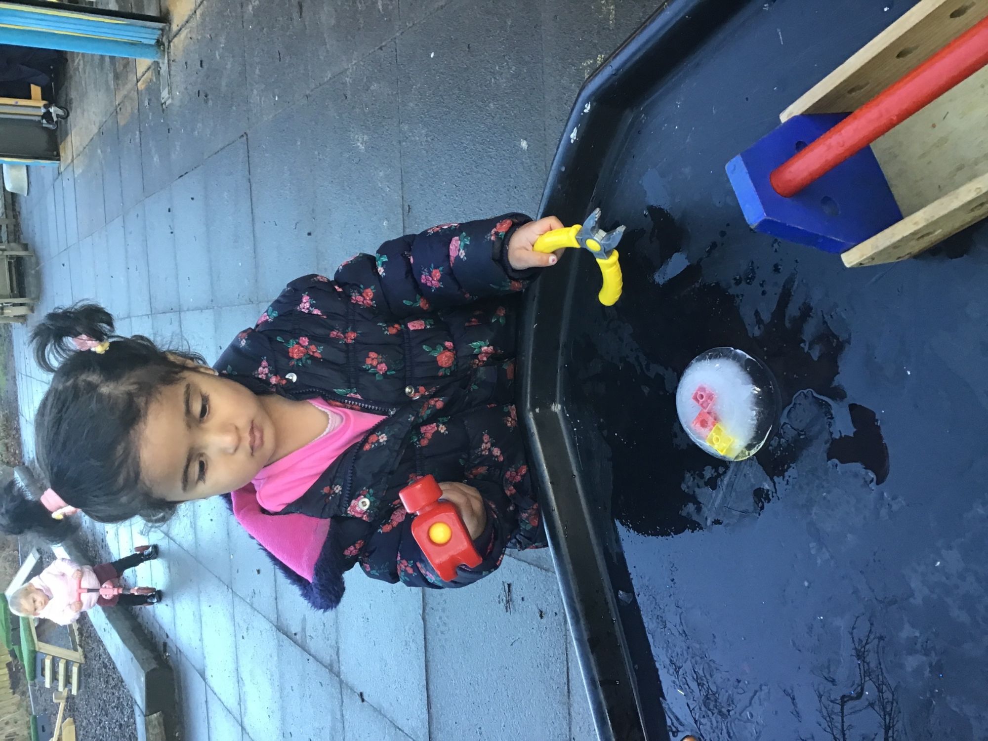This week in Bumblebees we have been looking at books about Arctic animals. We have made pictures of polar bears, explored ice - melting with warm water in spray bottles, using tools to break the ice and painting the ice. We have enjoyed lots of mark making, dressing dolls, construction both small scale and with the large blocks outside.