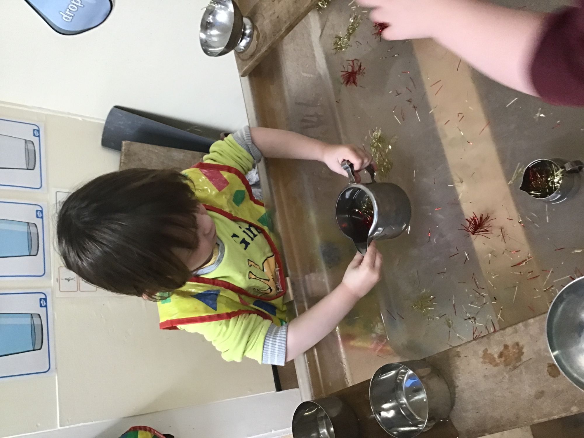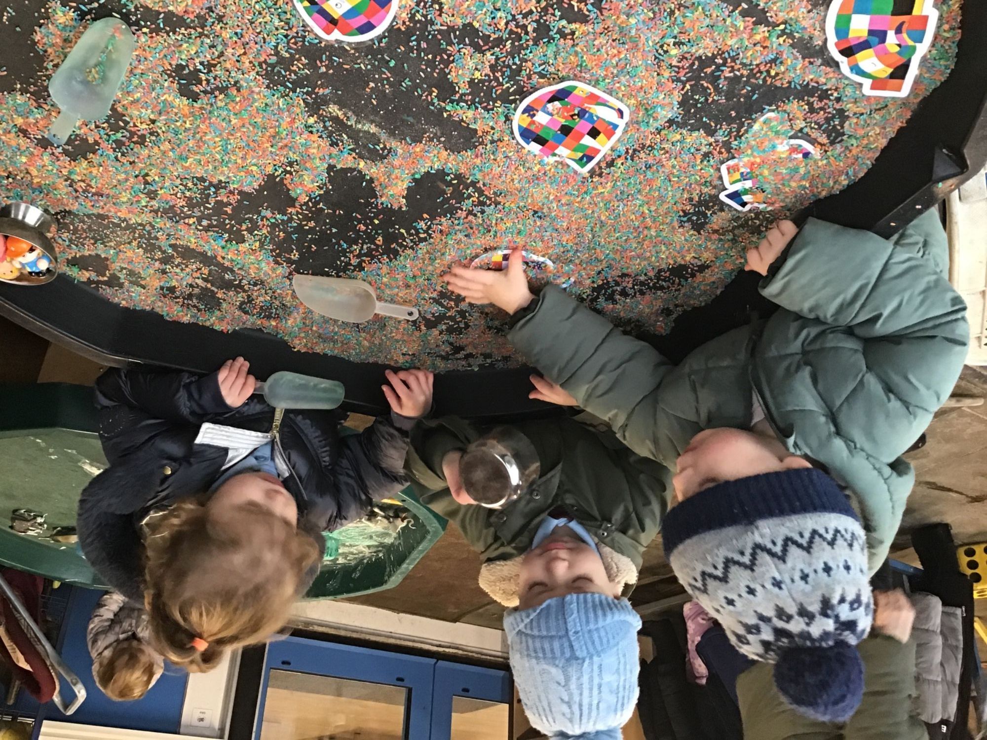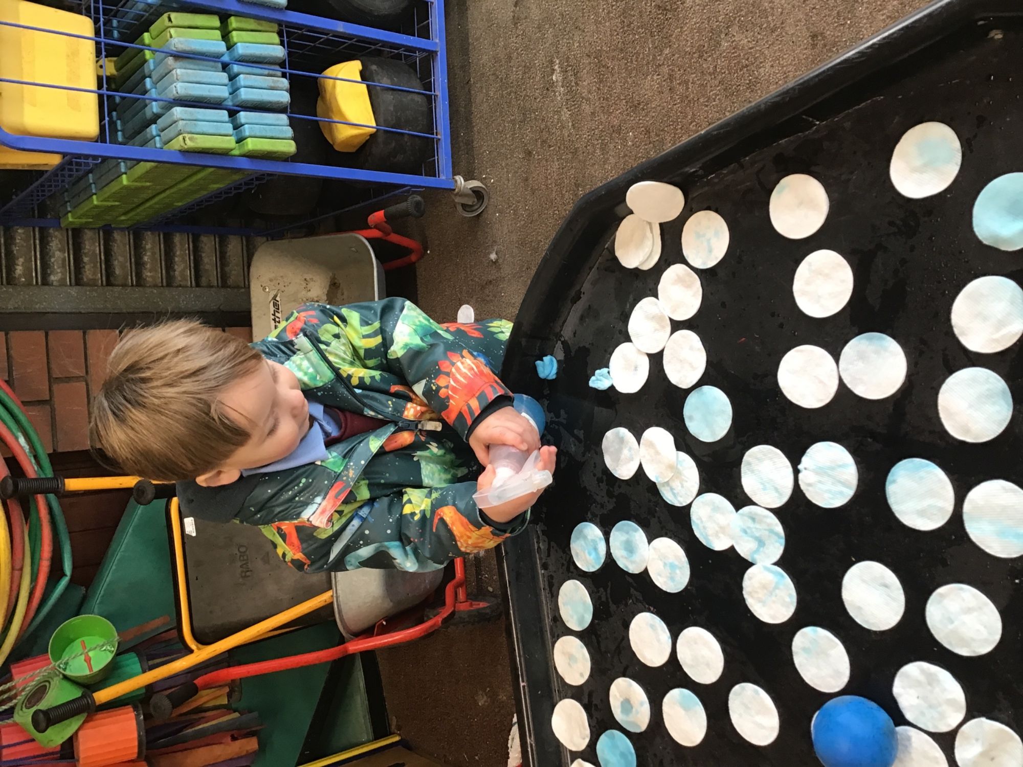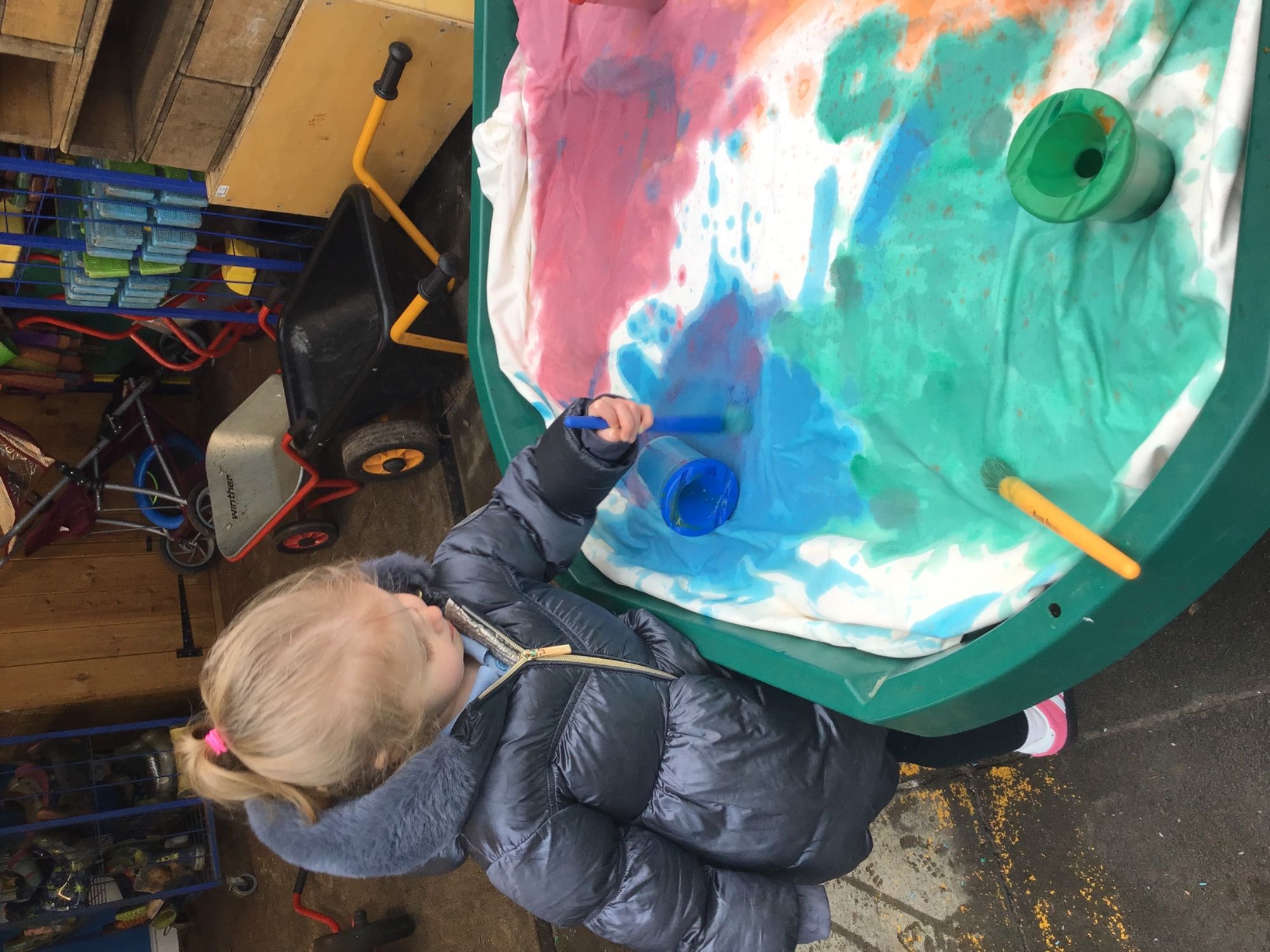 This week in Bumblebees we have been looking at books about Arctic animals. We have made pictures of polar bears, explored ice - melting with warm water in spray bottles, using tools to break the ice and painting the ice. We have enjoyed lots of mark making, dressing dolls, construction both small scale and with the large blocks outside.