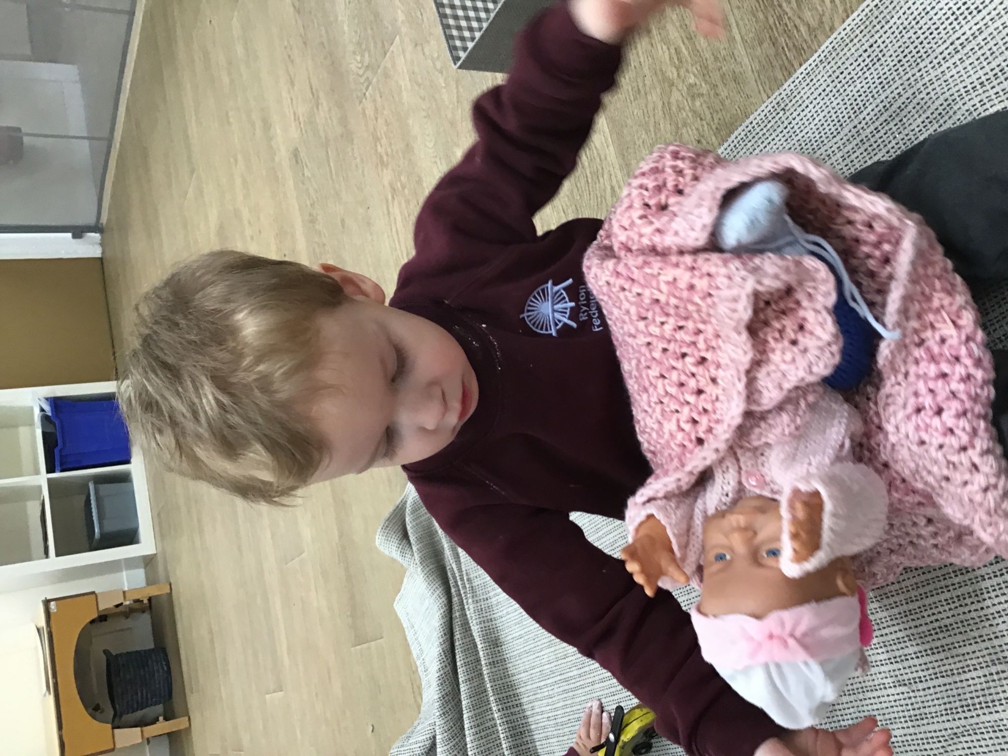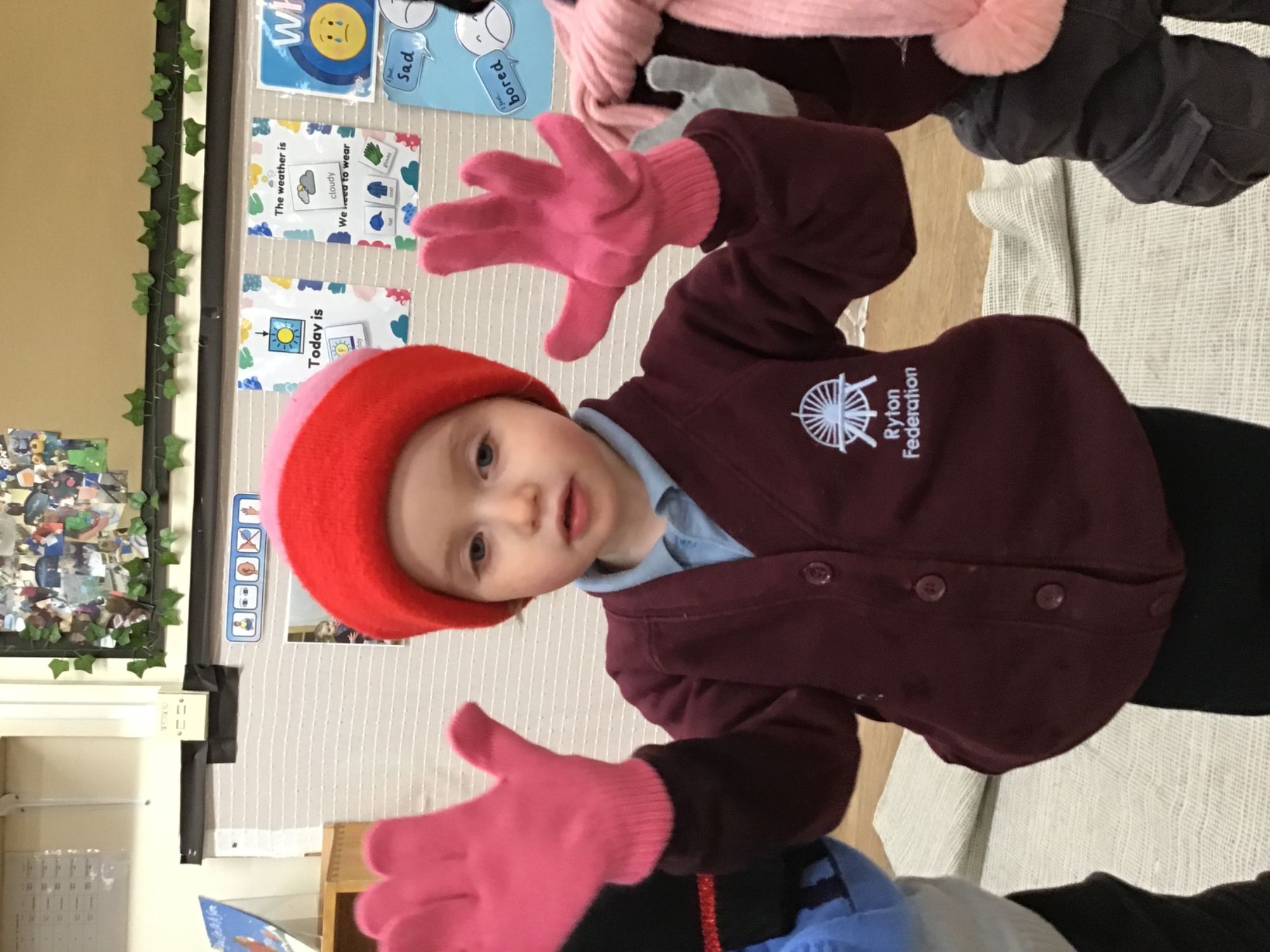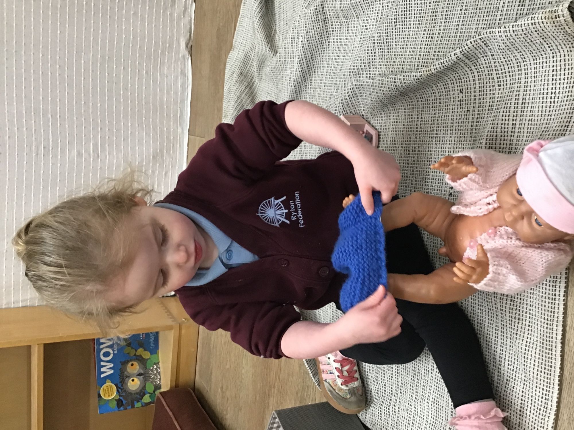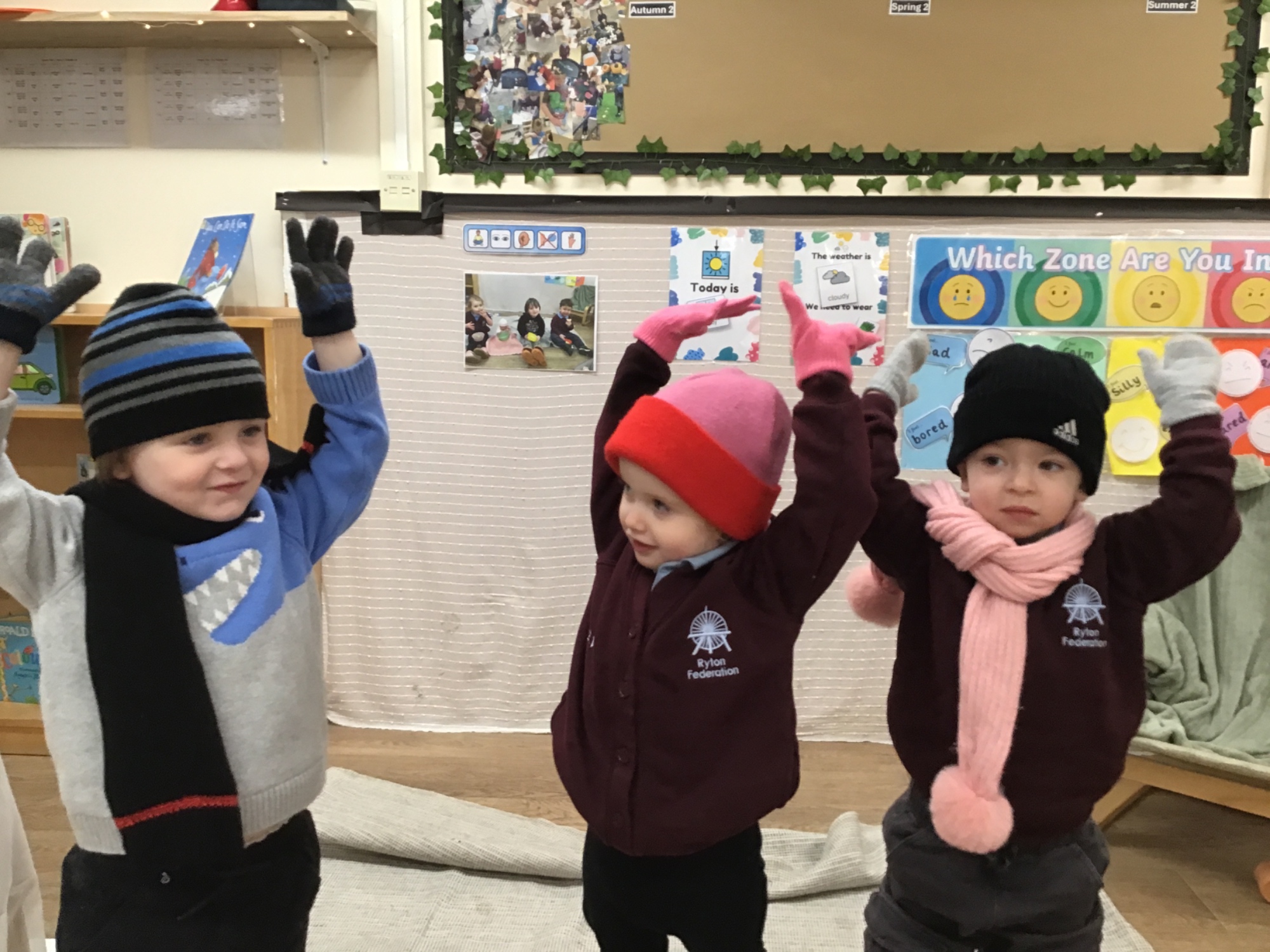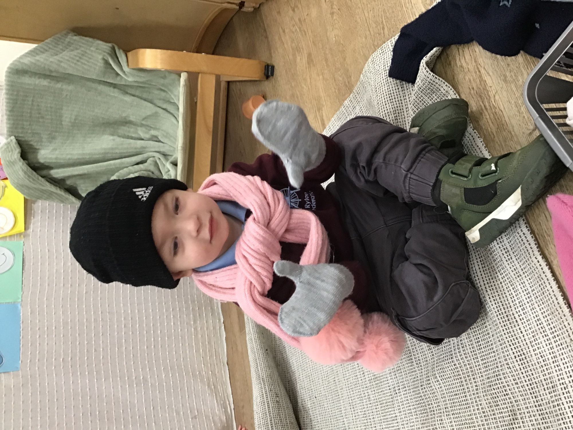 We have talked about Winter this week and how to keep warm! We dressed the doll in warm clothes then we dressed ourselves  so we could keep warm!