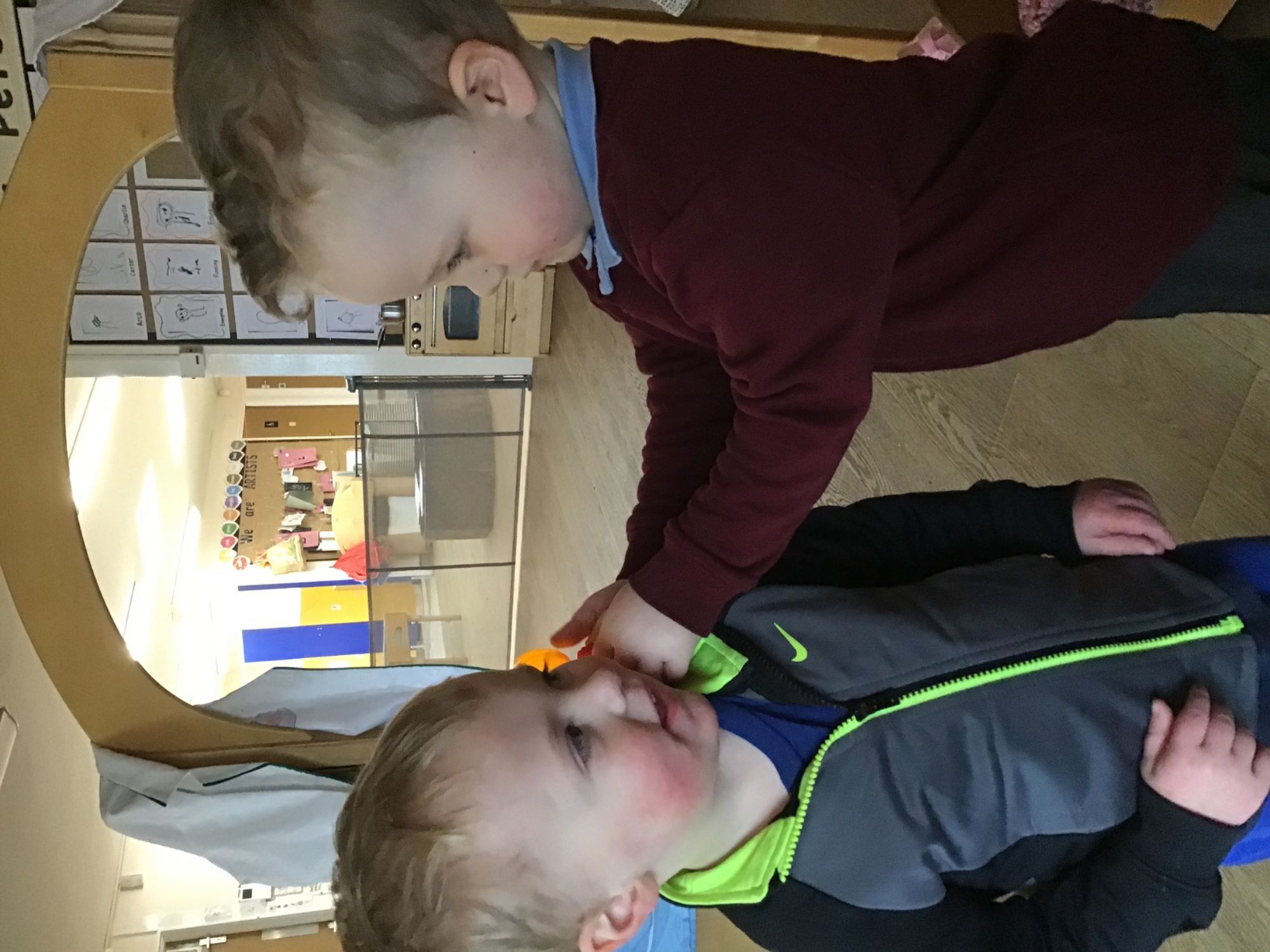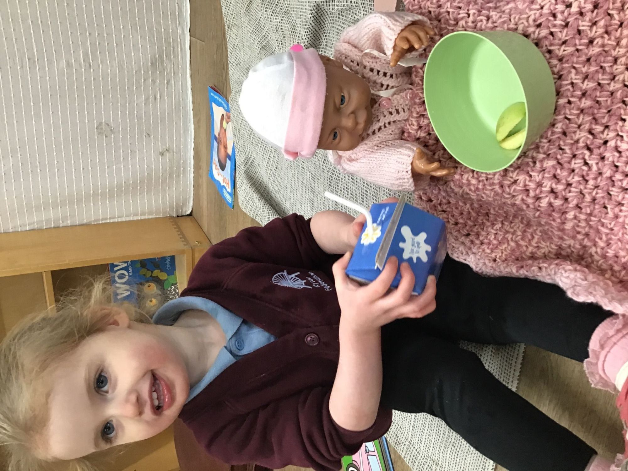 We have talked about how we can look after ourselves this week. We have practised washing and drying our hands before snack, brushing the dinosaurs teeth, bathing the dolls to make them lovely and clean aswell as  having our usual Butterfly fun with our friends!
