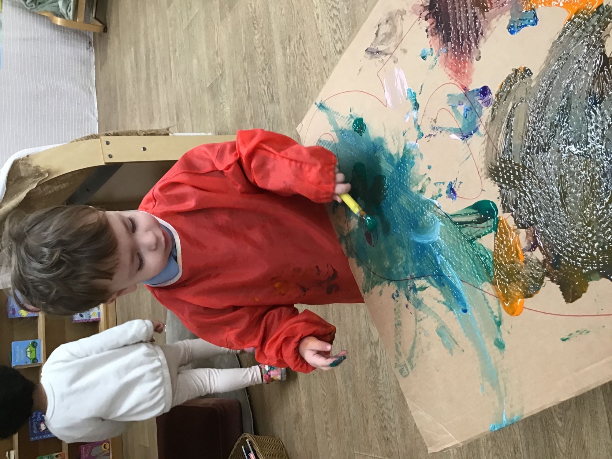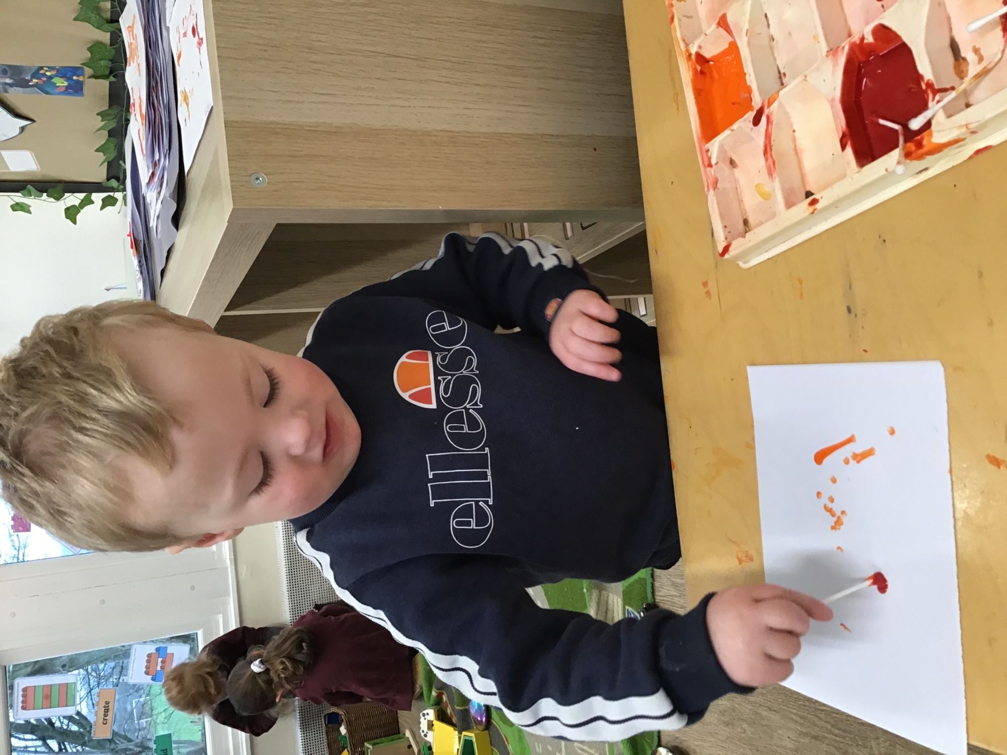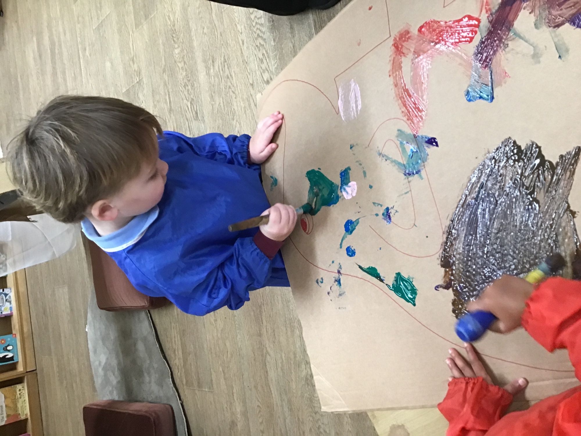 We enjoyed the story 'The dark,dark night' about Ned the Hedgehog looking for a home and he found a place to sleep in a big pile of leaves.We  have  painted, explored and used our imagination this week in Butterfly group.