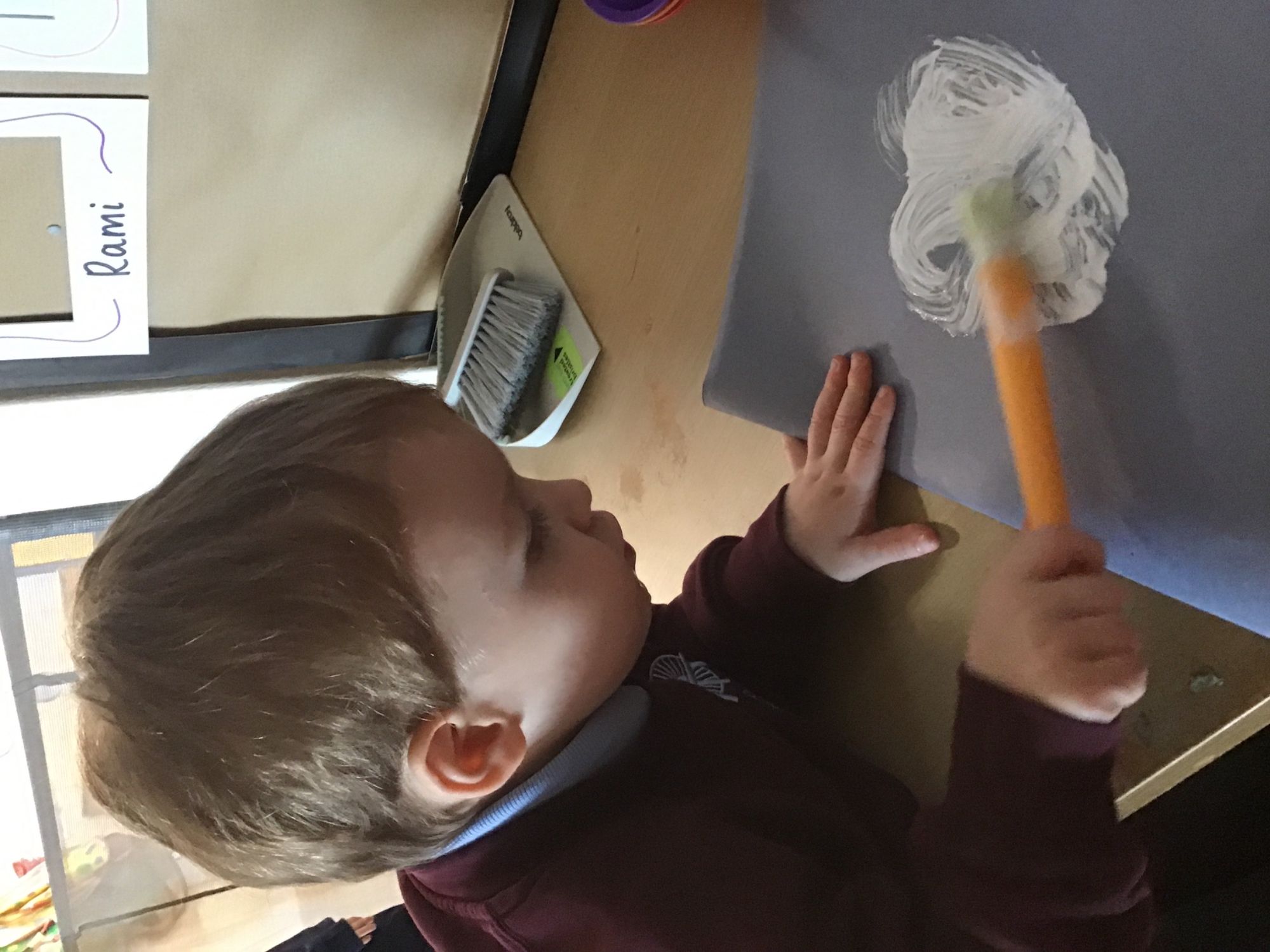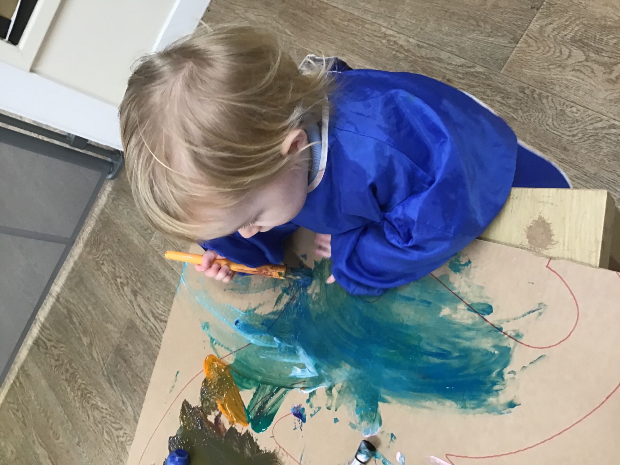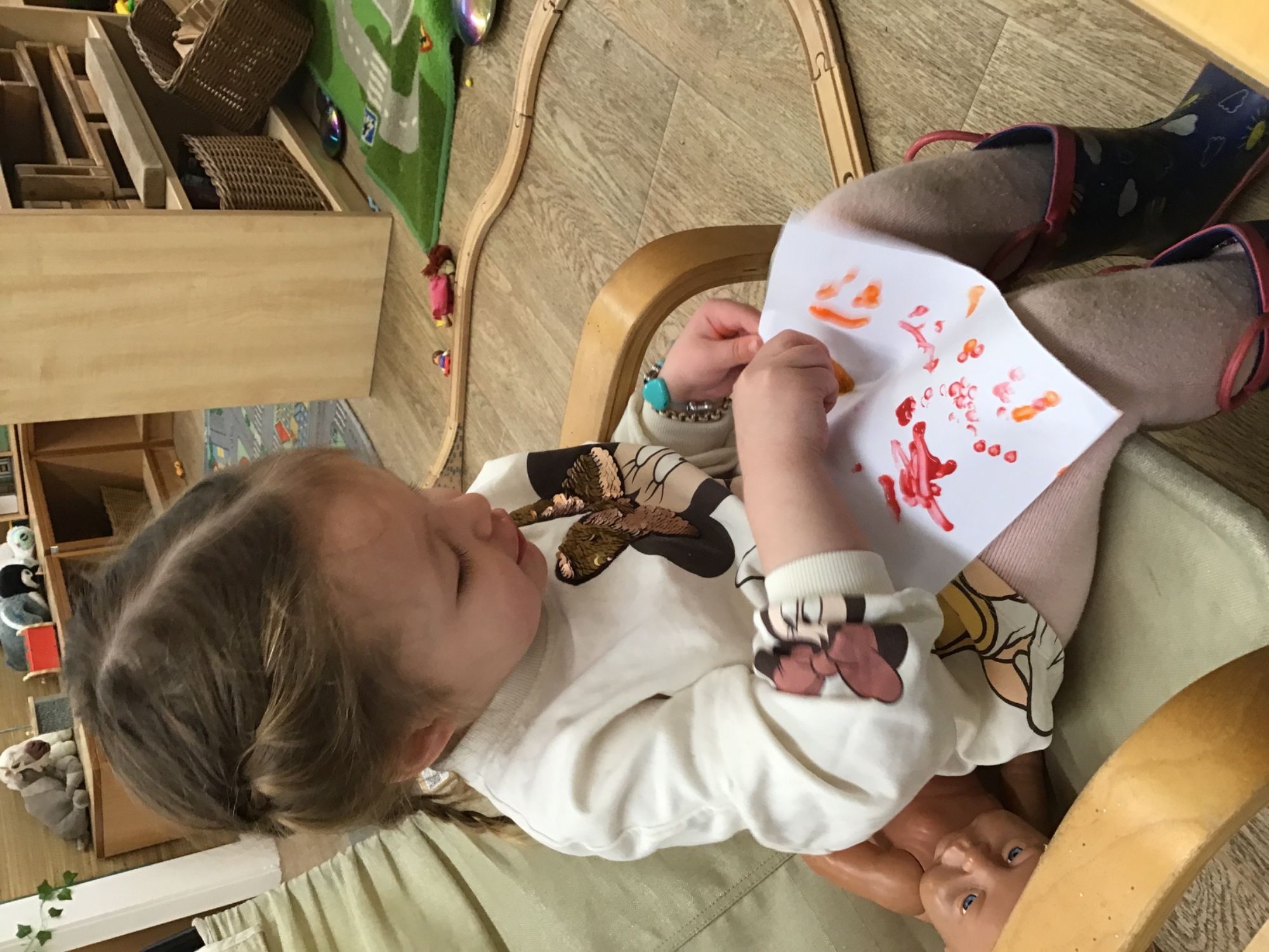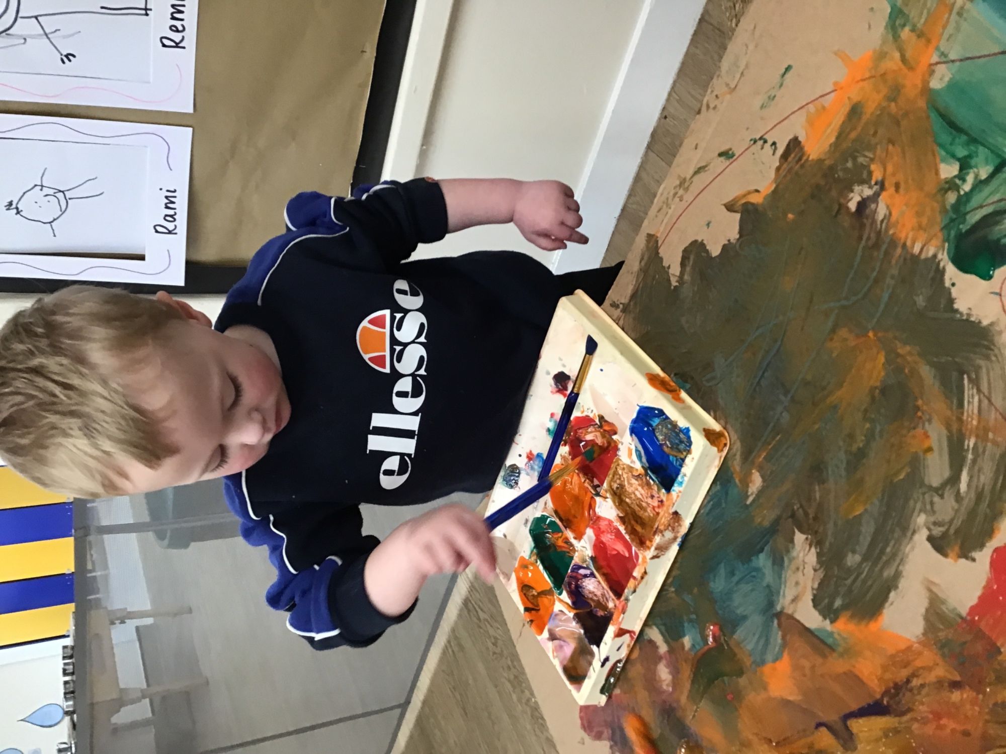We enjoyed the story 'The dark,dark night' about Ned the Hedgehog looking for a home and he found a place to sleep in a big pile of leaves.We  have  painted, explored and used our imagination this week in Butterfly group.