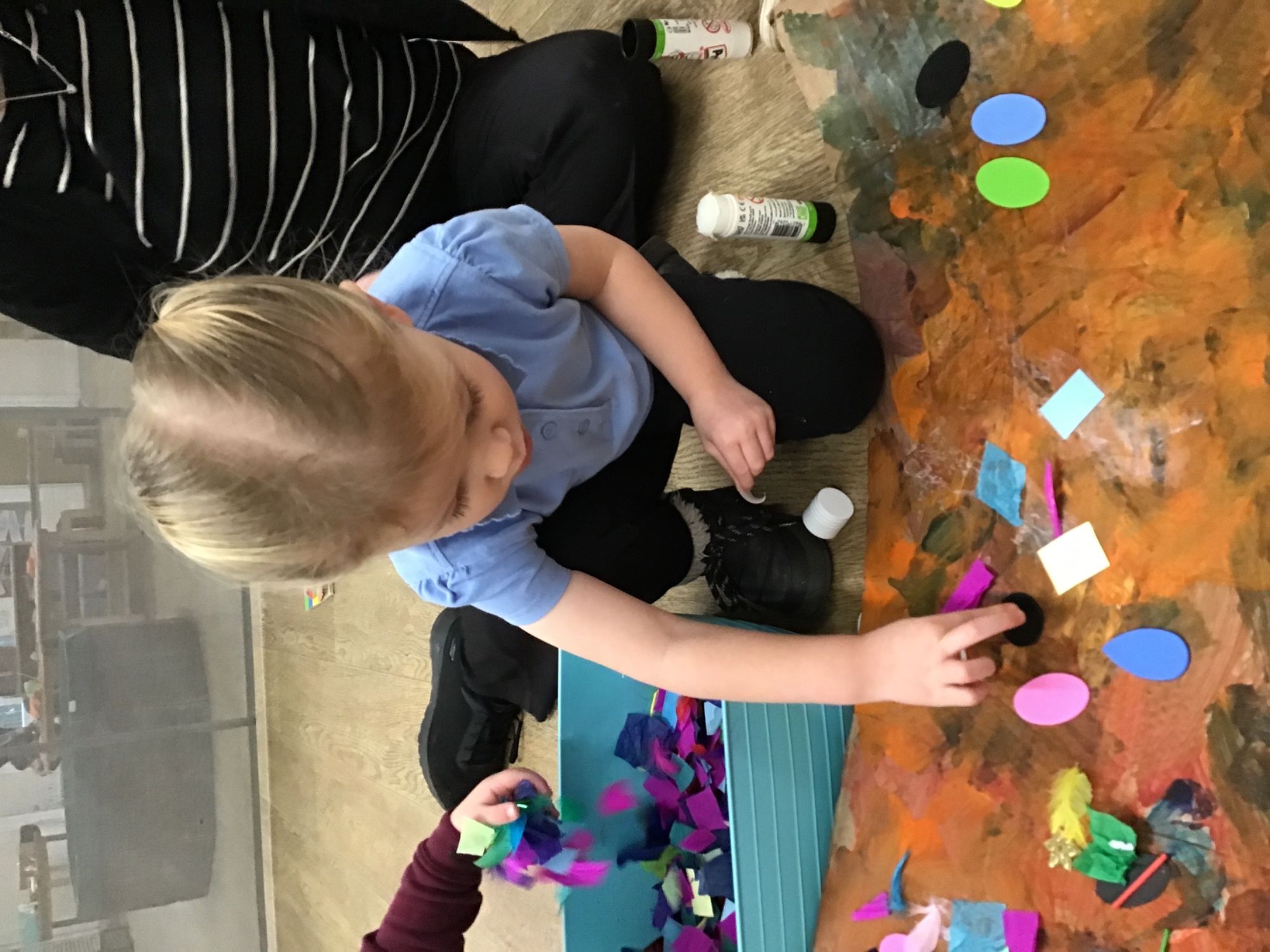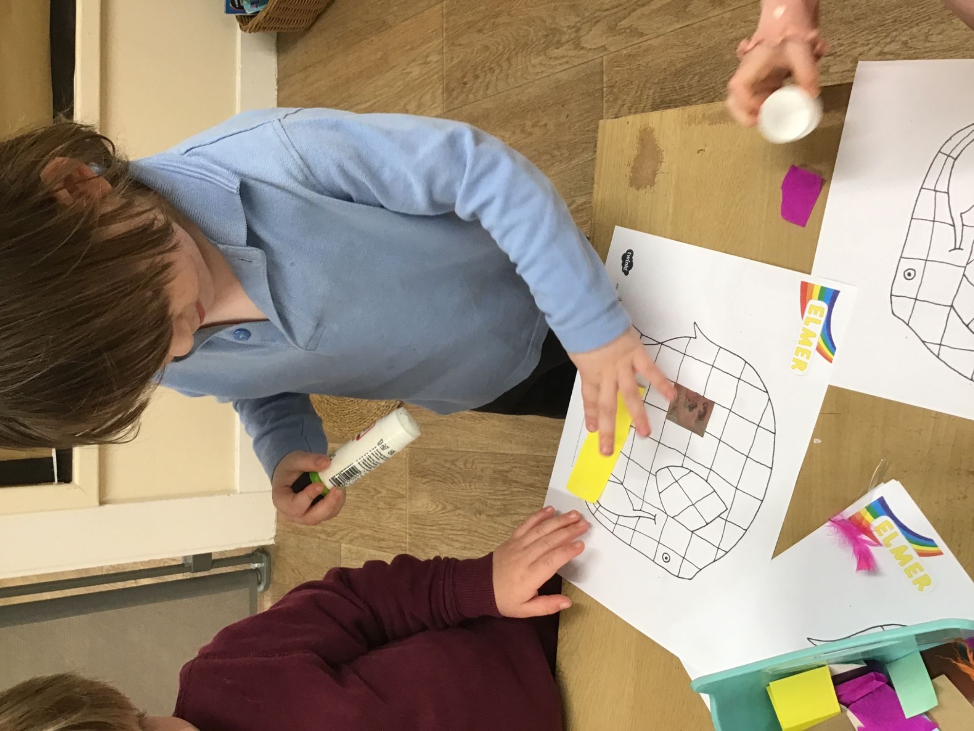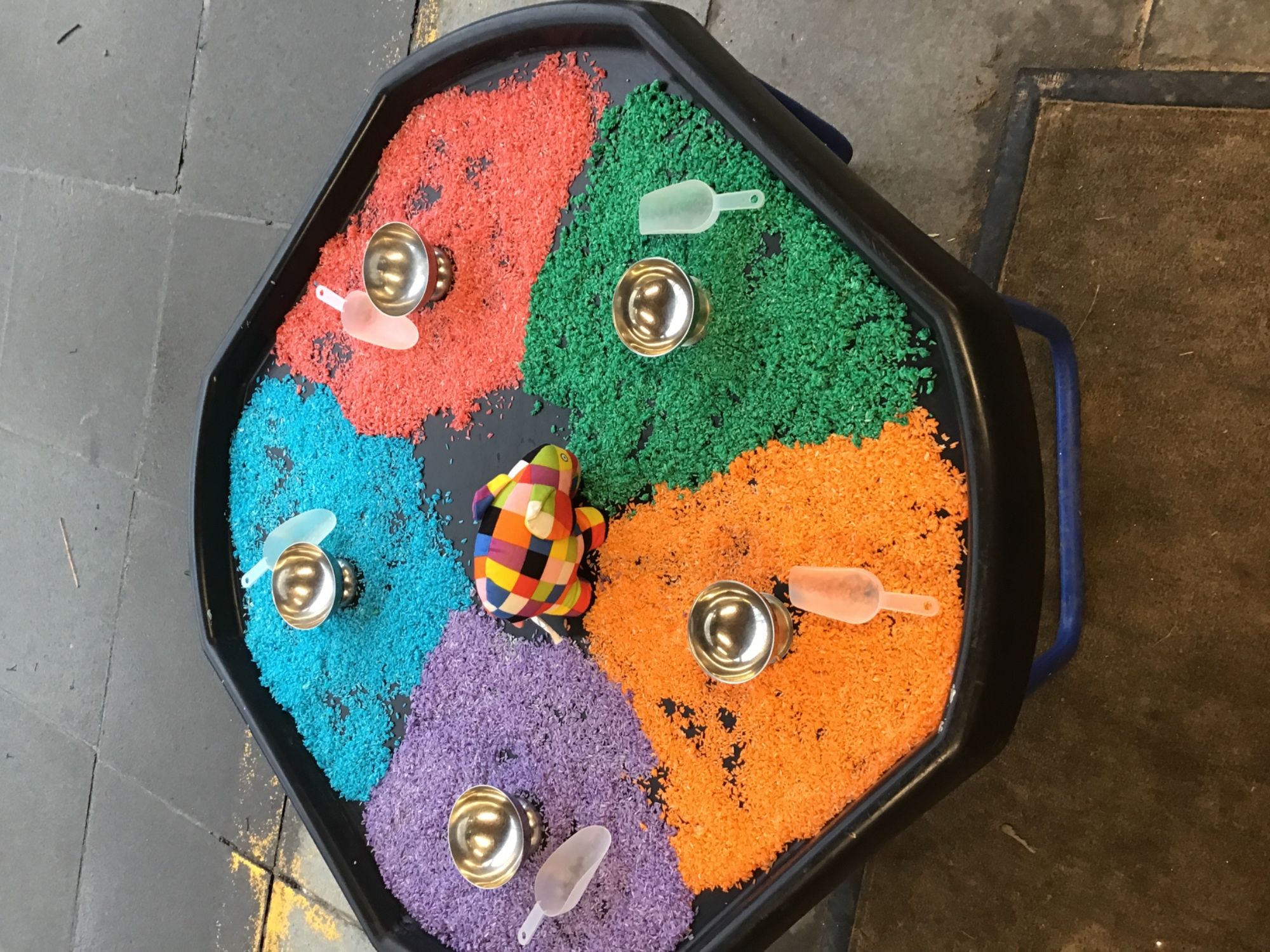 The Bumblebees have been very busy this week learning about Elmer the elephant. We read the book Elmer the elephant. Then they made a large scale elephant collage using different mixed media. We explored lots of different sensory resources with an Elmer/colour theme. We did a lot of colour sorting, exploring, playing and had lots of fun.