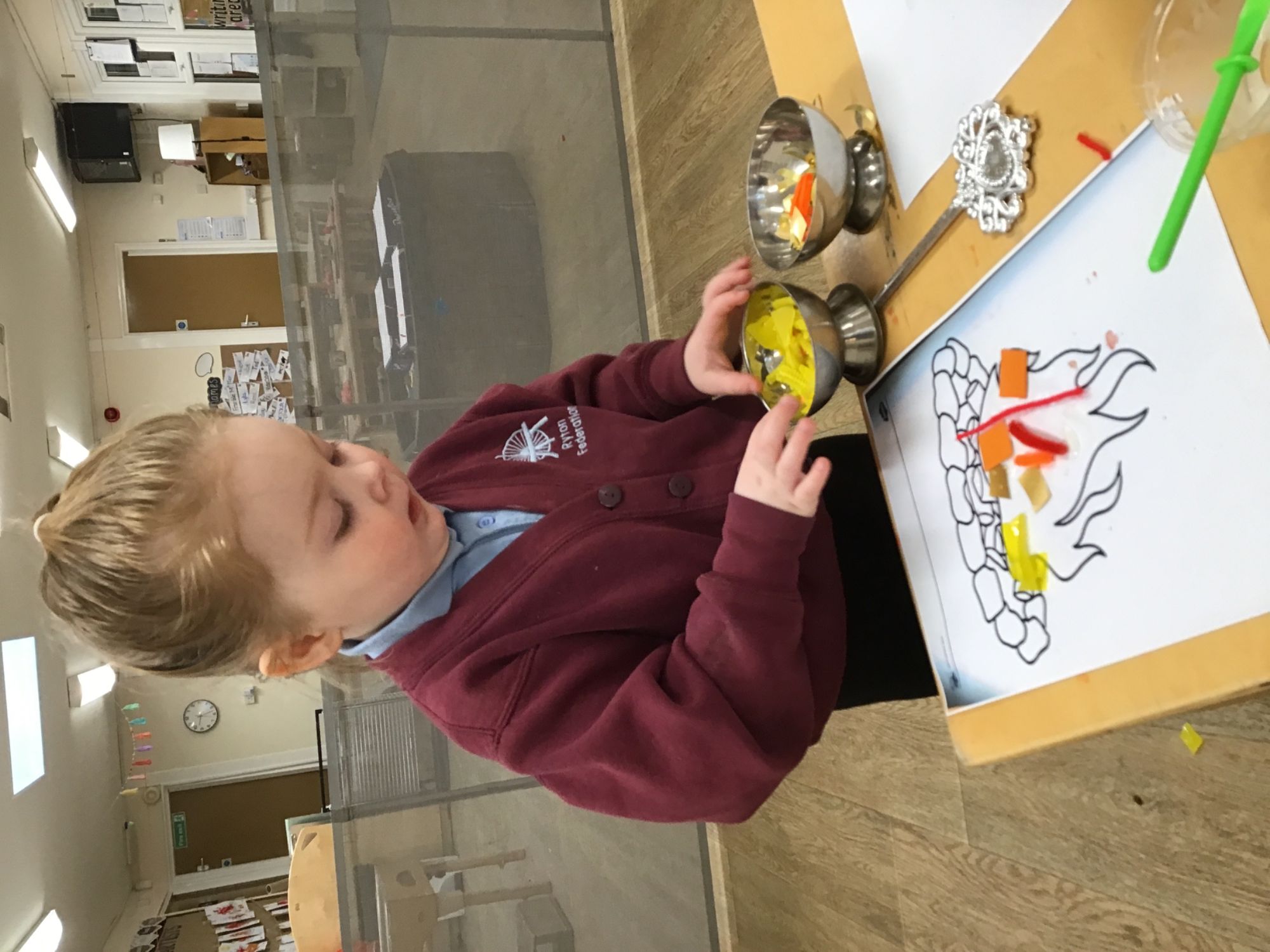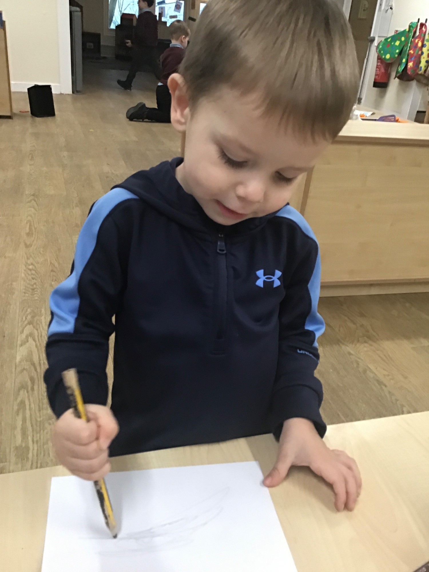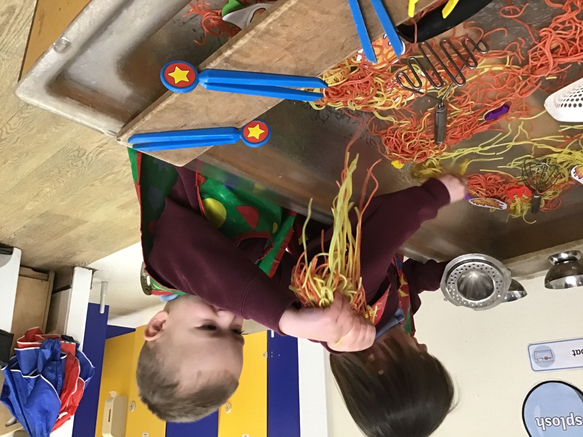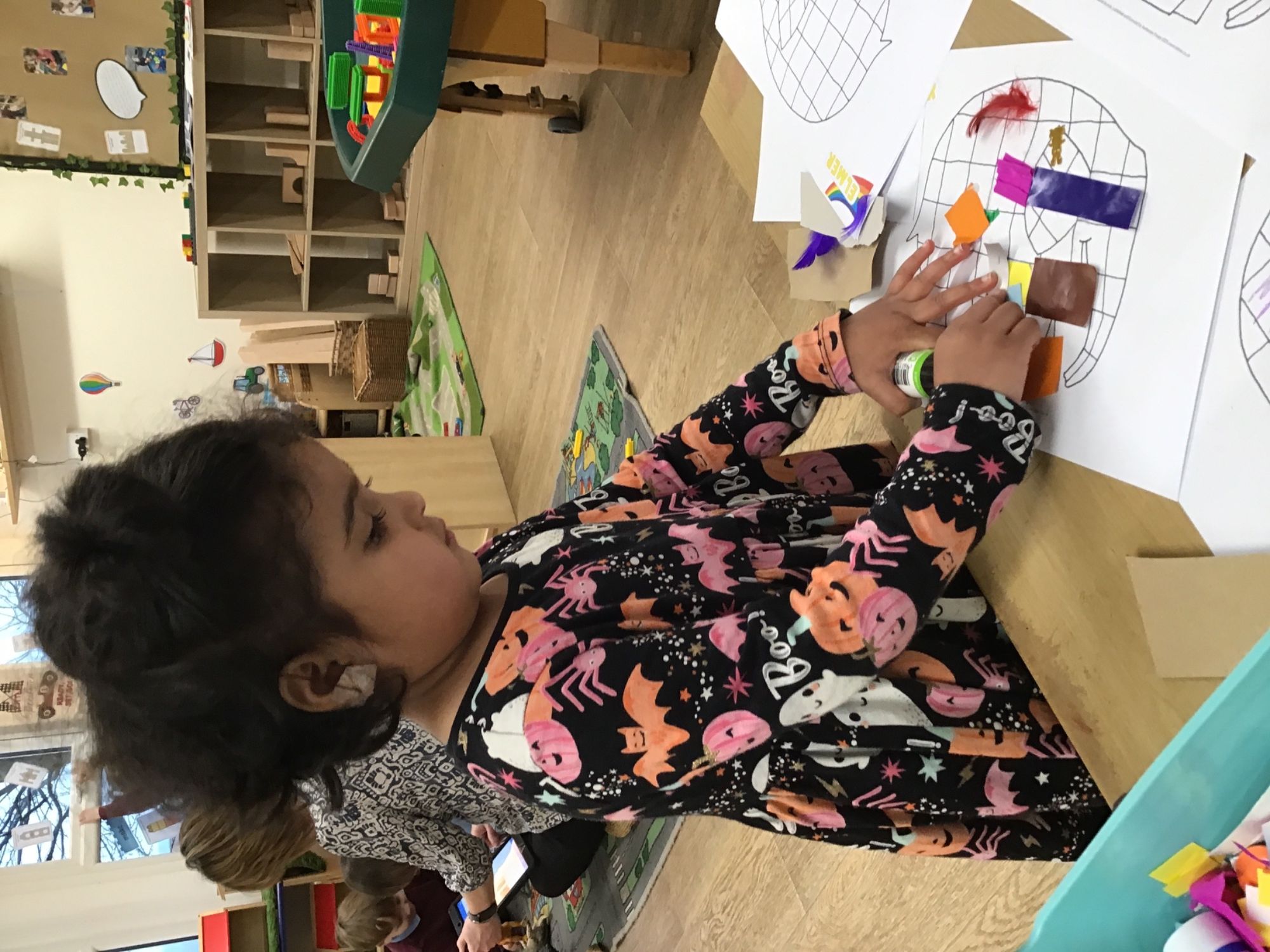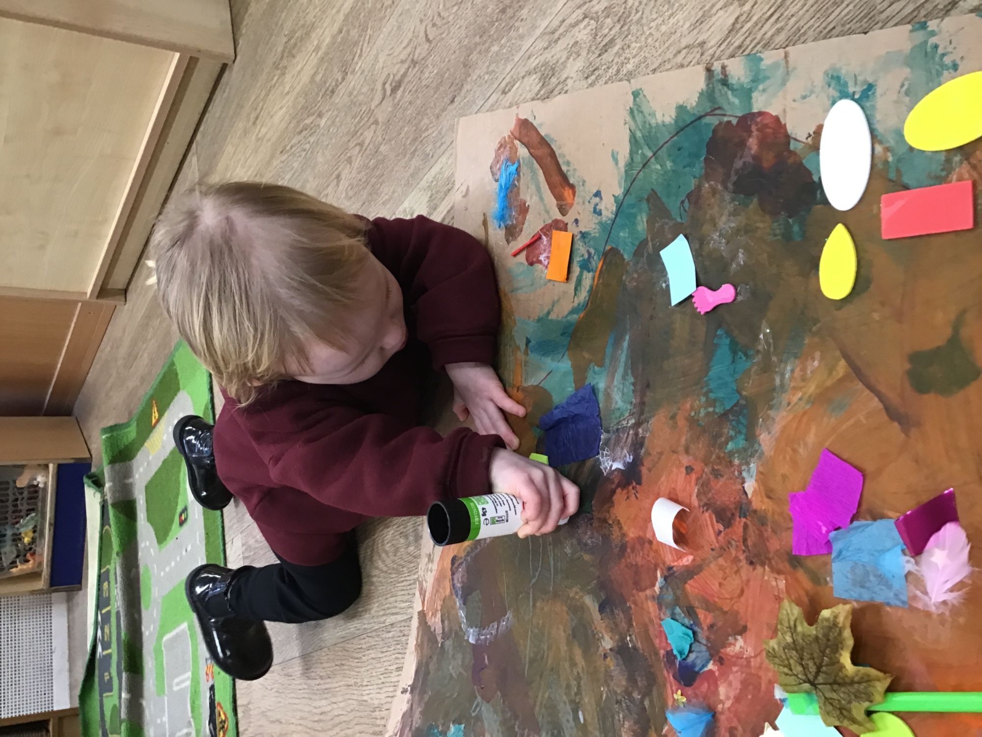We have been developing our fine motor skills by making a nest for  an owl. We used glue to stick strips of paper onto our paper, then practised  using scissors to cut out an owl! We shared lots of stories about Owls, their habitat and what they like to eat. We even  made chocolate nests on Friday.