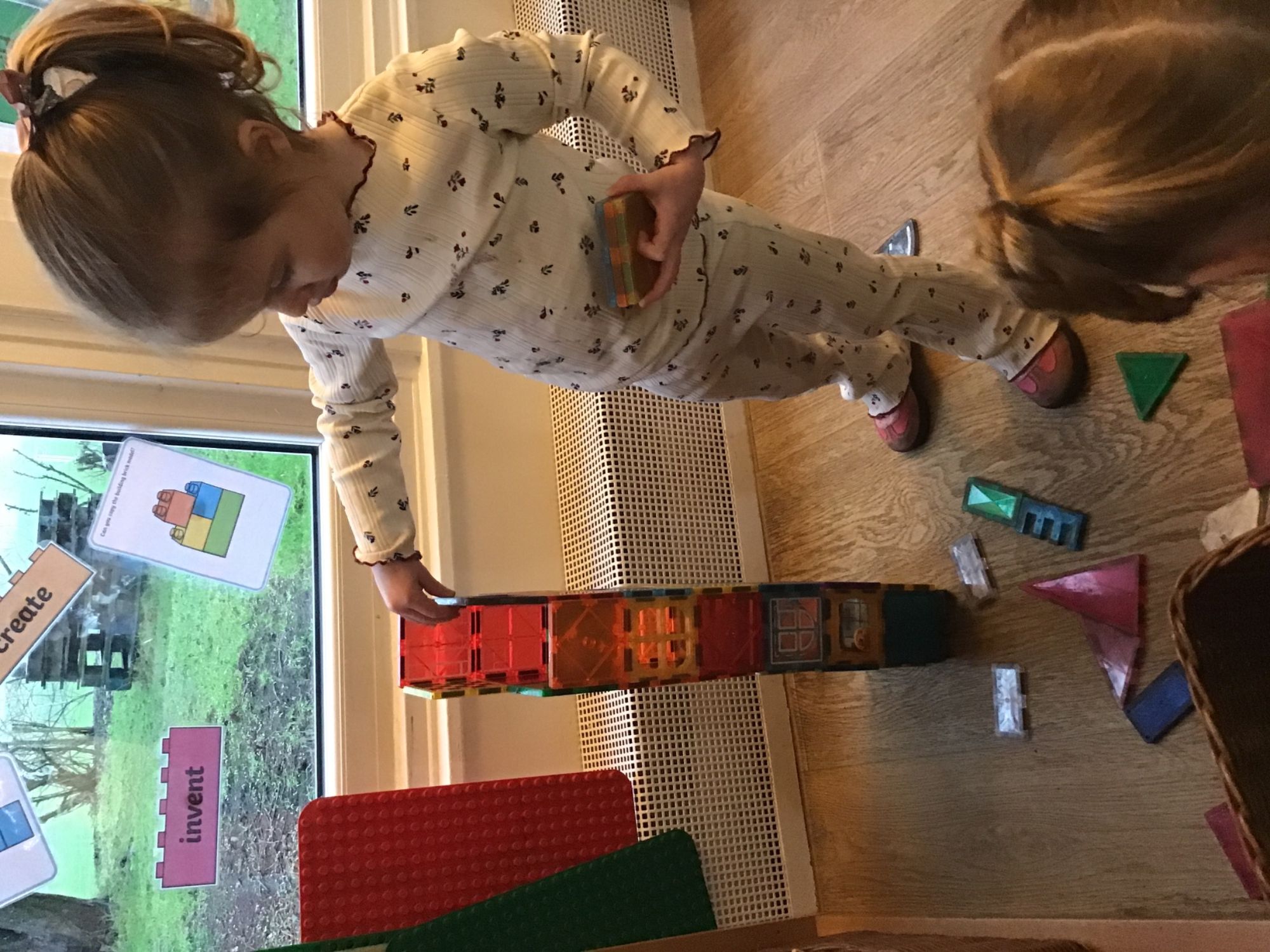 This week we have enjoyed playing in our Home Corner feeding the Teddies, making playdough faces and building with blocks and magnetic tiles. We have continues to name colours and talk about 'Ourselves', naming our facial features and singing 'Head ,Shoulders, Knees and toes' at snack time.