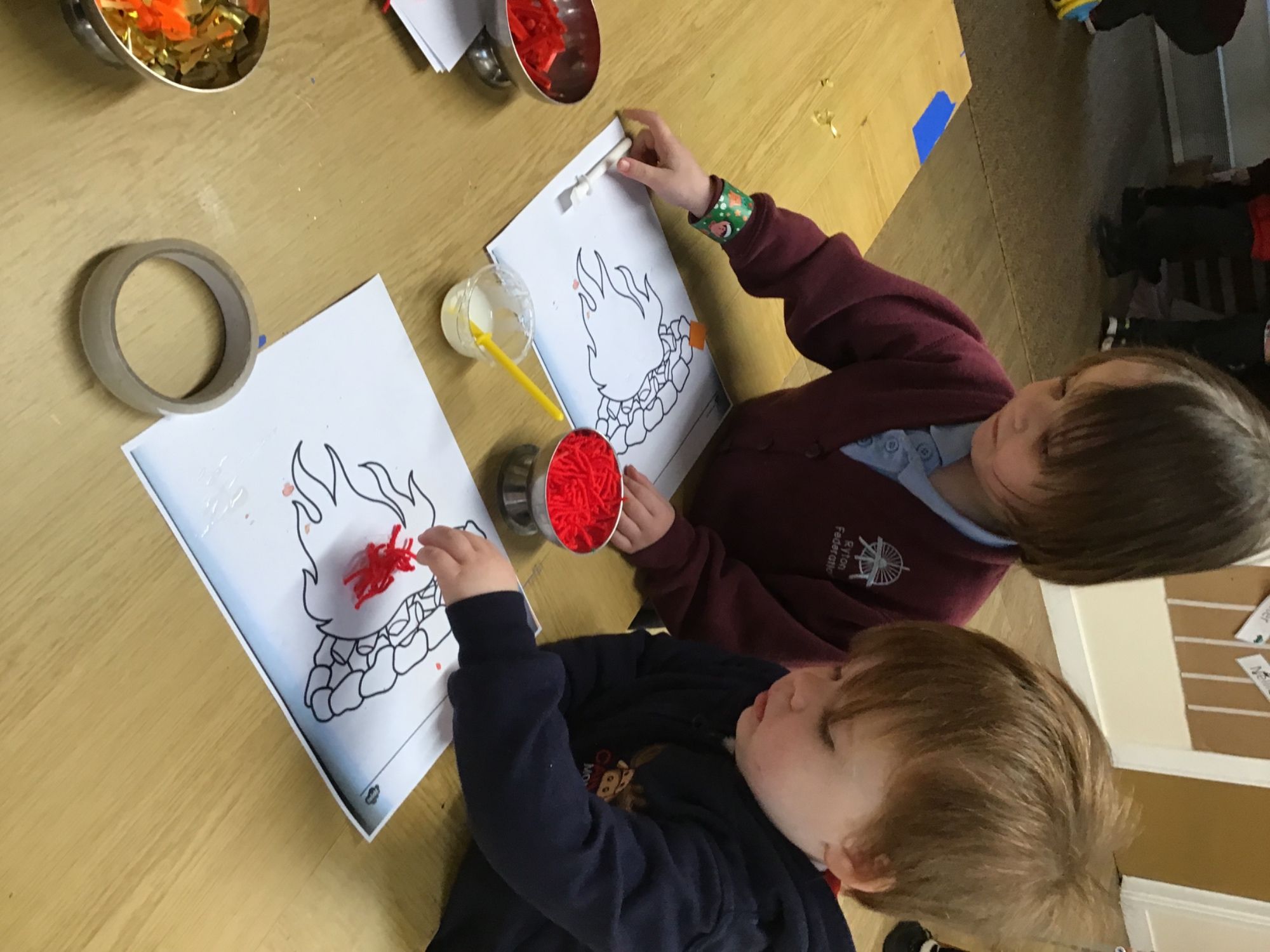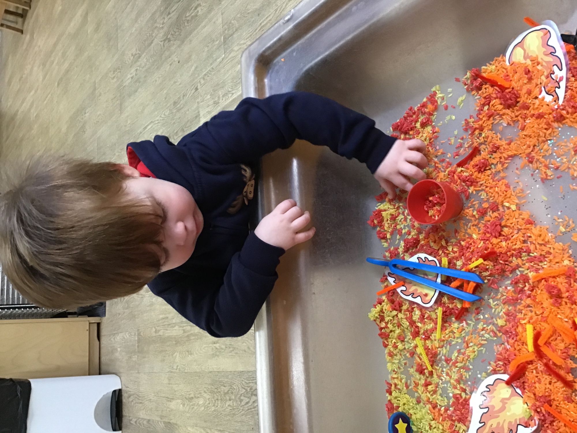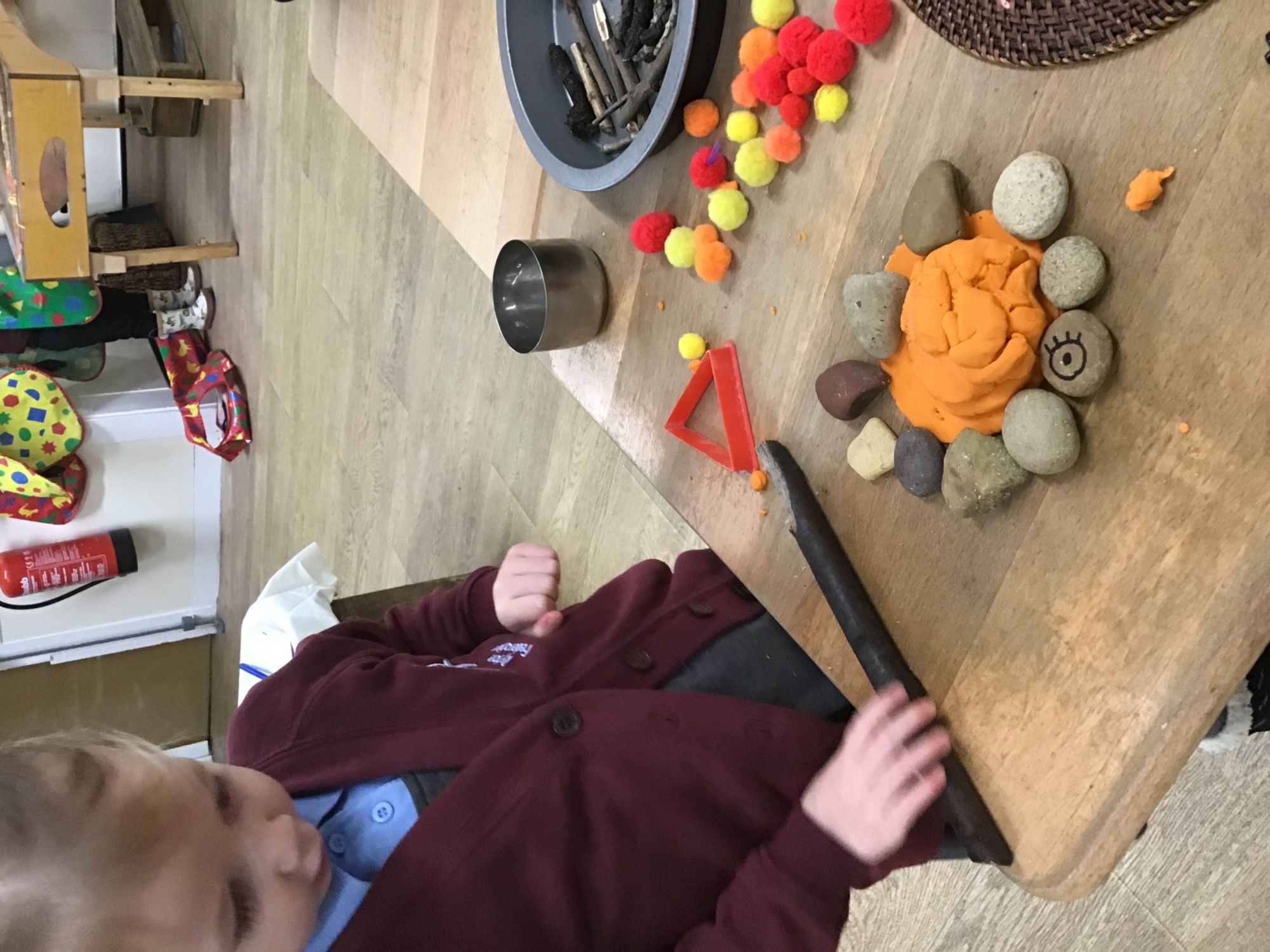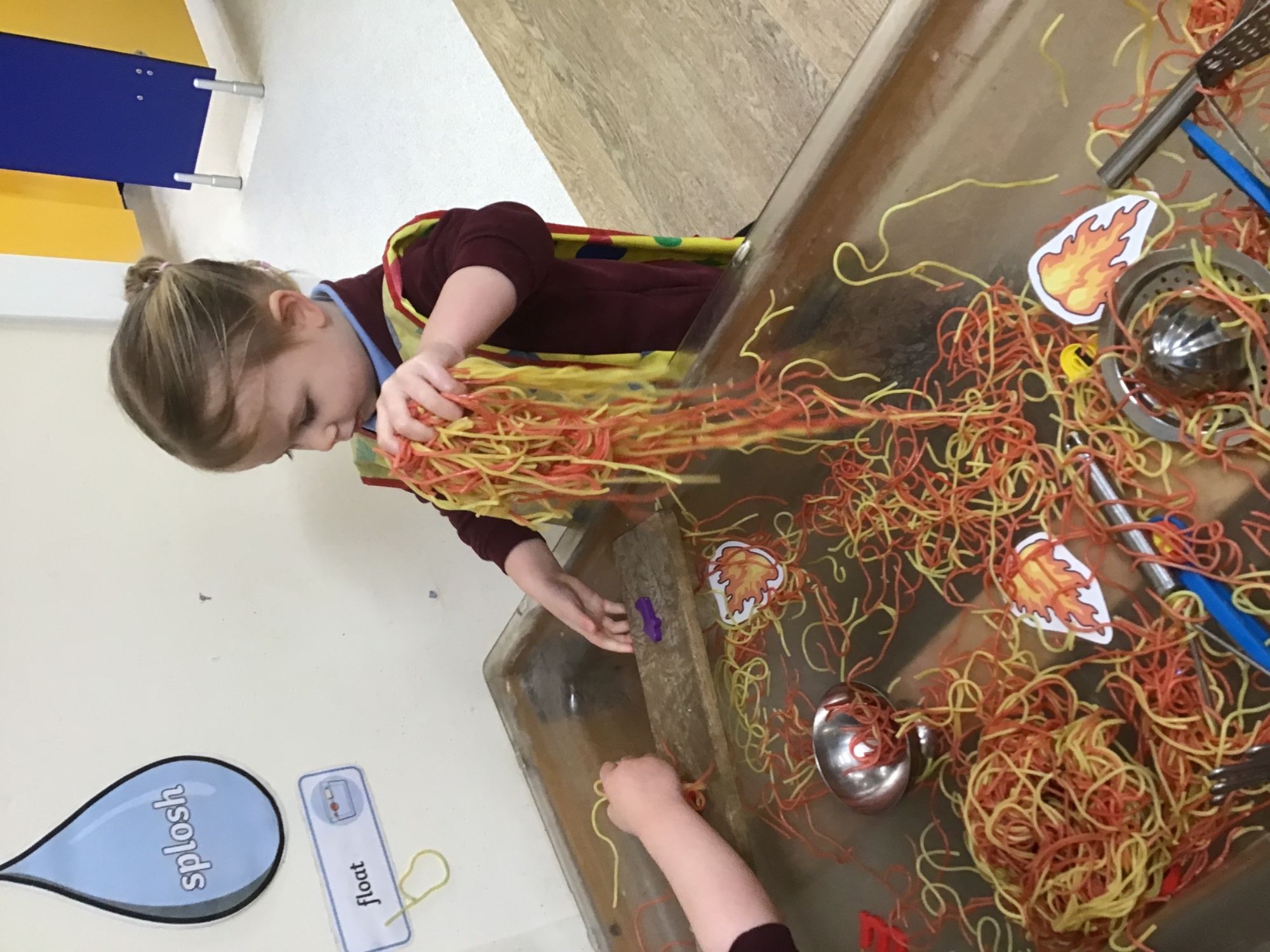 This week Bumblebees have been learning about fire! We have used lots of orange, red and yellow to make fire pictures with paint, playdough fires, birthday cakes with candles, spraying water on the fire painted on the tuff spot and chalked on the ground. Using the magnets with rice and fire coloured pipe cleaners. We have also had lots of role play with the Dr surgery which is set up in the home corner. Another very busy week!