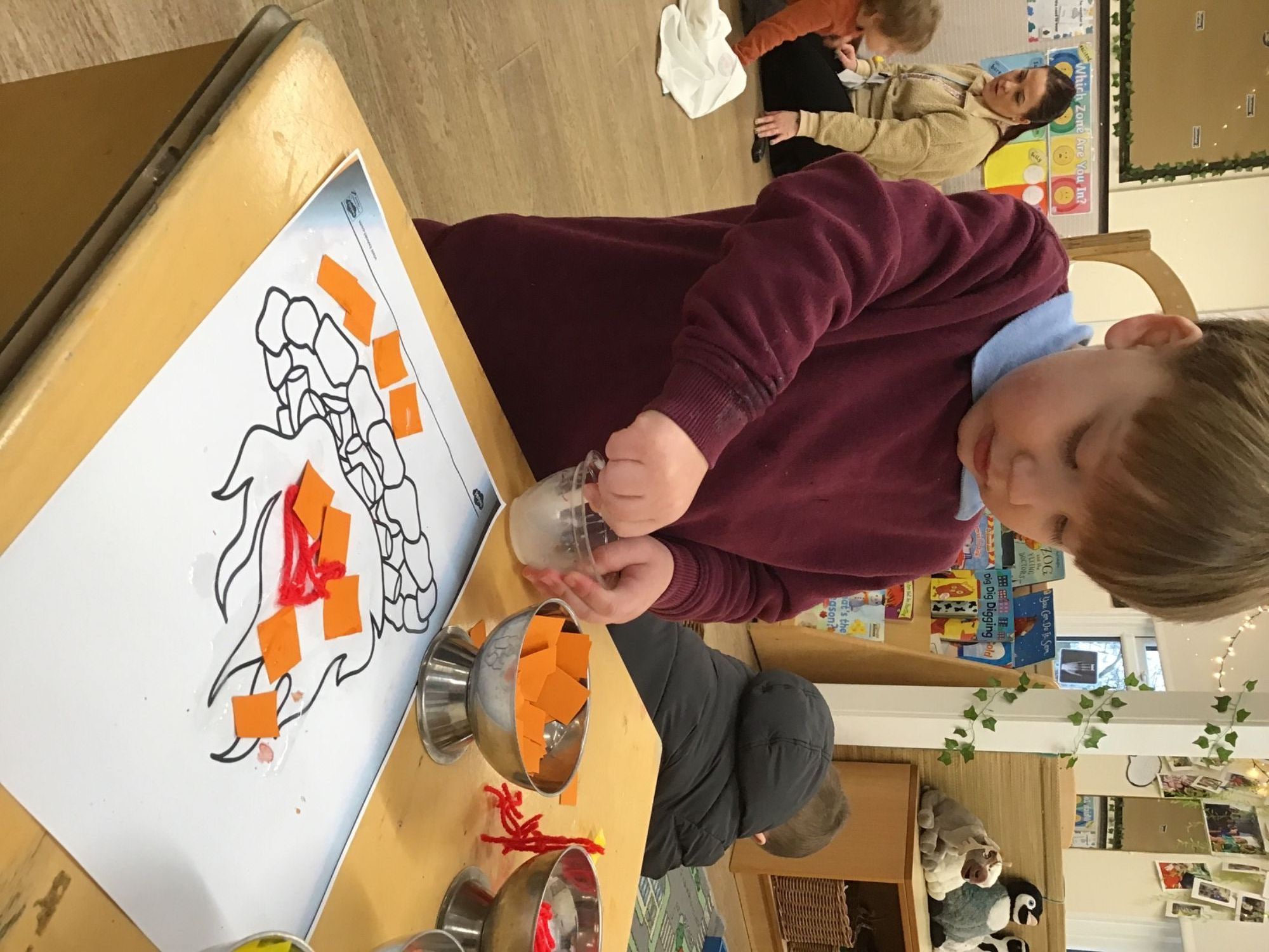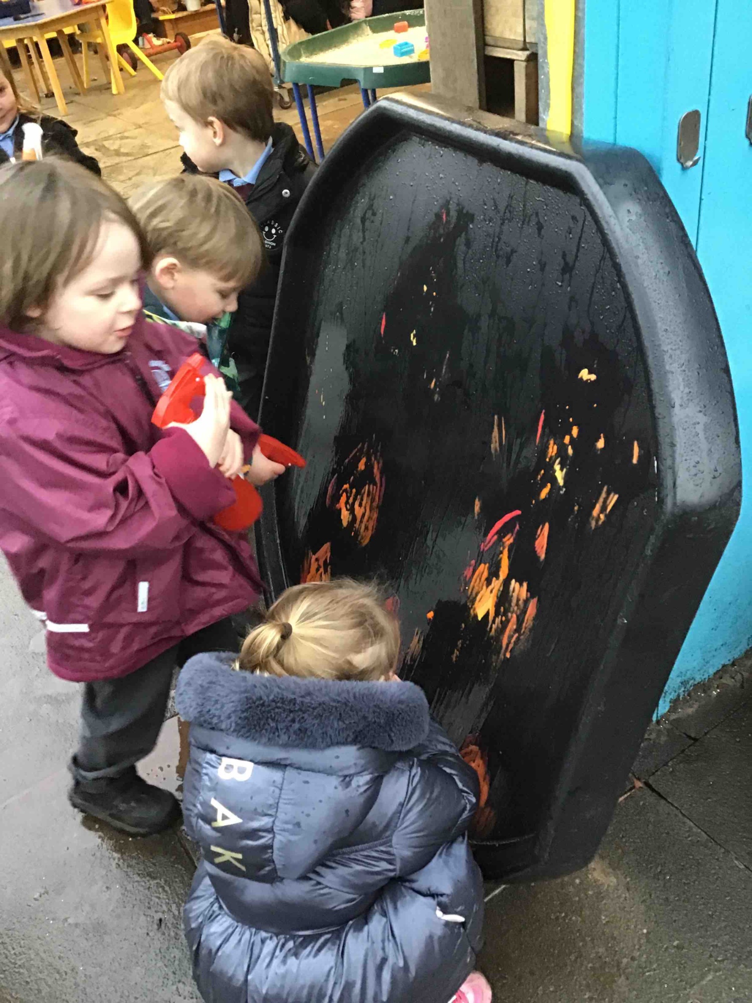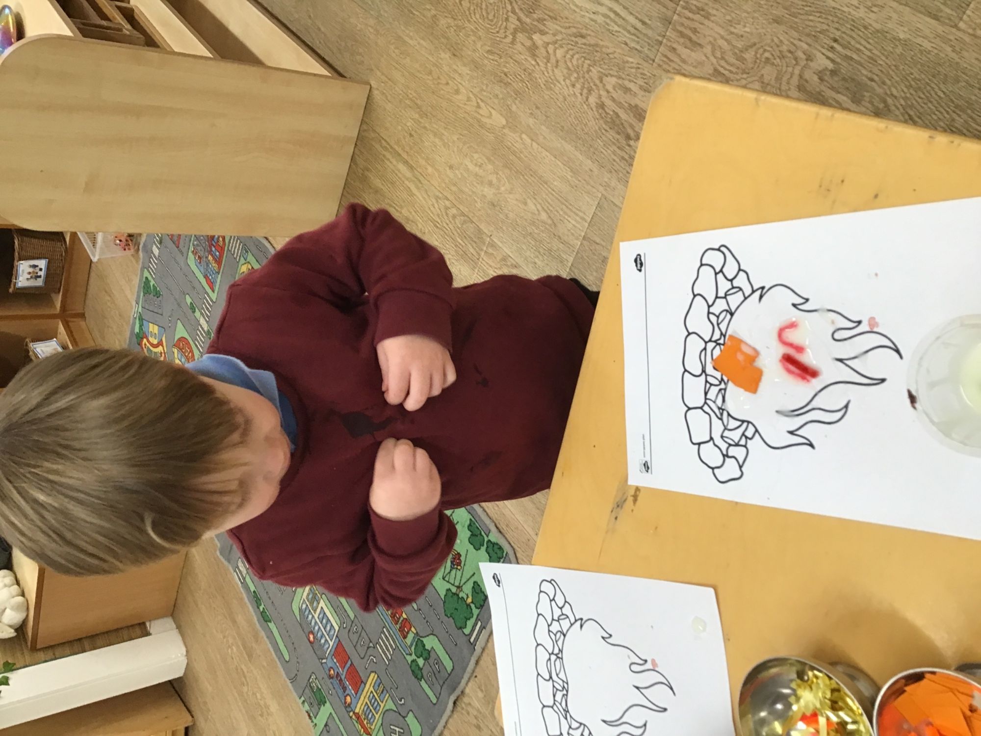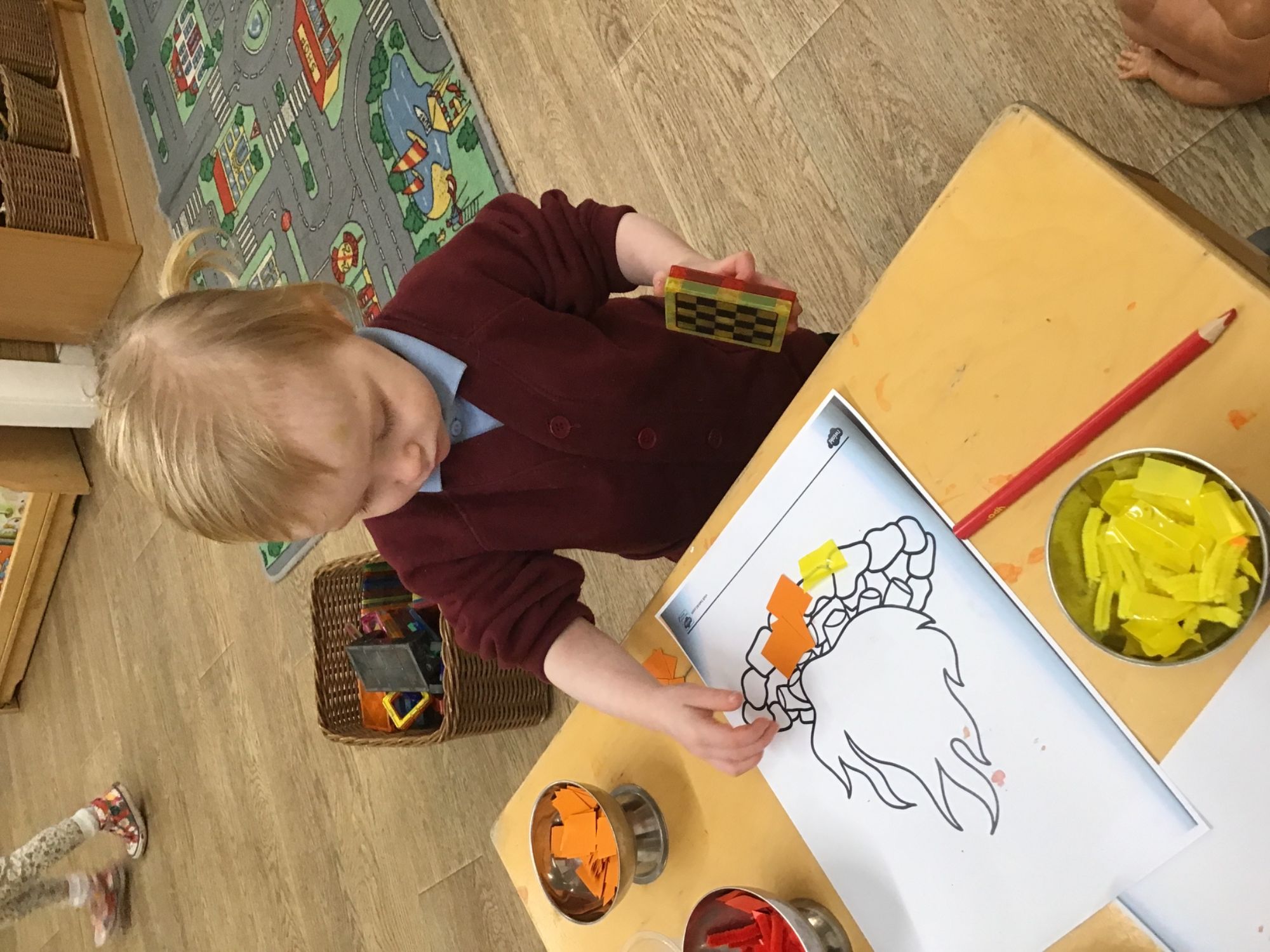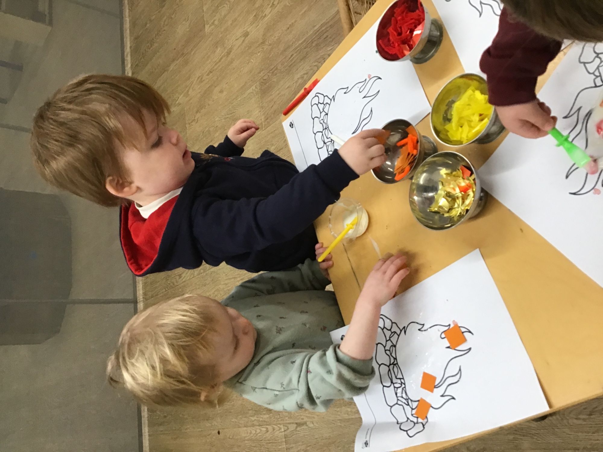 This week Bumblebees have been learning about fire! We have used lots of orange, red and yellow to make fire pictures with paint, playdough fires, birthday cakes with candles, spraying water on the fire painted on the tuff spot and chalked on the ground. Using the magnets with rice and fire coloured pipe cleaners. We have also had lots of role play with the Dr surgery which is set up in the home corner. Another very busy week!