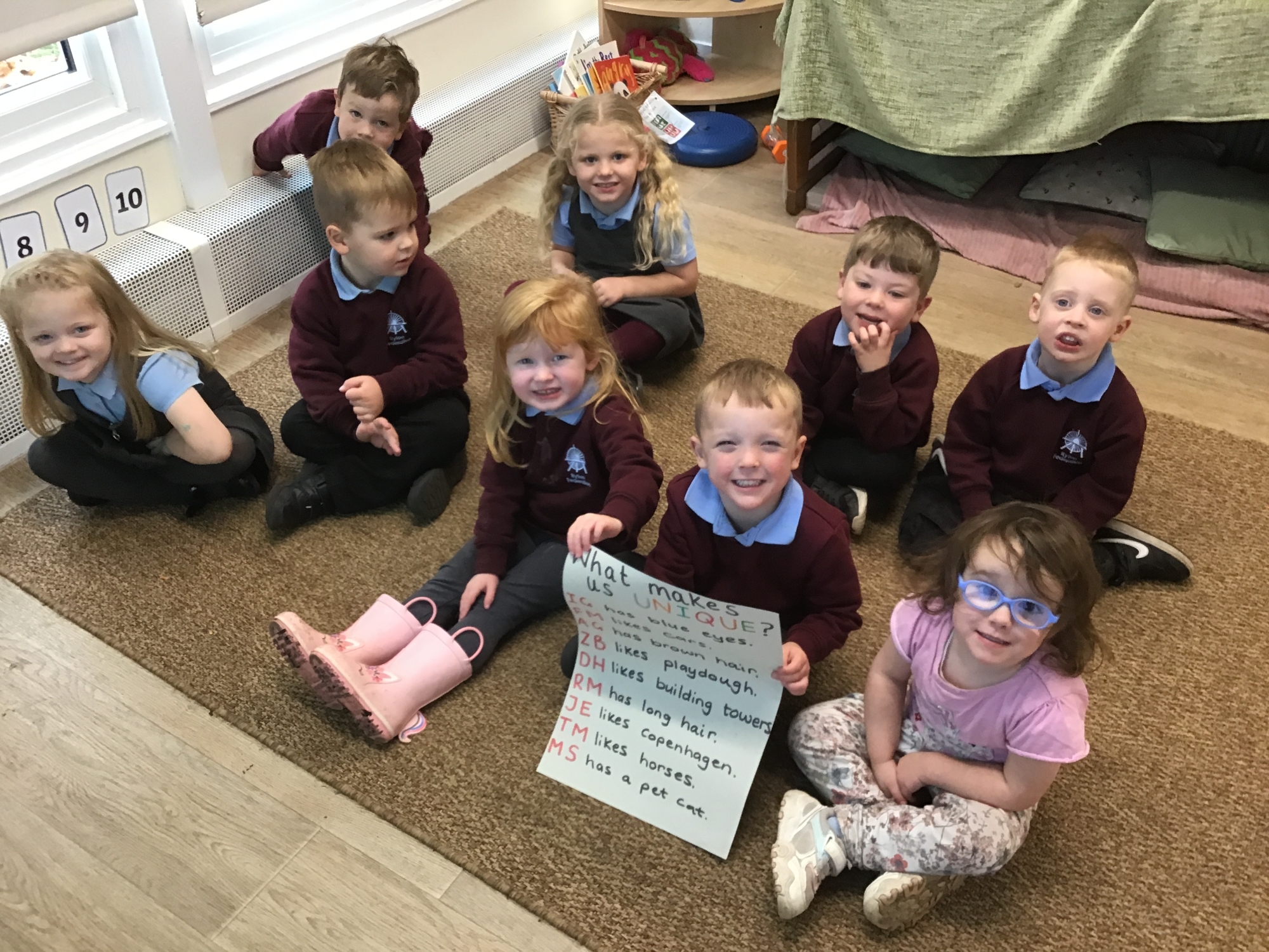 All things blue! We read a story called 'together we can', made a hand print wreath and spoke about what makes us 'unique' to celebrate Autism Awareness.