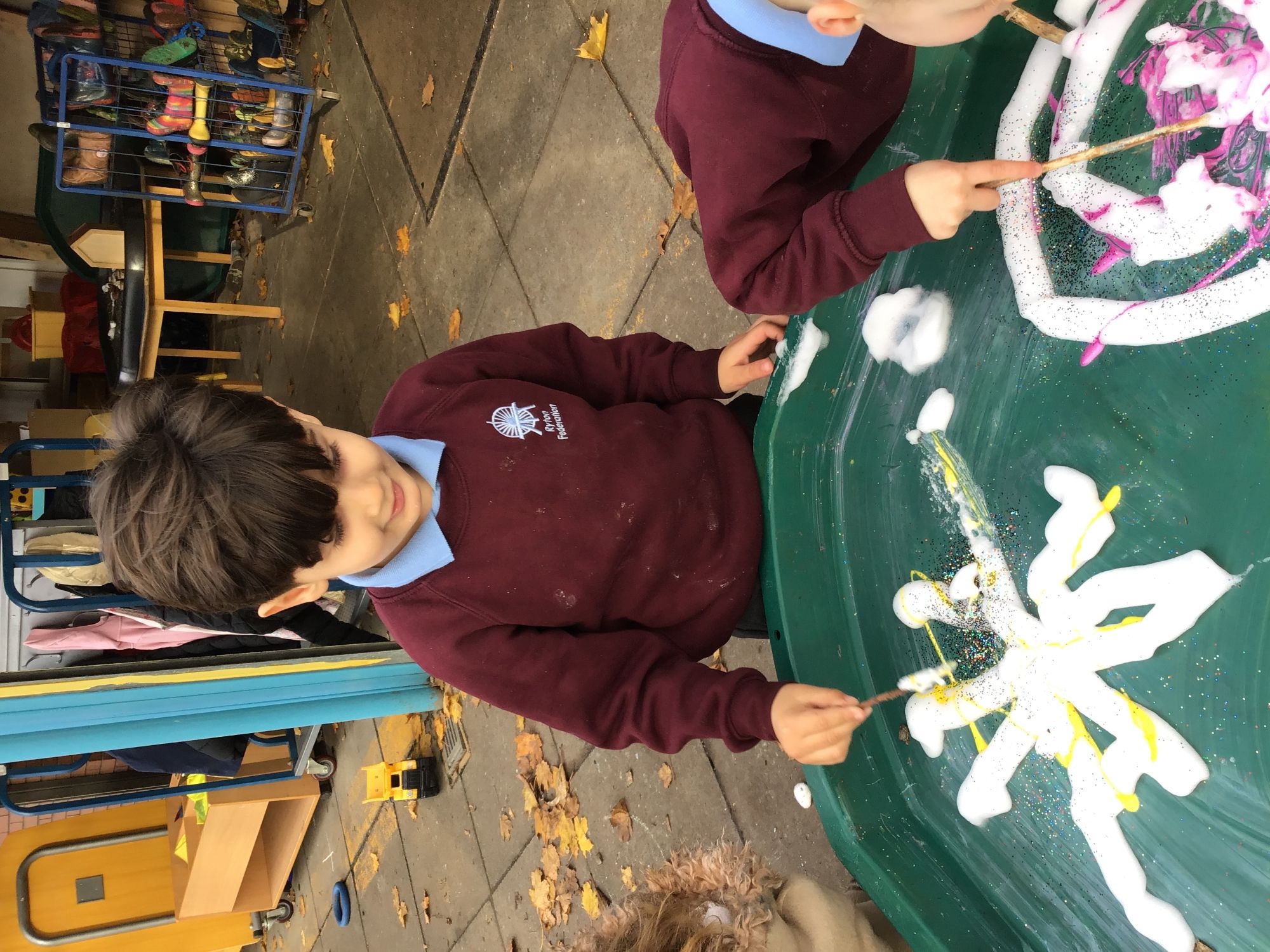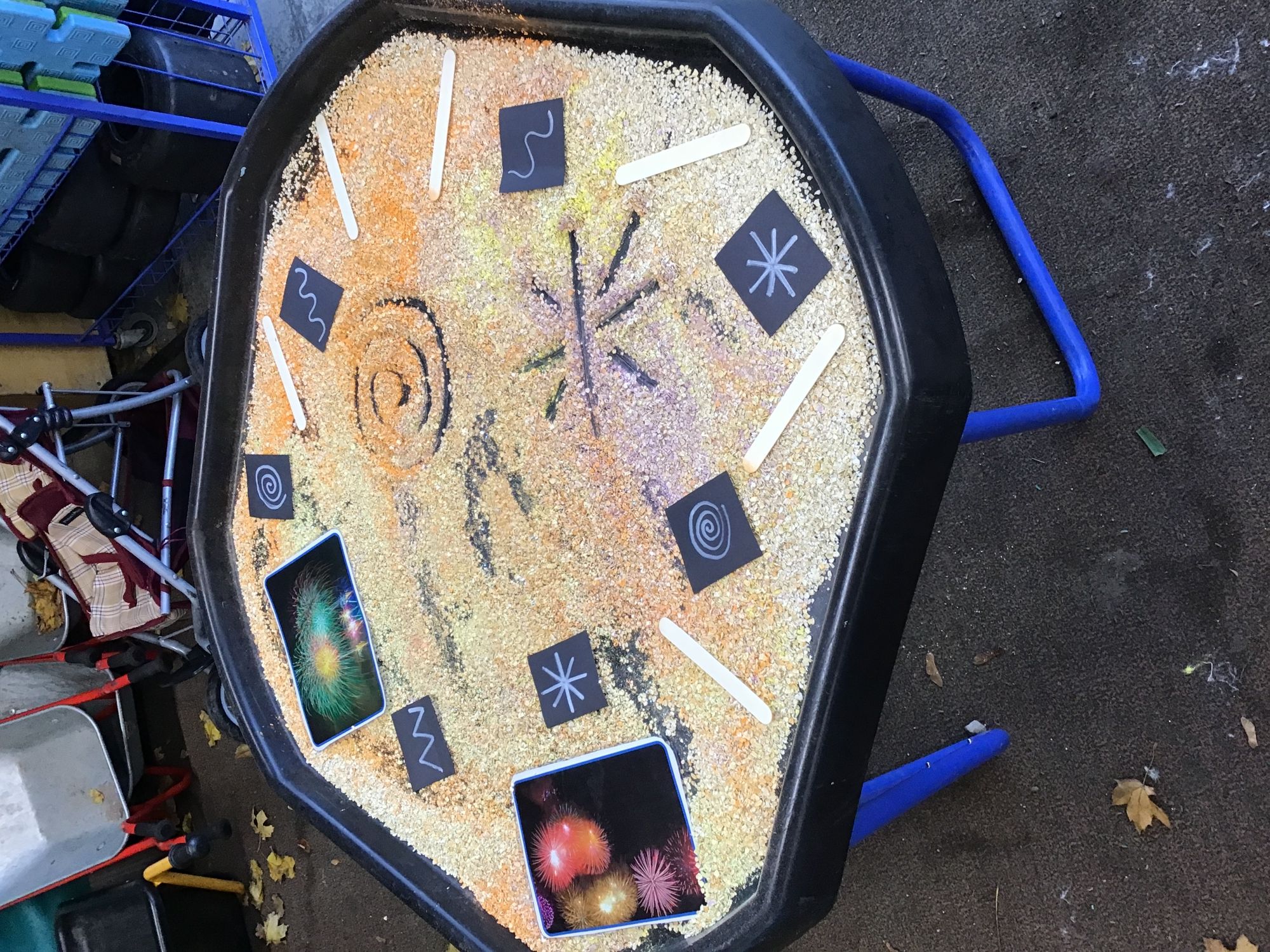 This week we have celebrated Bonfire Night - we spoke to the children about how to keep safe on Bonfire Night and spoke about the lovely fireworks we see lighting up our sky. We created firework painting pictures, made firework patterns with fine motor sticks and explored tuff trays.